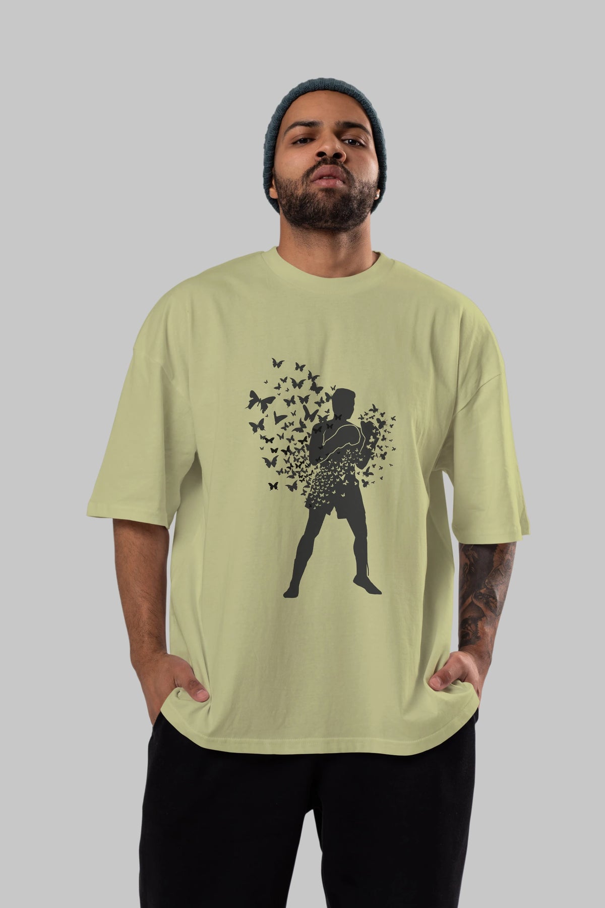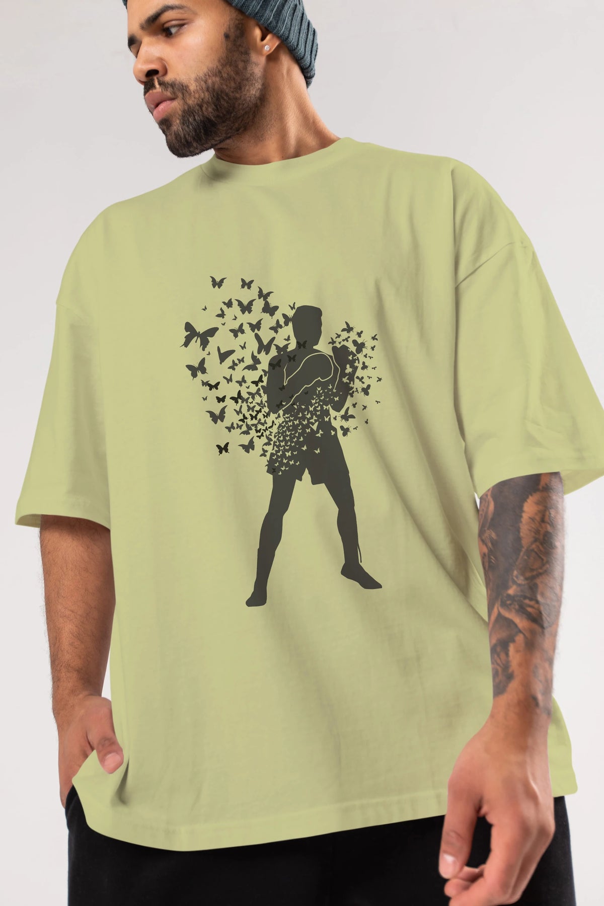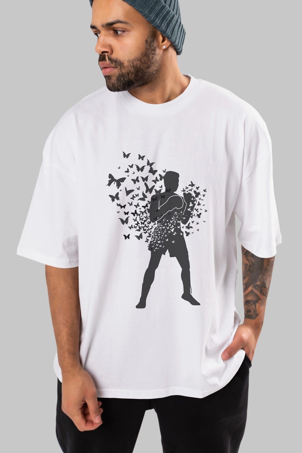 Float Like Butterfly Sting Like Bee Ön Baskılı Oversize t-shirt %100 pamuk Erkek Kadın Unisex