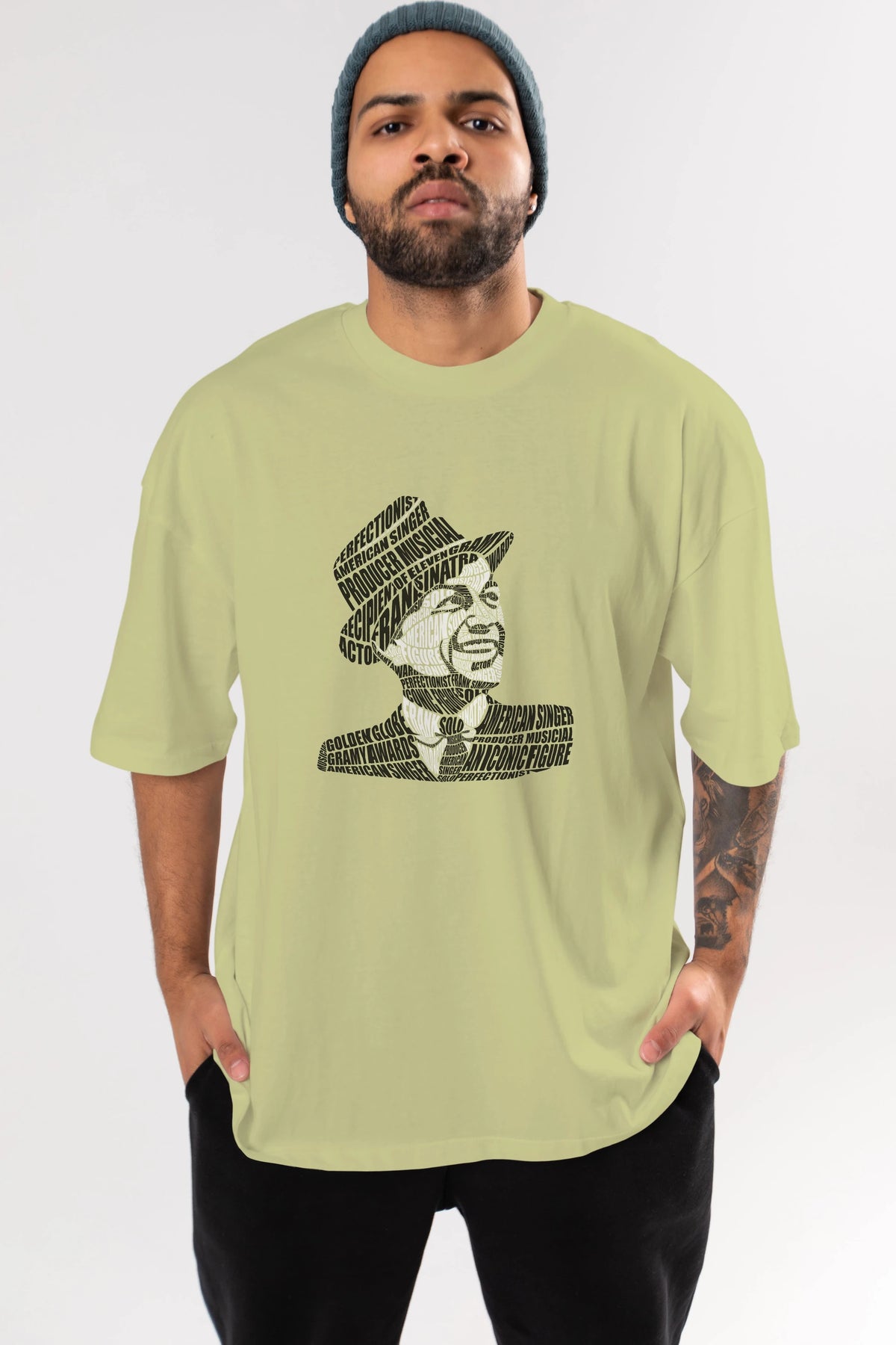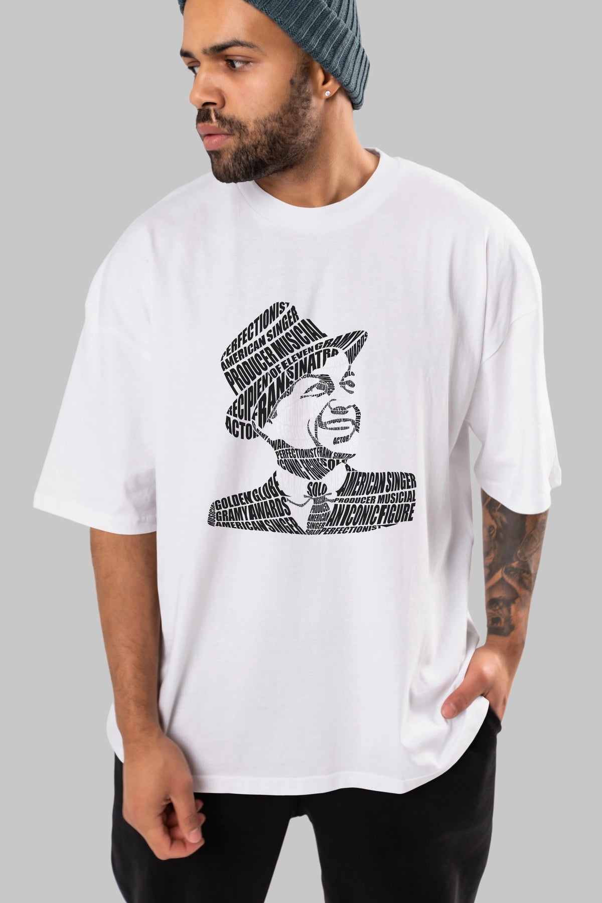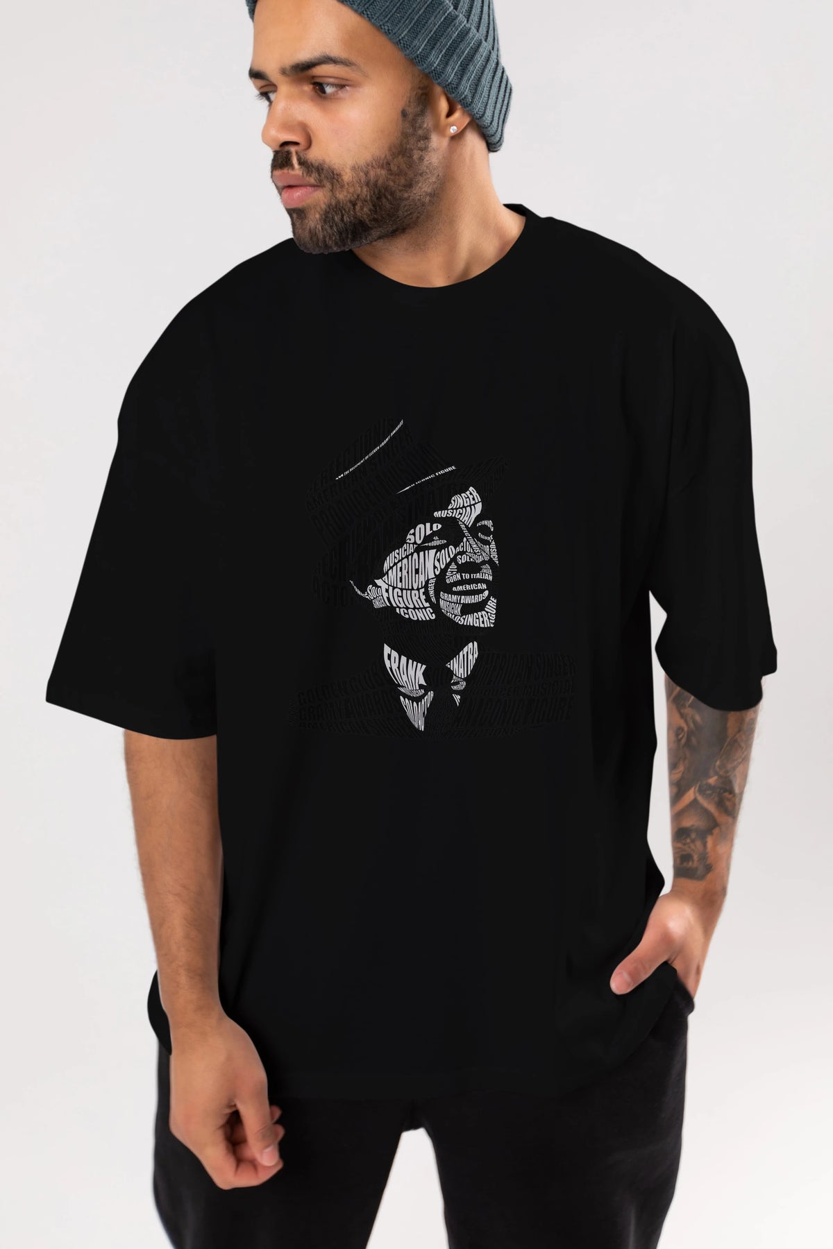 Frank Sinatra Calligram Ön Baskılı Oversize t-shirt %100 pamuk Erkek Kadın Unisex