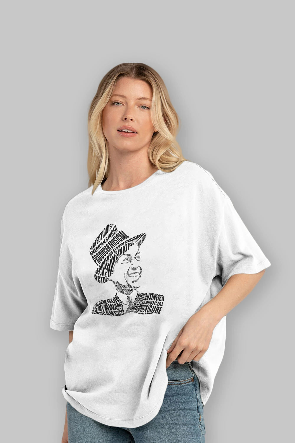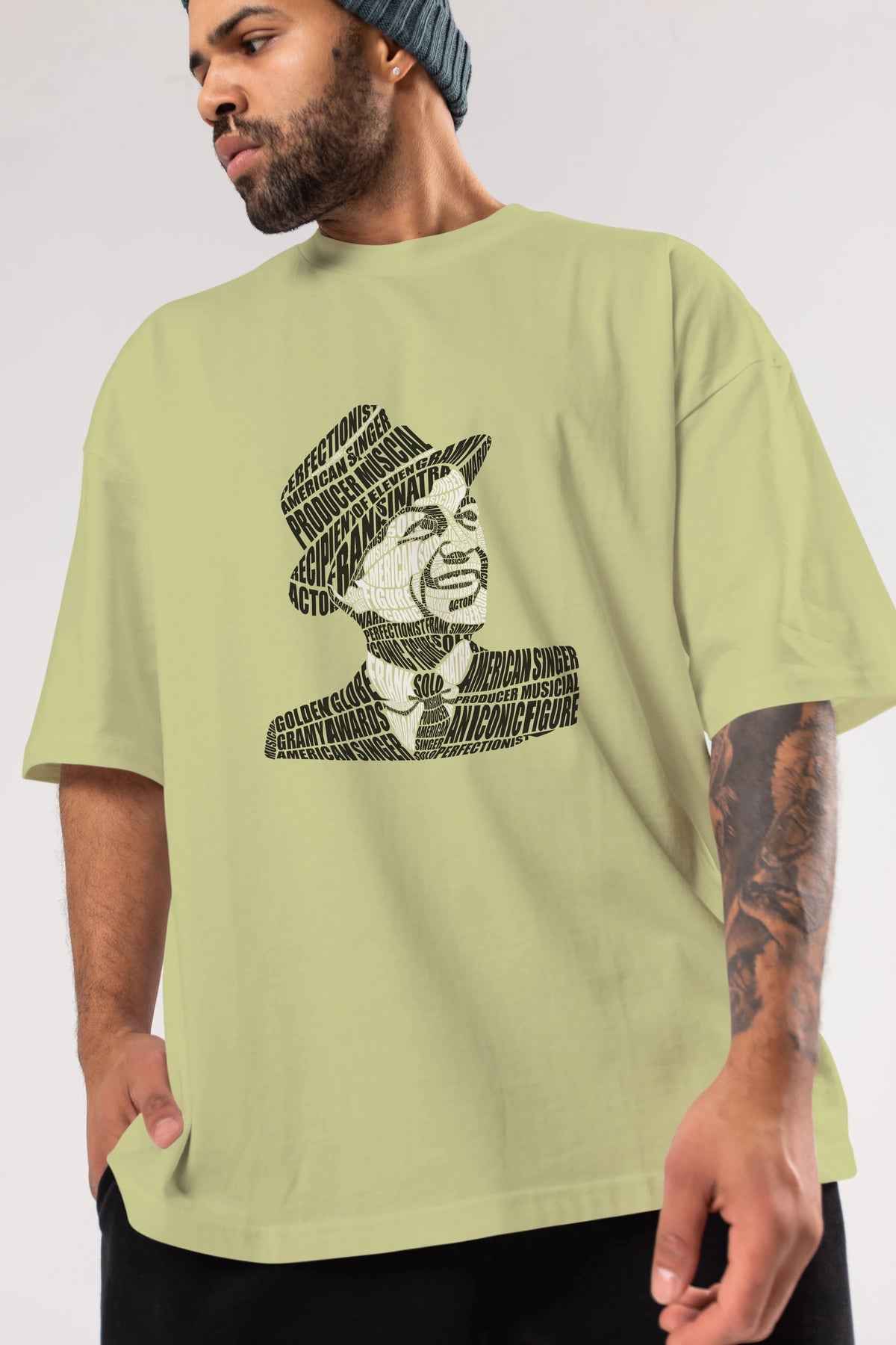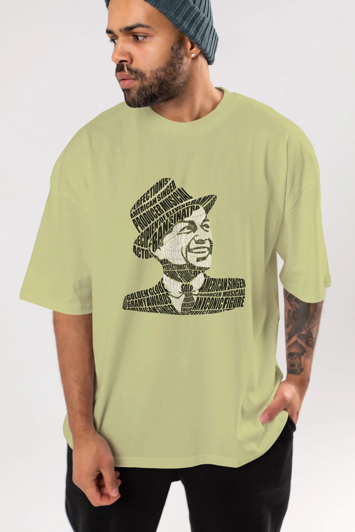 Frank Sinatra Calligram Ön Baskılı Oversize t-shirt %100 pamuk Erkek Kadın Unisex