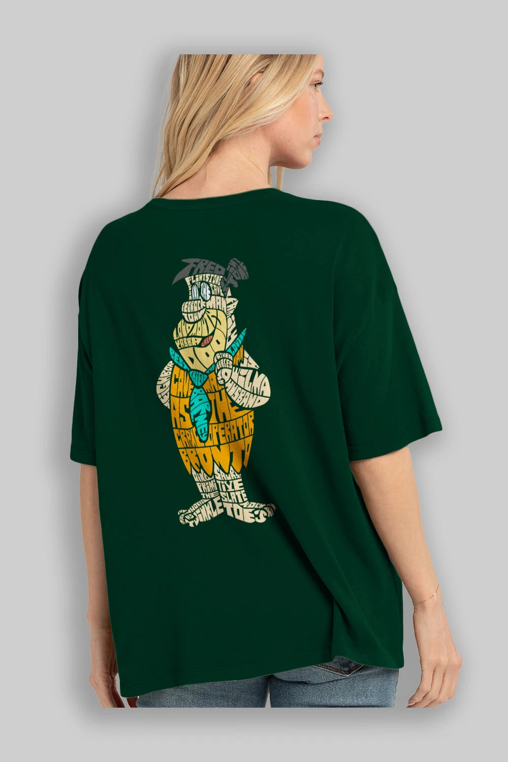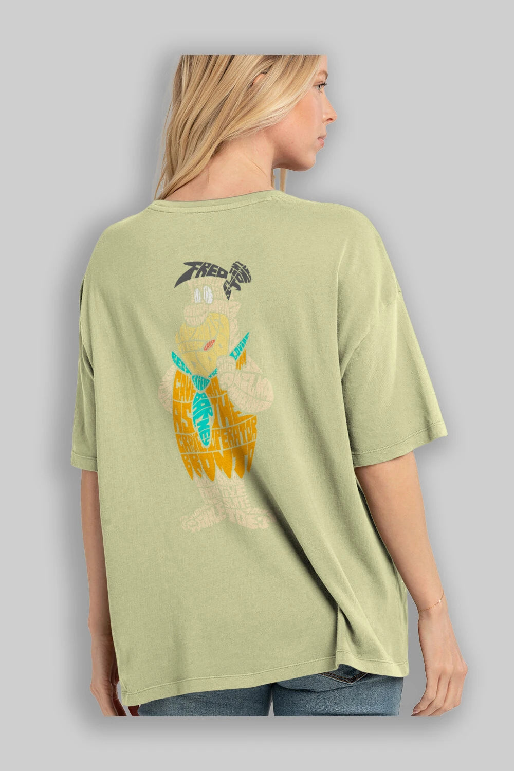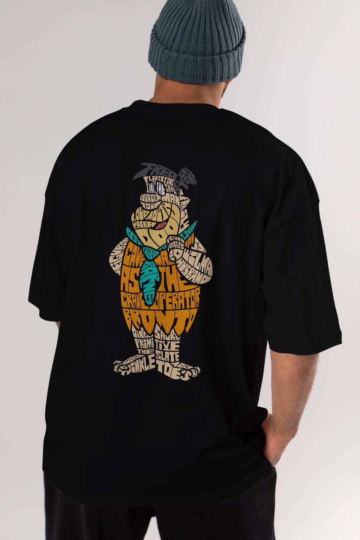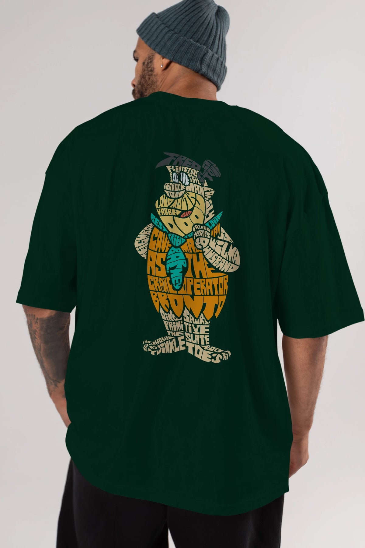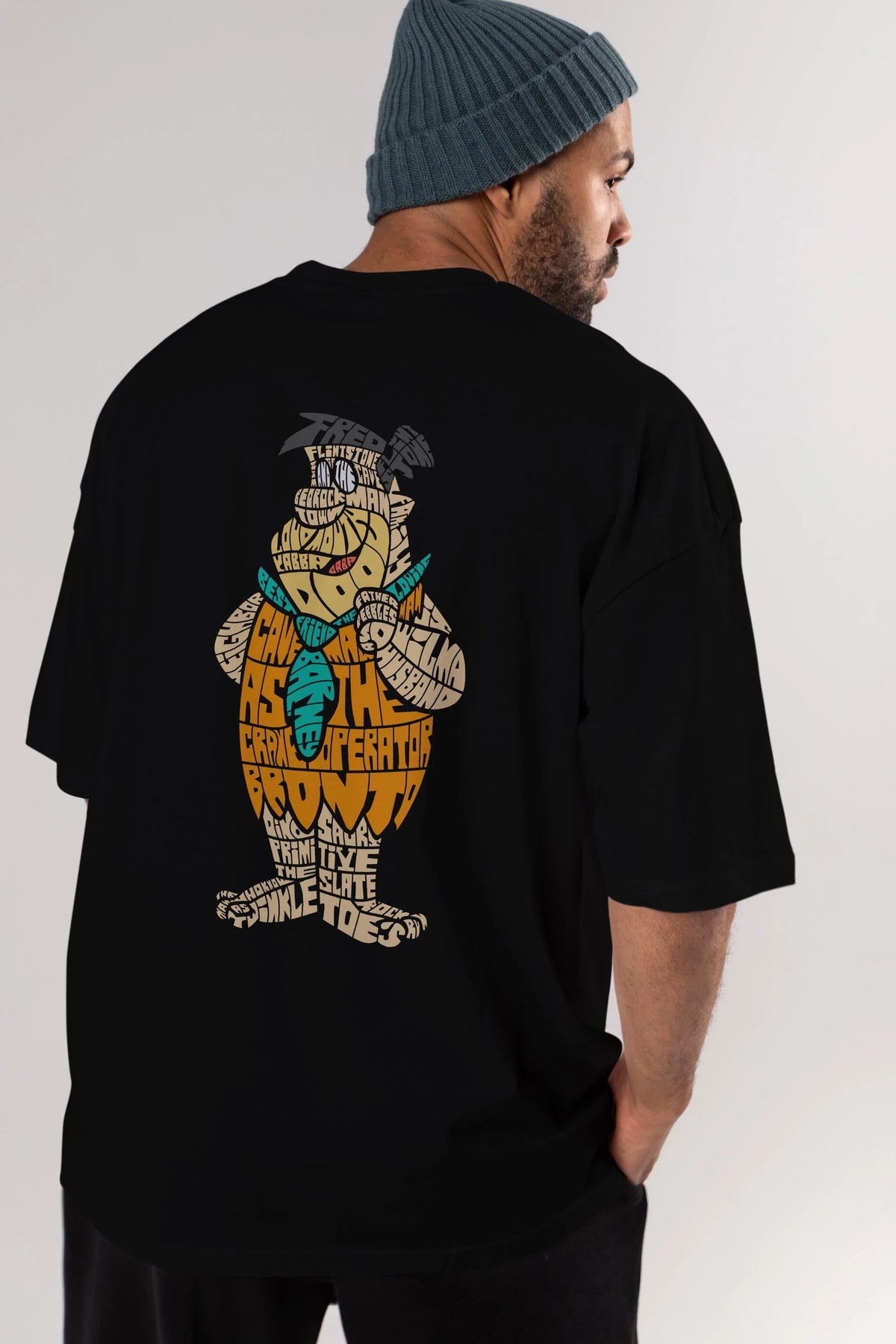 Fred Flintstone Arka Baskılı Oversize t-shirt %100 pamuk Erkek Kadın Unisex