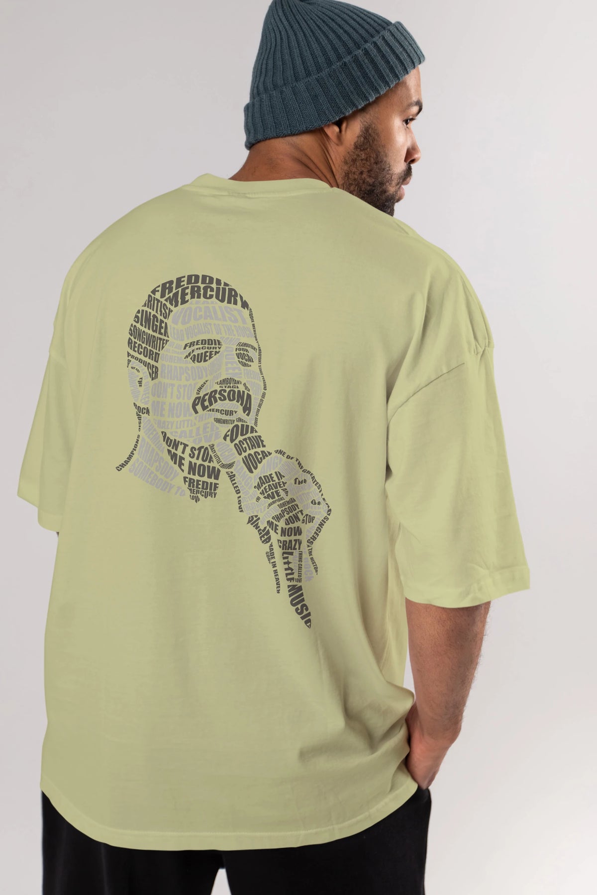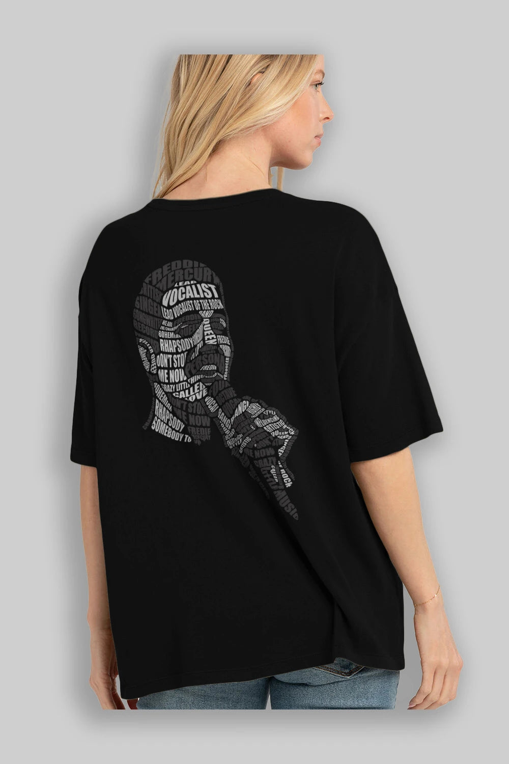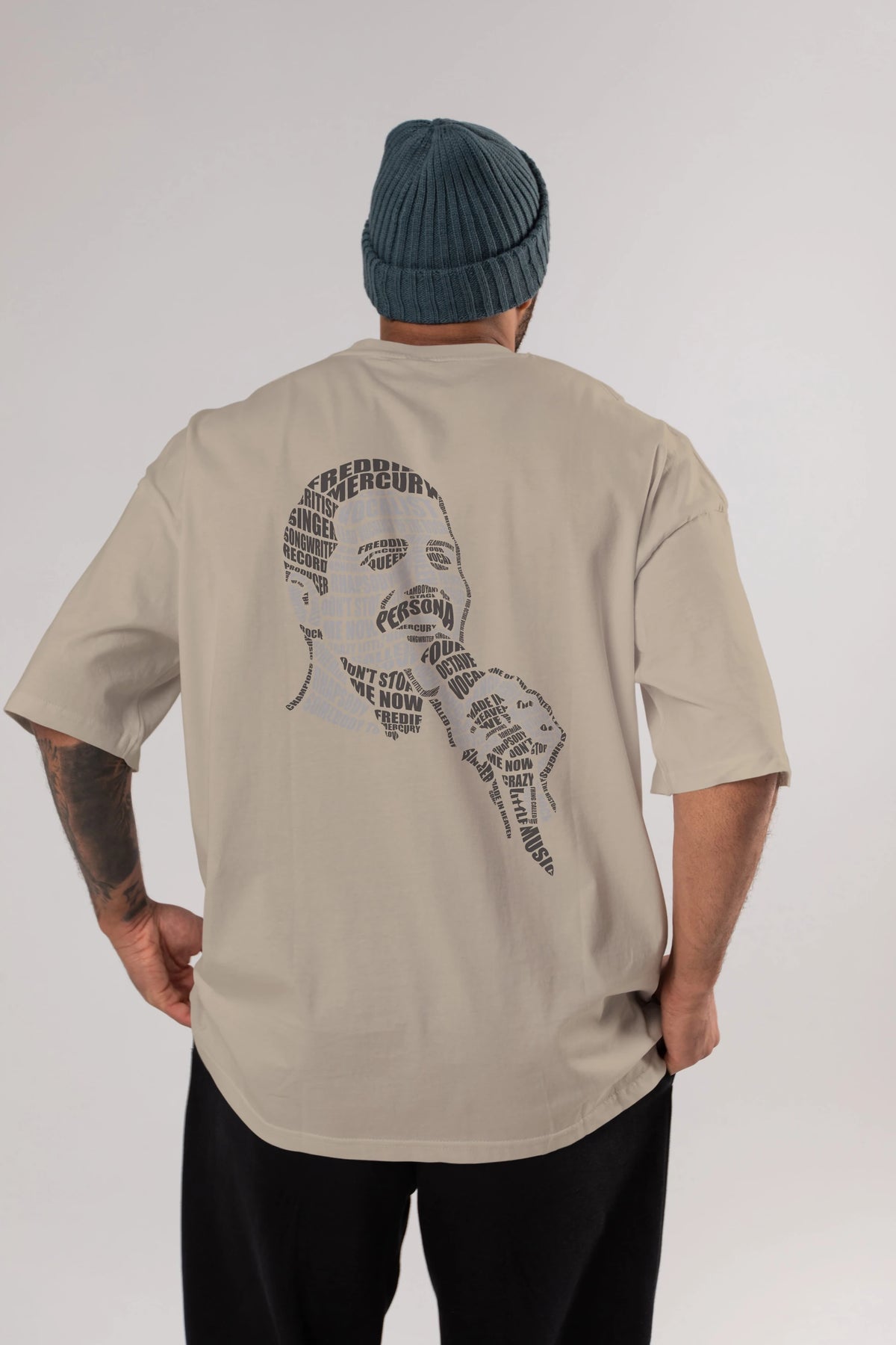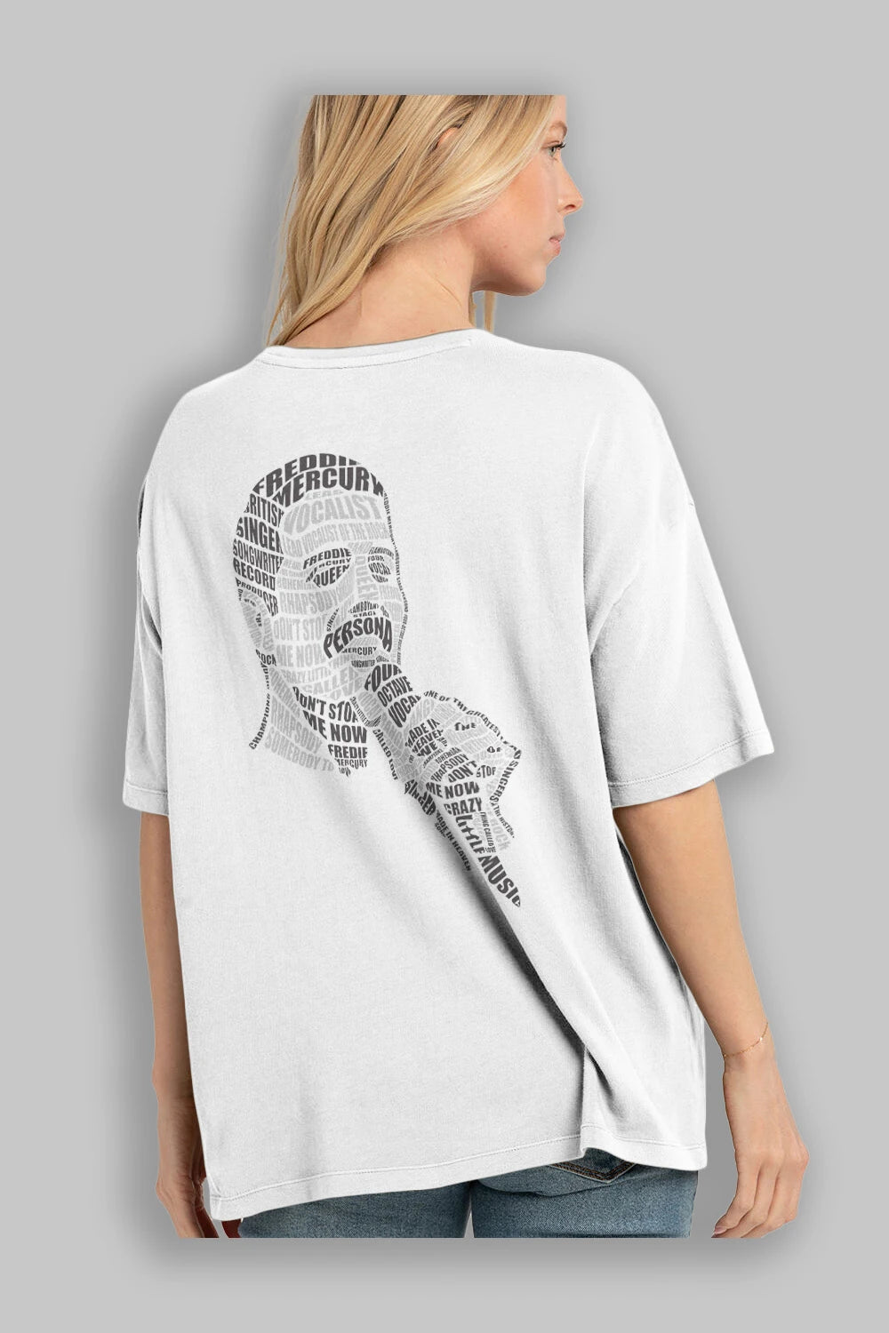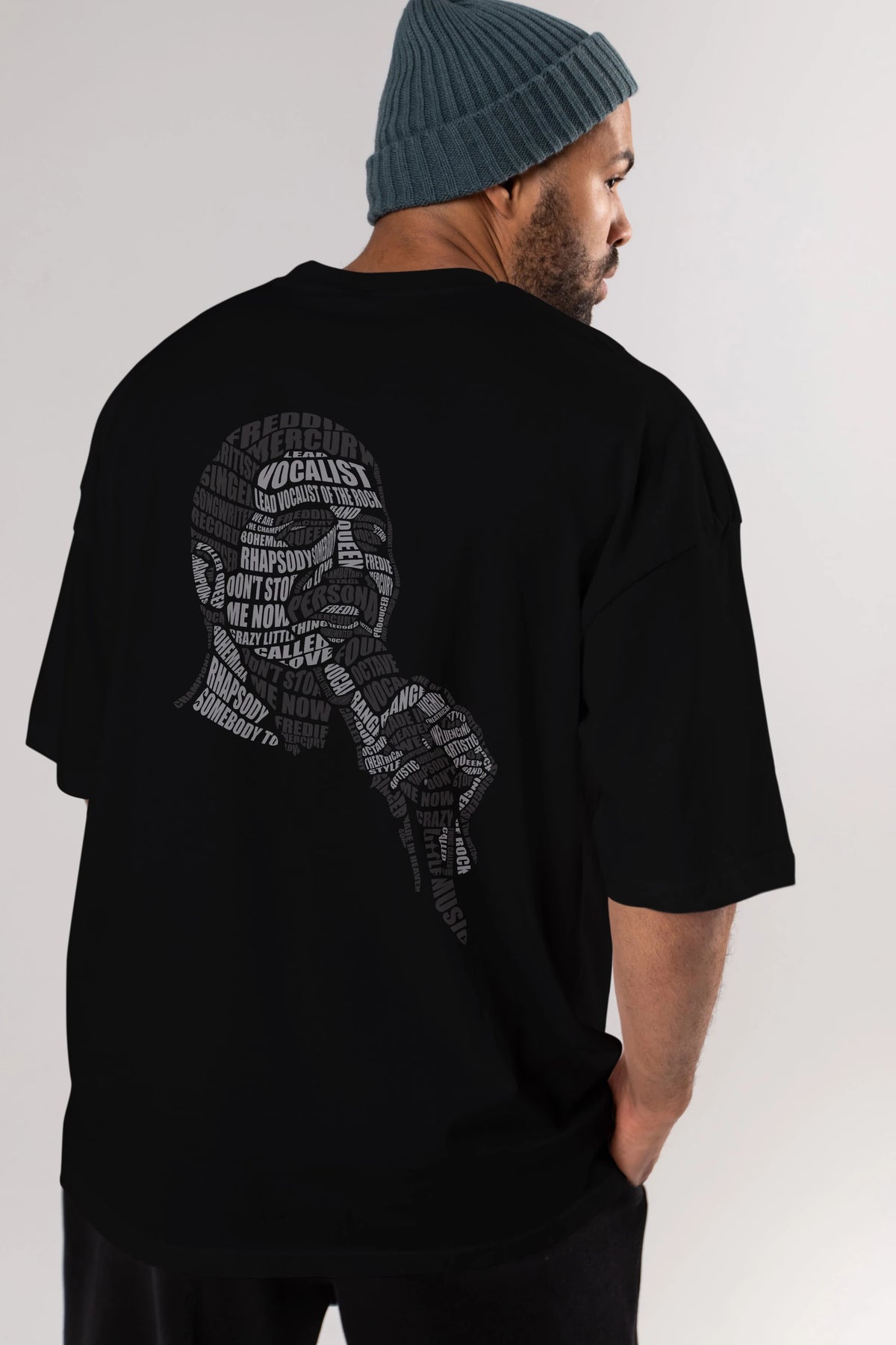 Freddy Mercuri Calligram Arka Baskılı Oversize t-shirt %100 pamuk Erkek Kadın Unisex