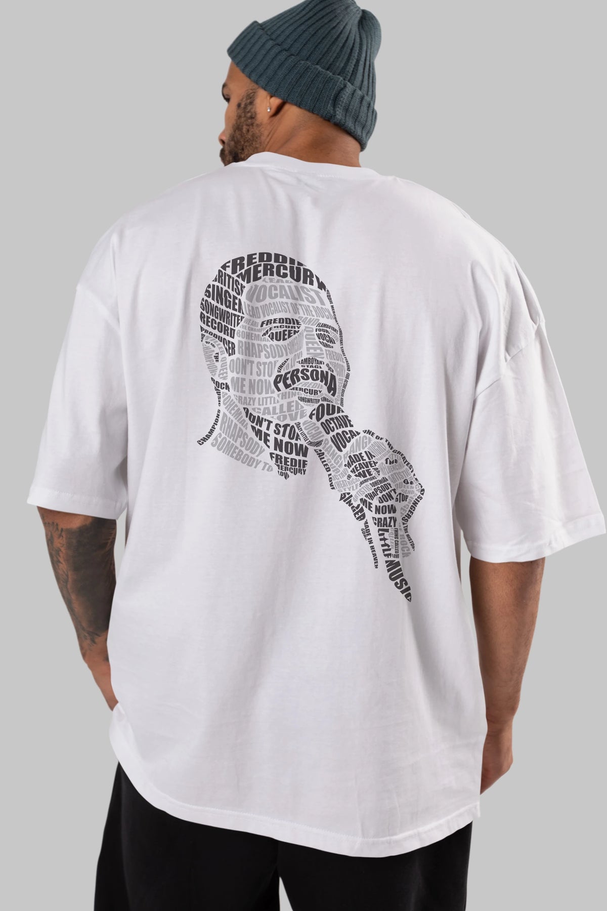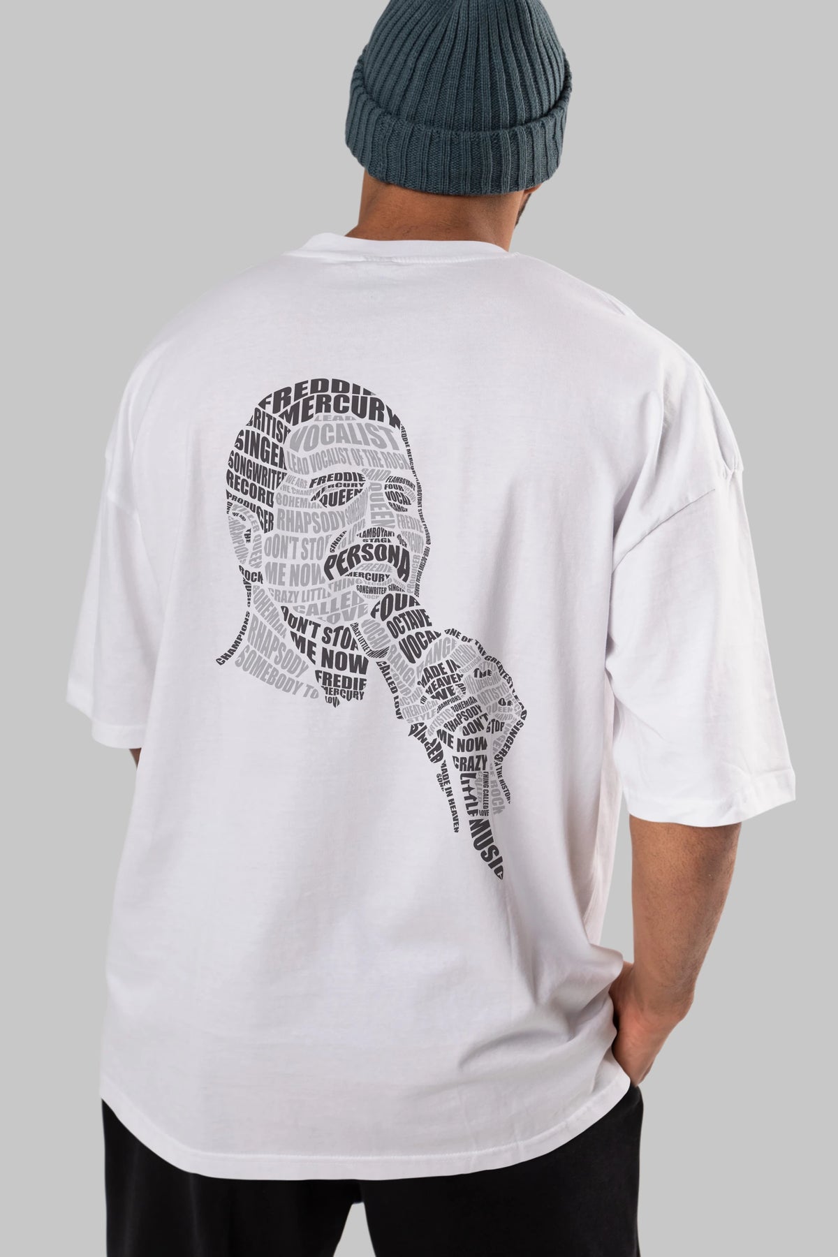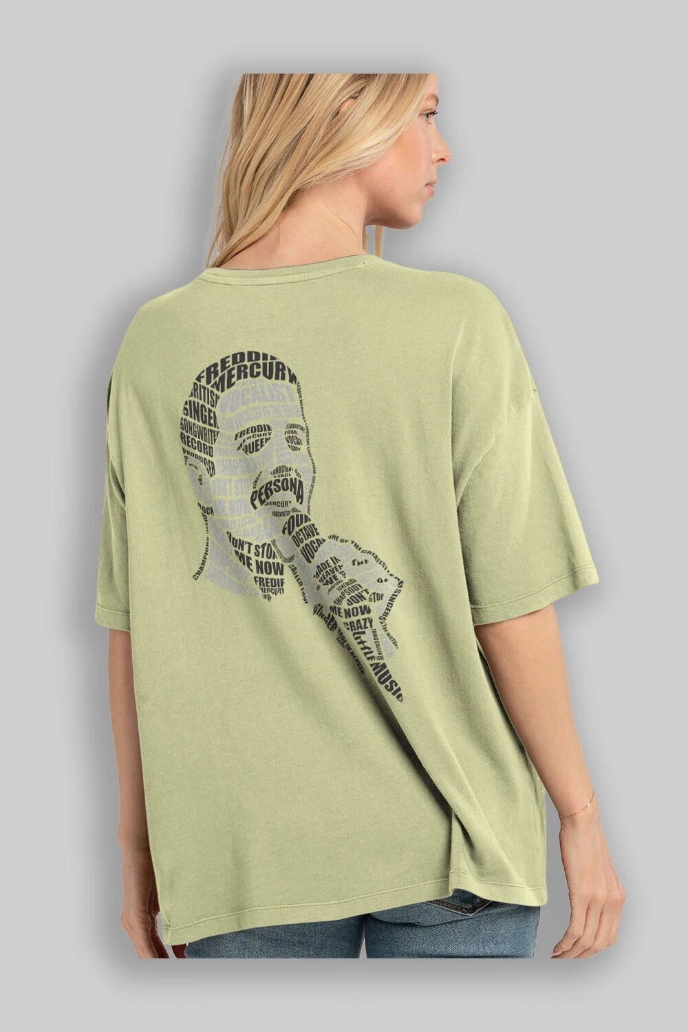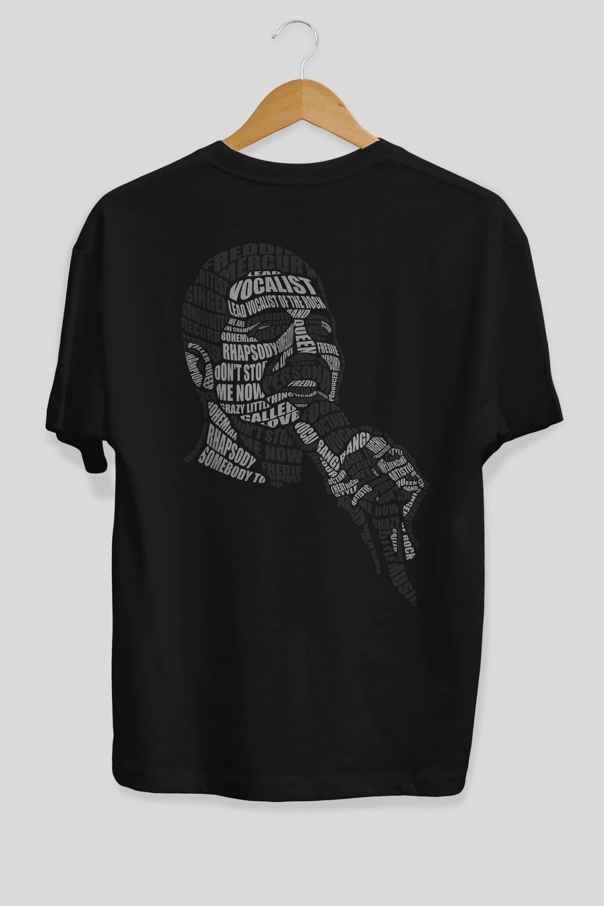 Freddy Mercuri Calligram Arka Baskılı Oversize t-shirt %100 pamuk Erkek Kadın Unisex
