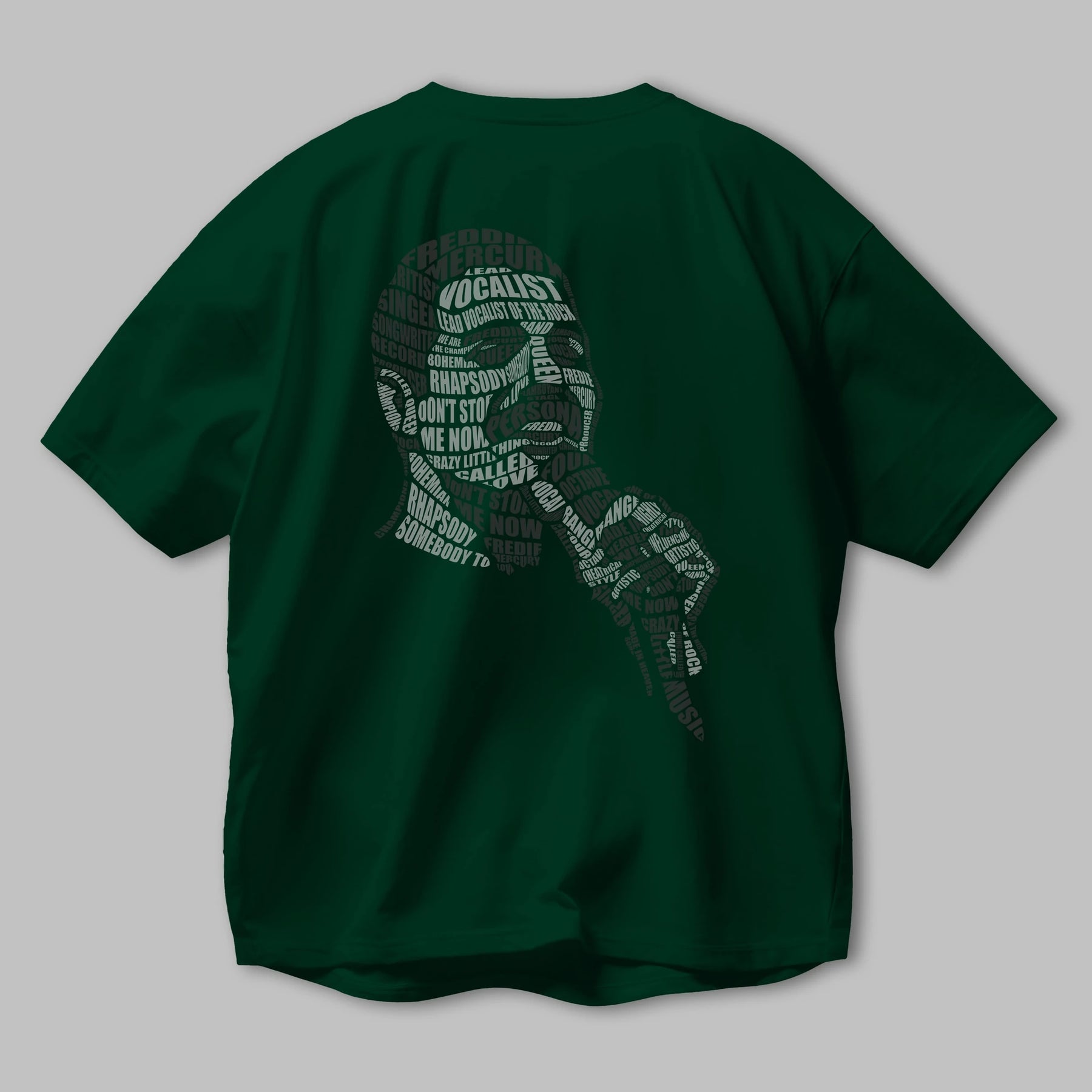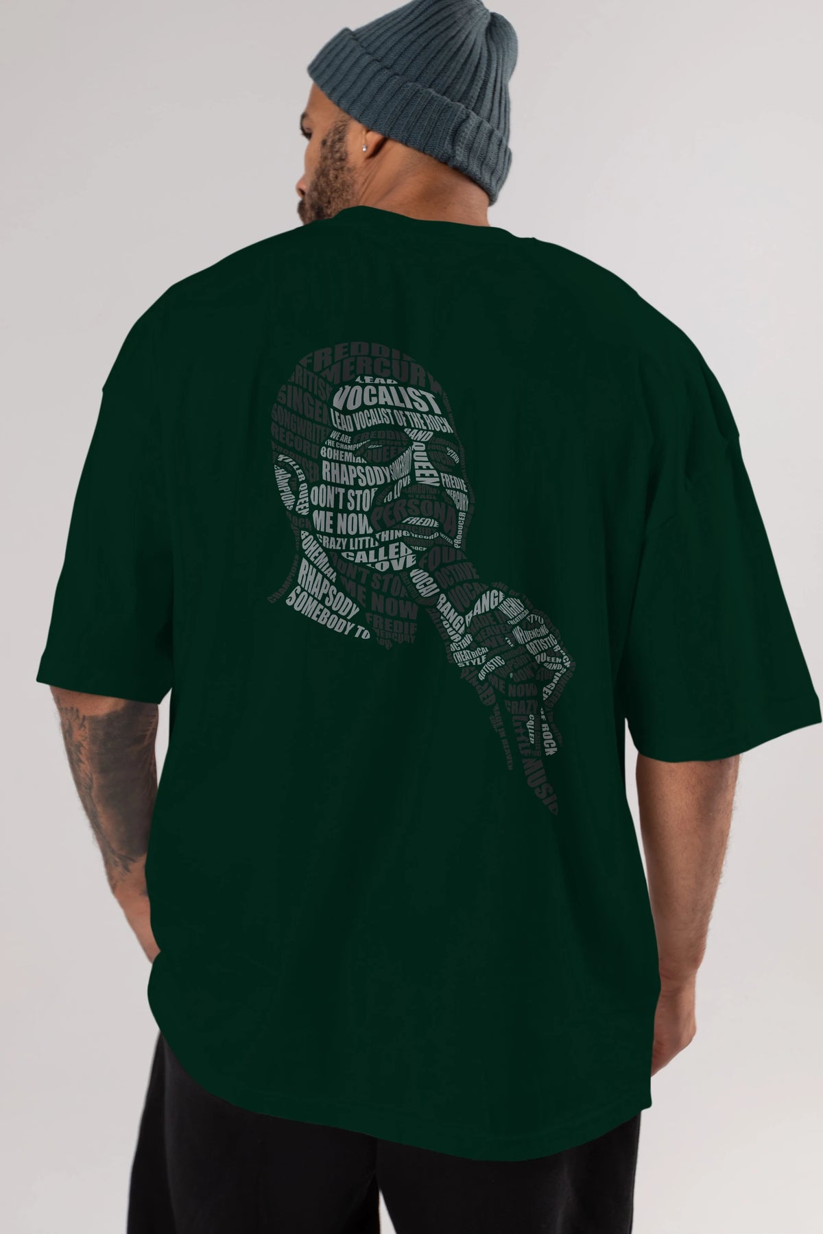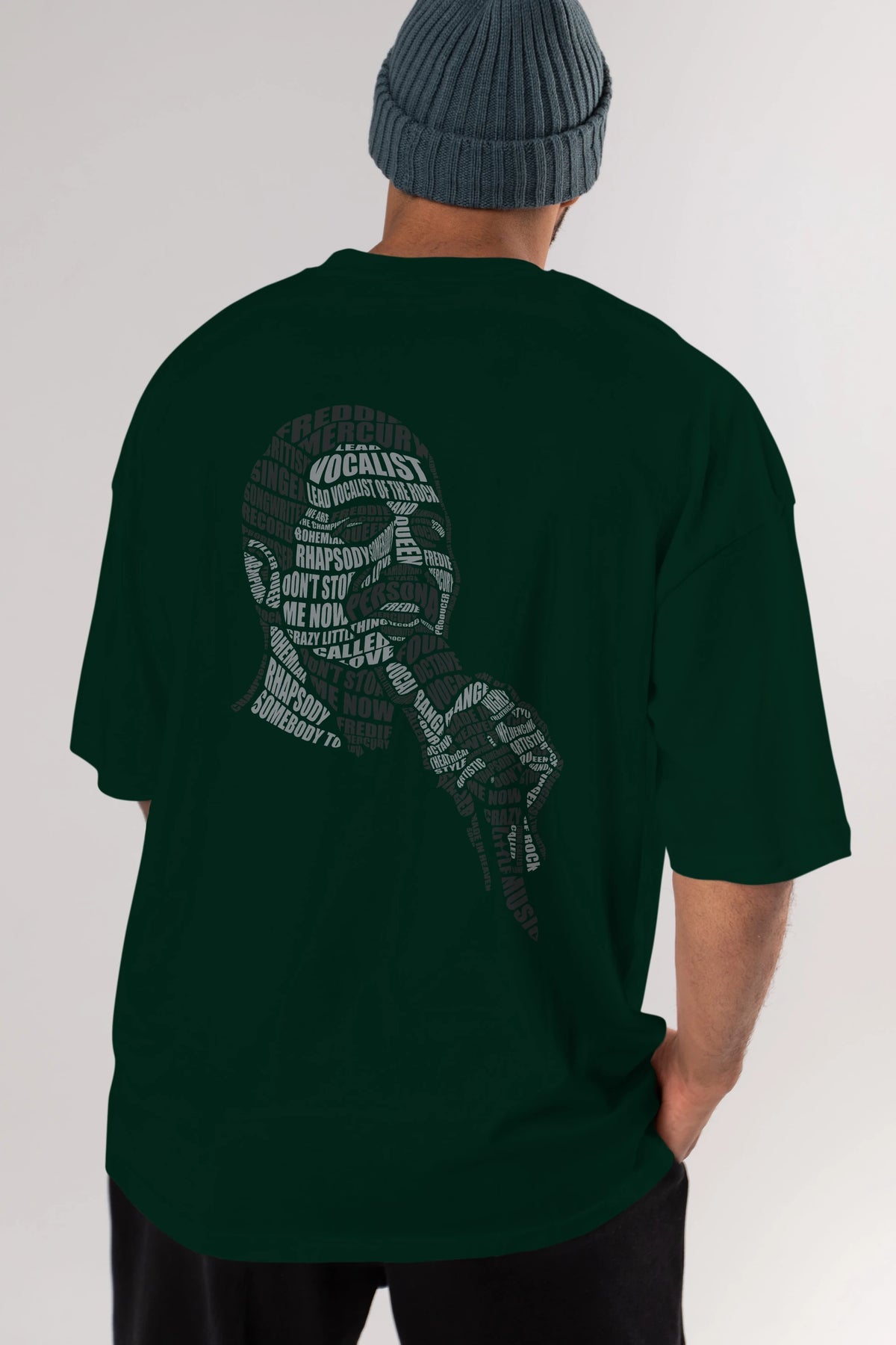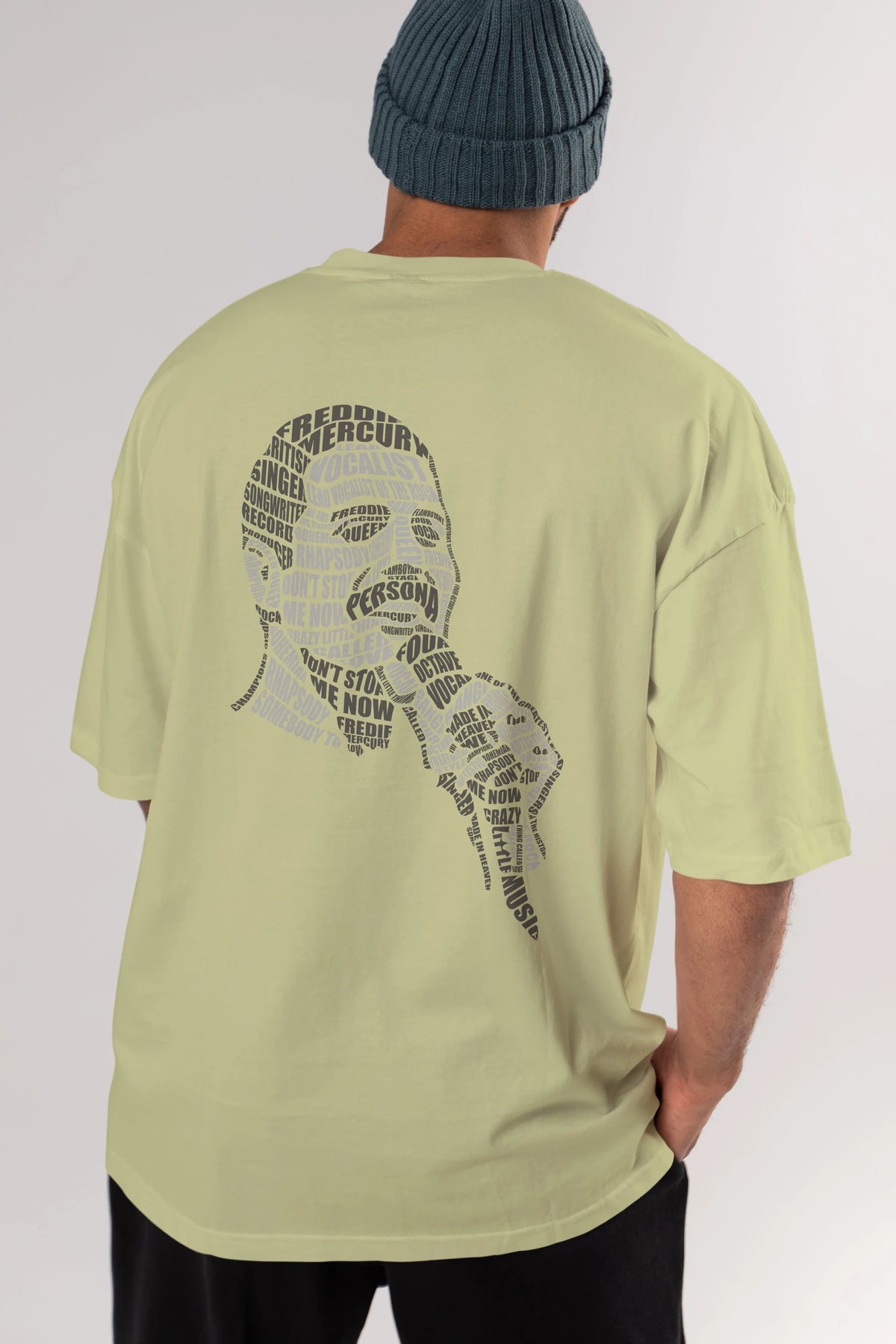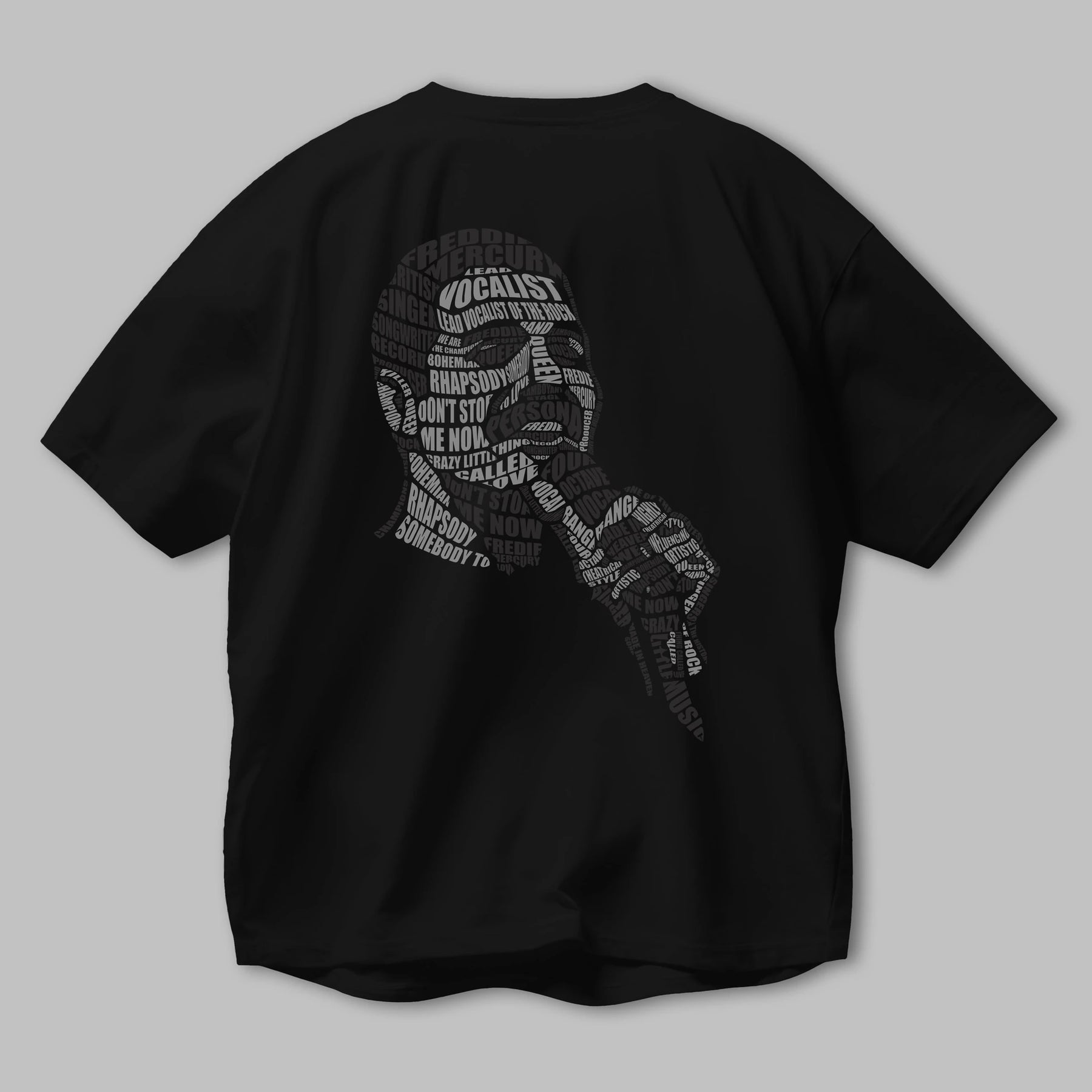 Freddy Mercuri Calligram Arka Baskılı Oversize t-shirt %100 pamuk Erkek Kadın Unisex