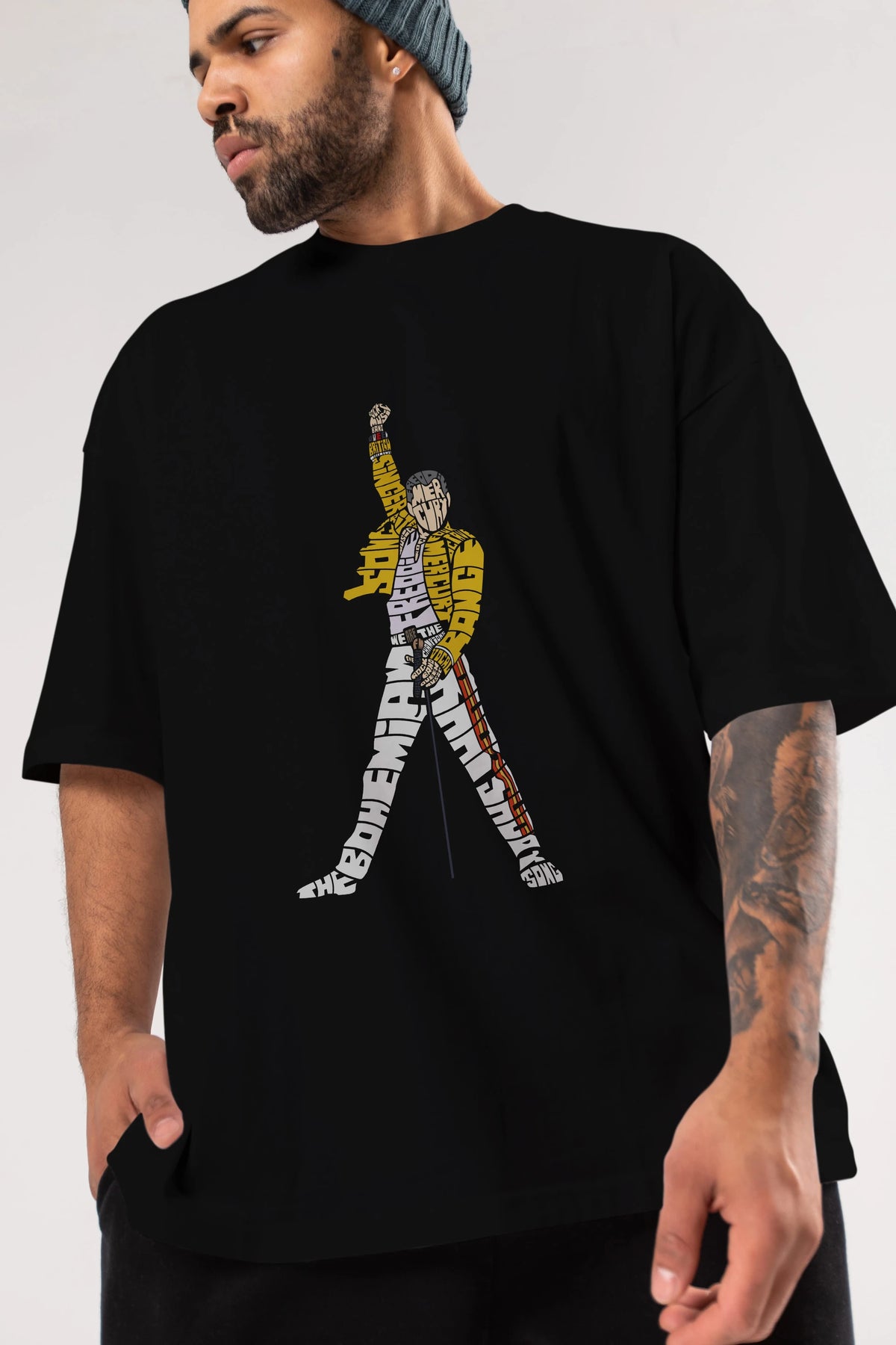 Freddy Mercury Ön Baskılı Oversize t-shirt %100 pamuk Erkek Kadın Unisex