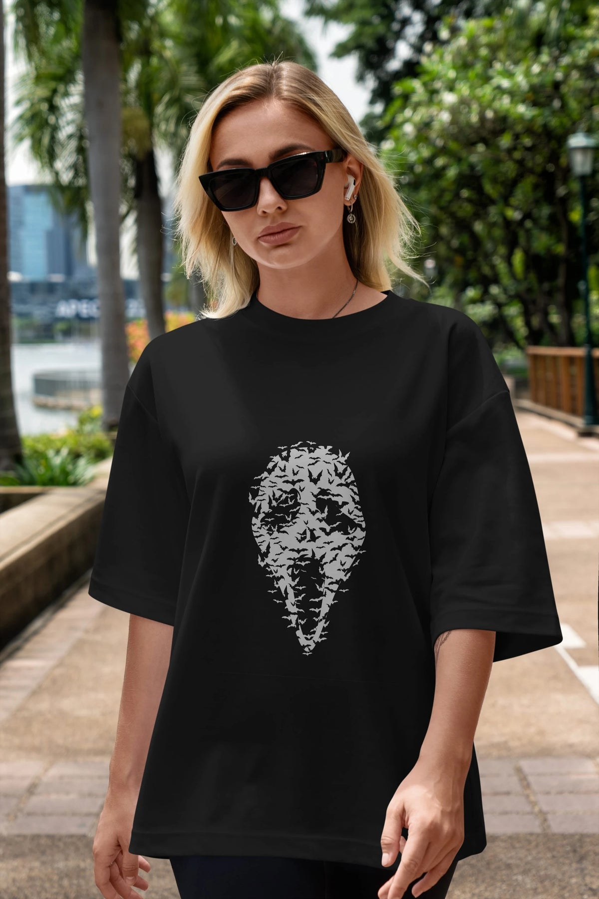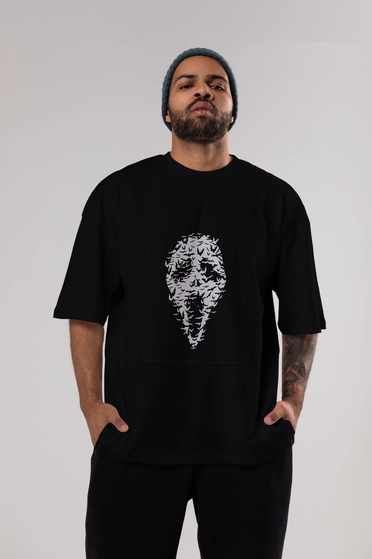 Ghost Face Bats Ön Baskılı Oversize t-shirt %100 pamuk Erkek Kadın Unisex