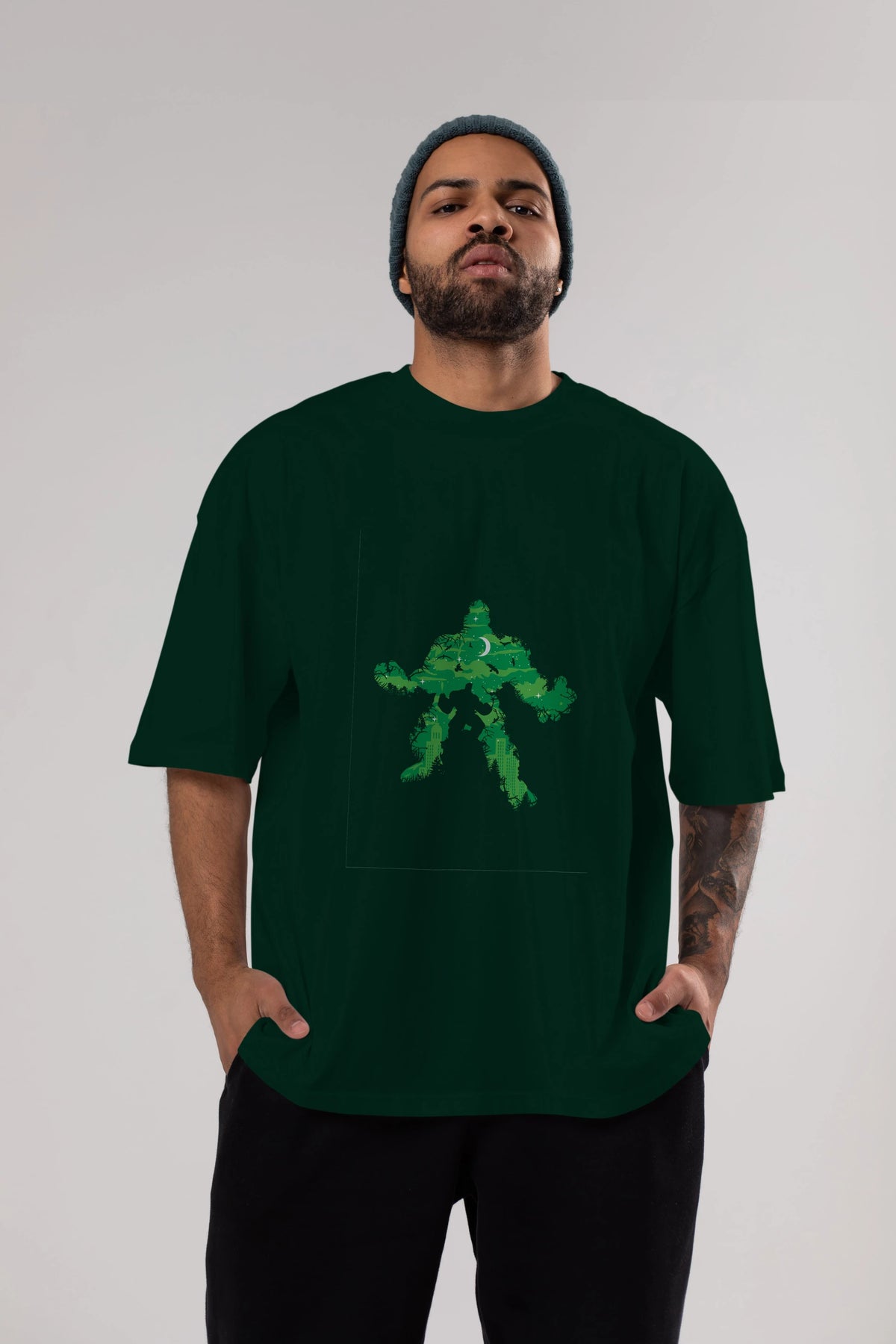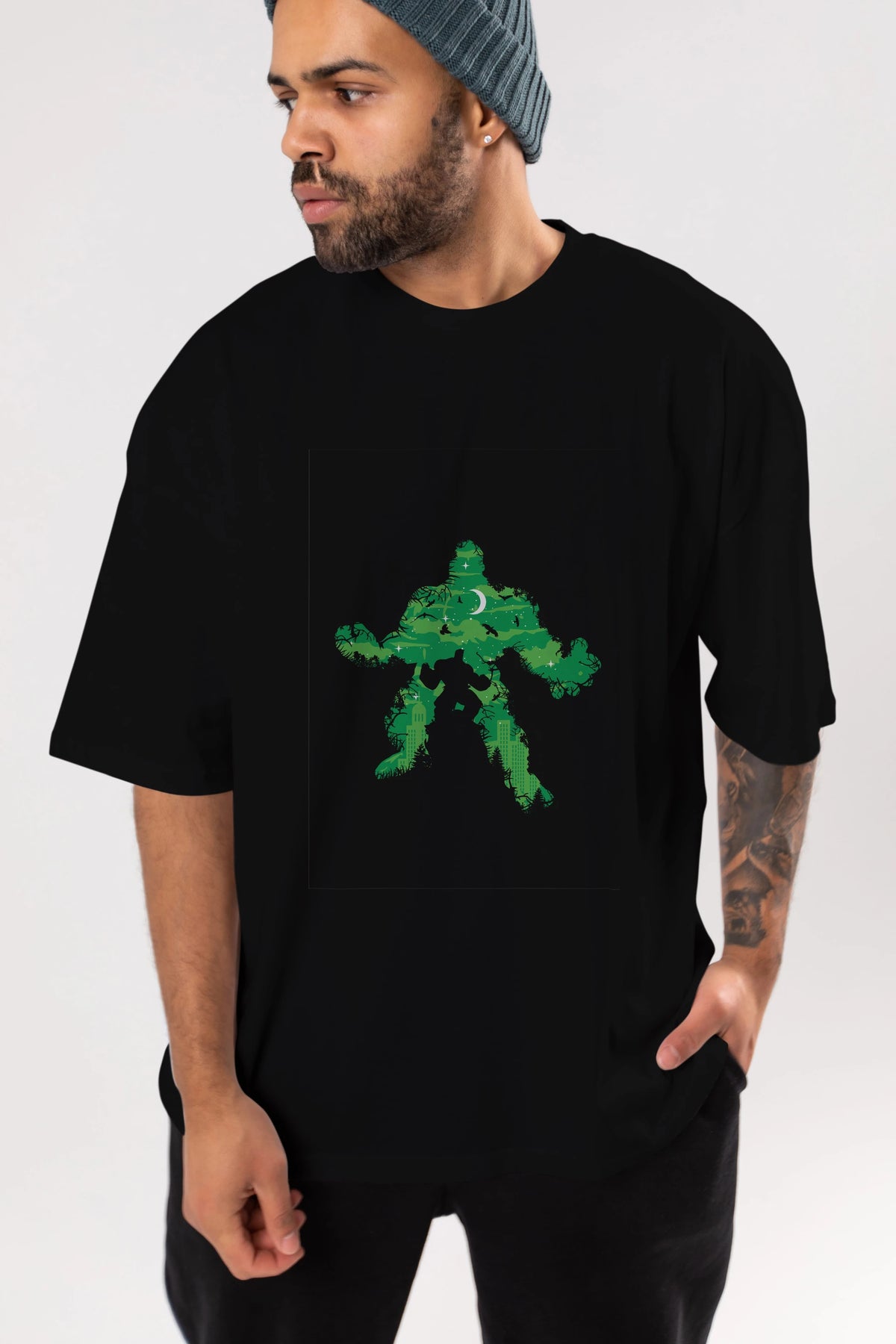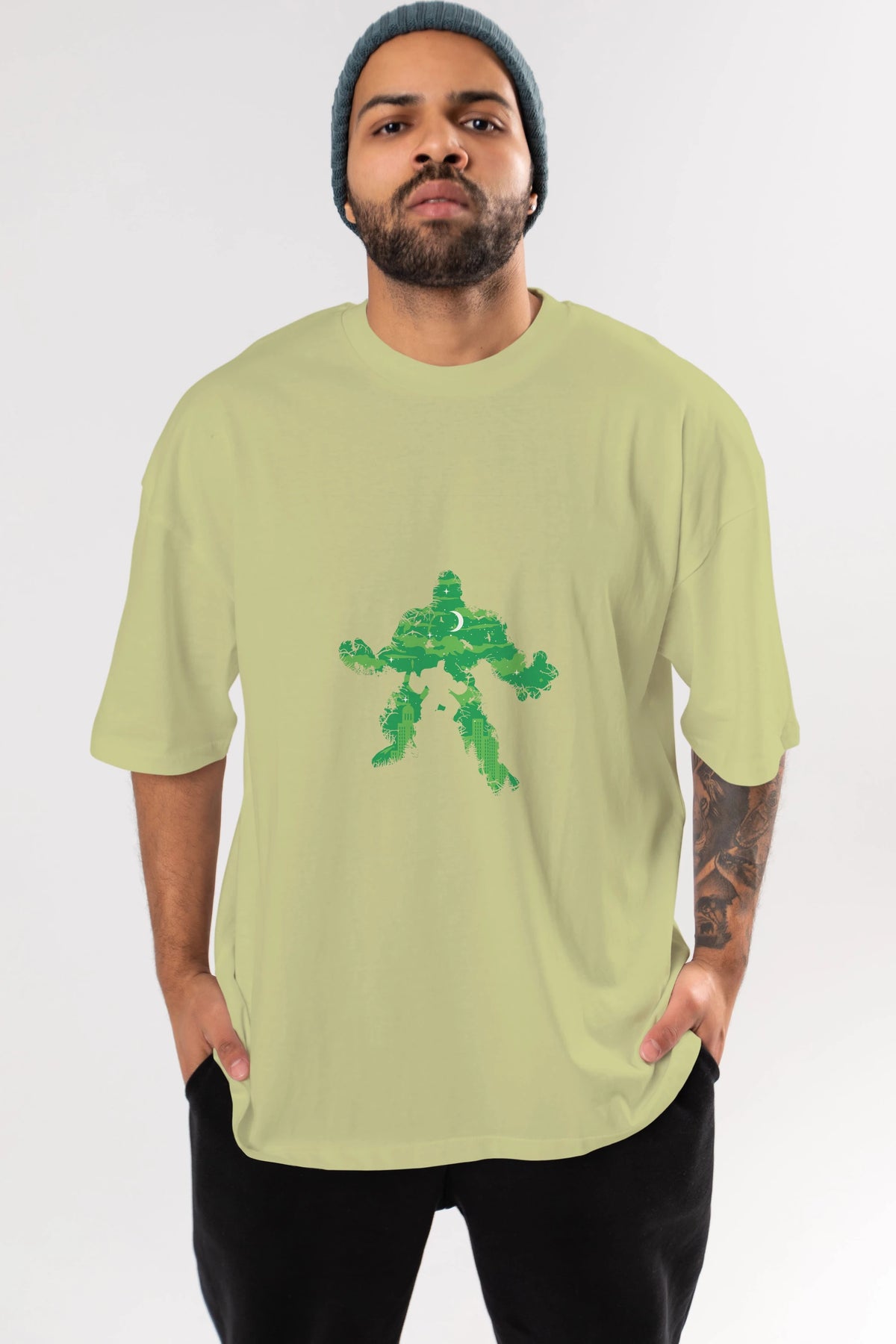 Green Monster Ön Baskılı Oversize t-shirt %100 pamuk Erkek Kadın Unisex