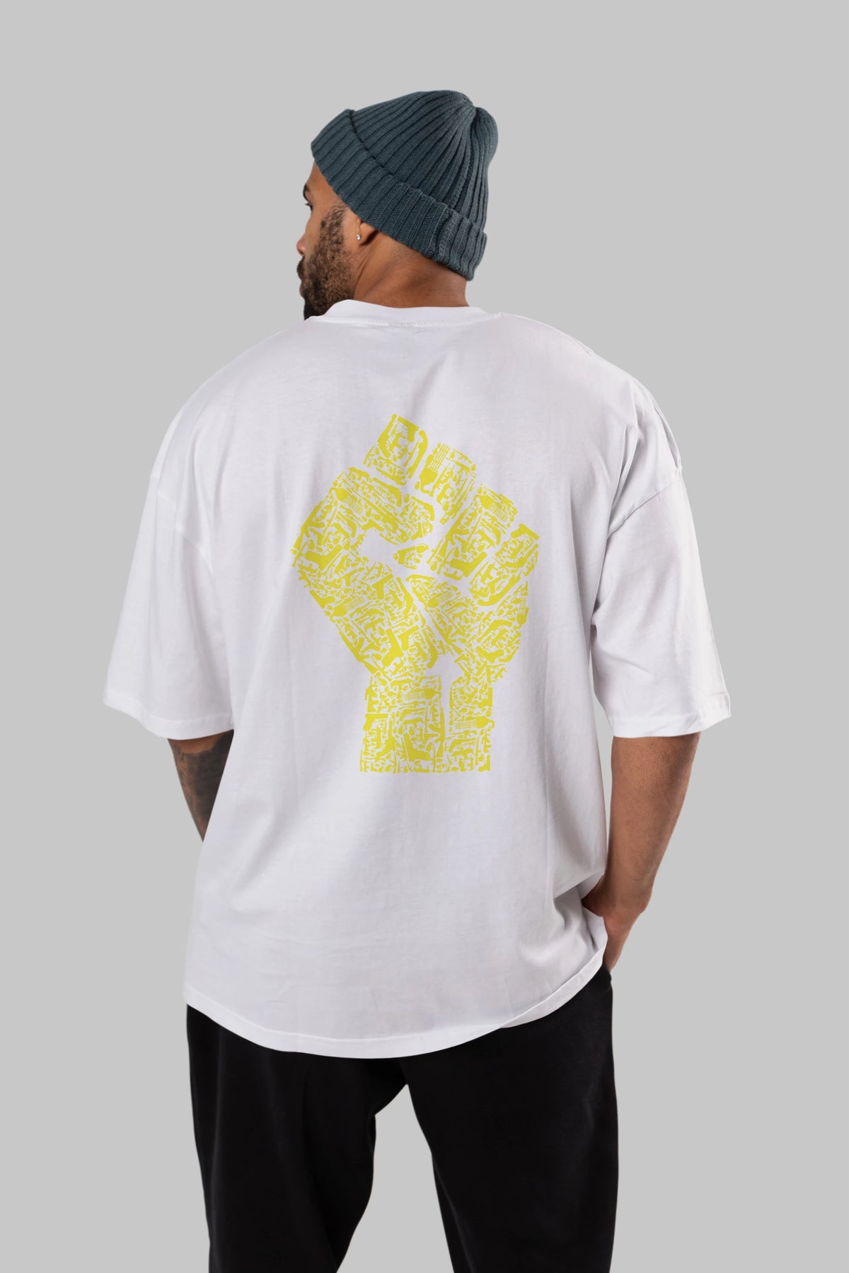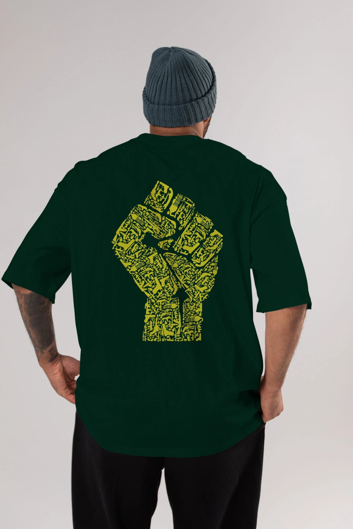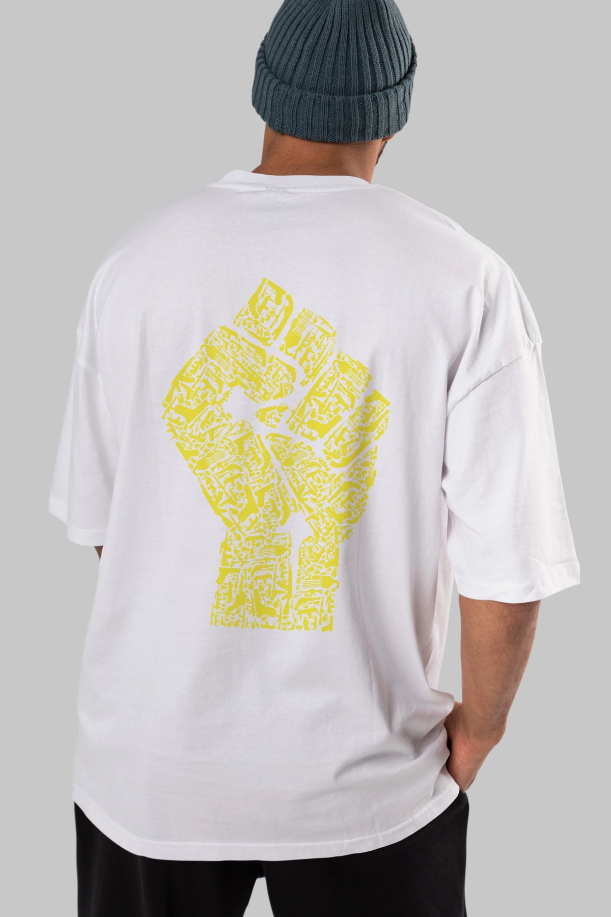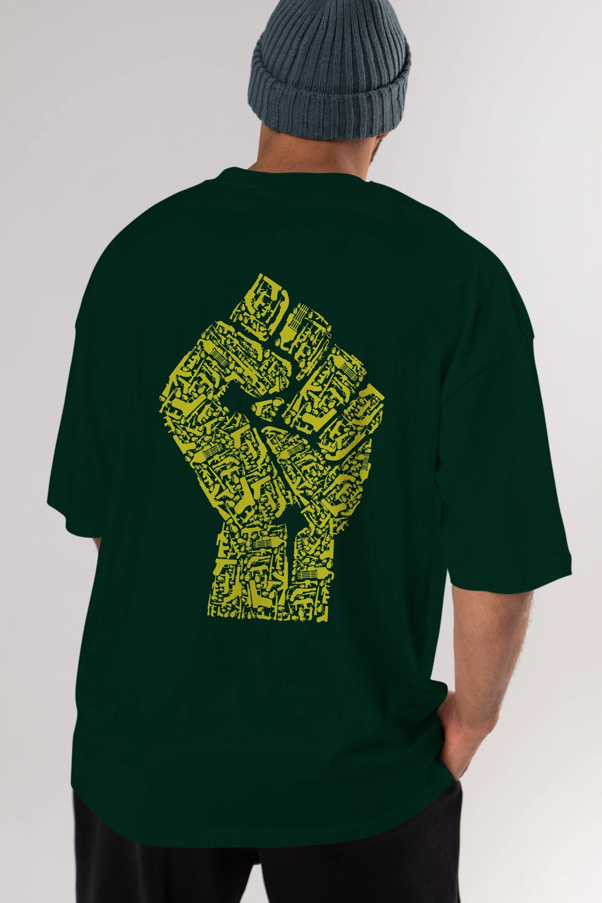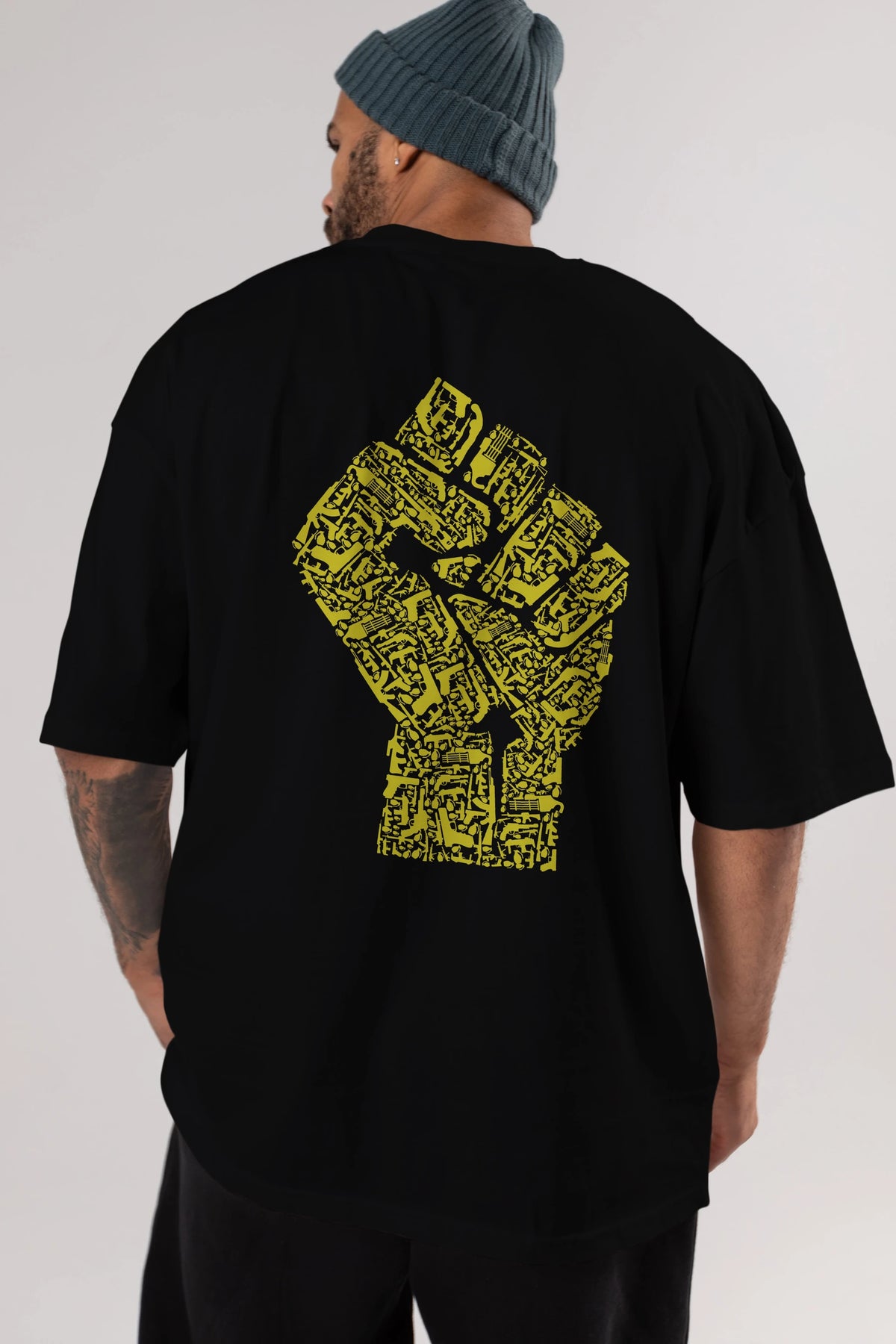 Hand Of Revolution Arka Baskılı Oversize t-shirt %100 pamuk Erkek Kadın Unisex