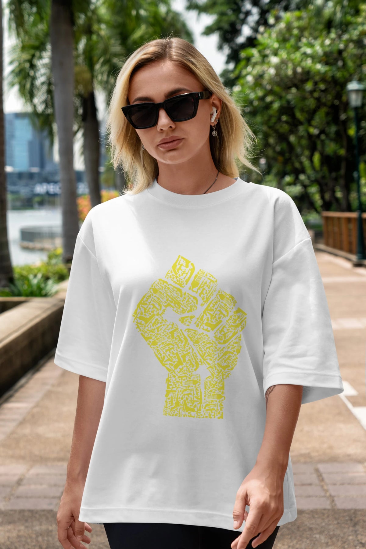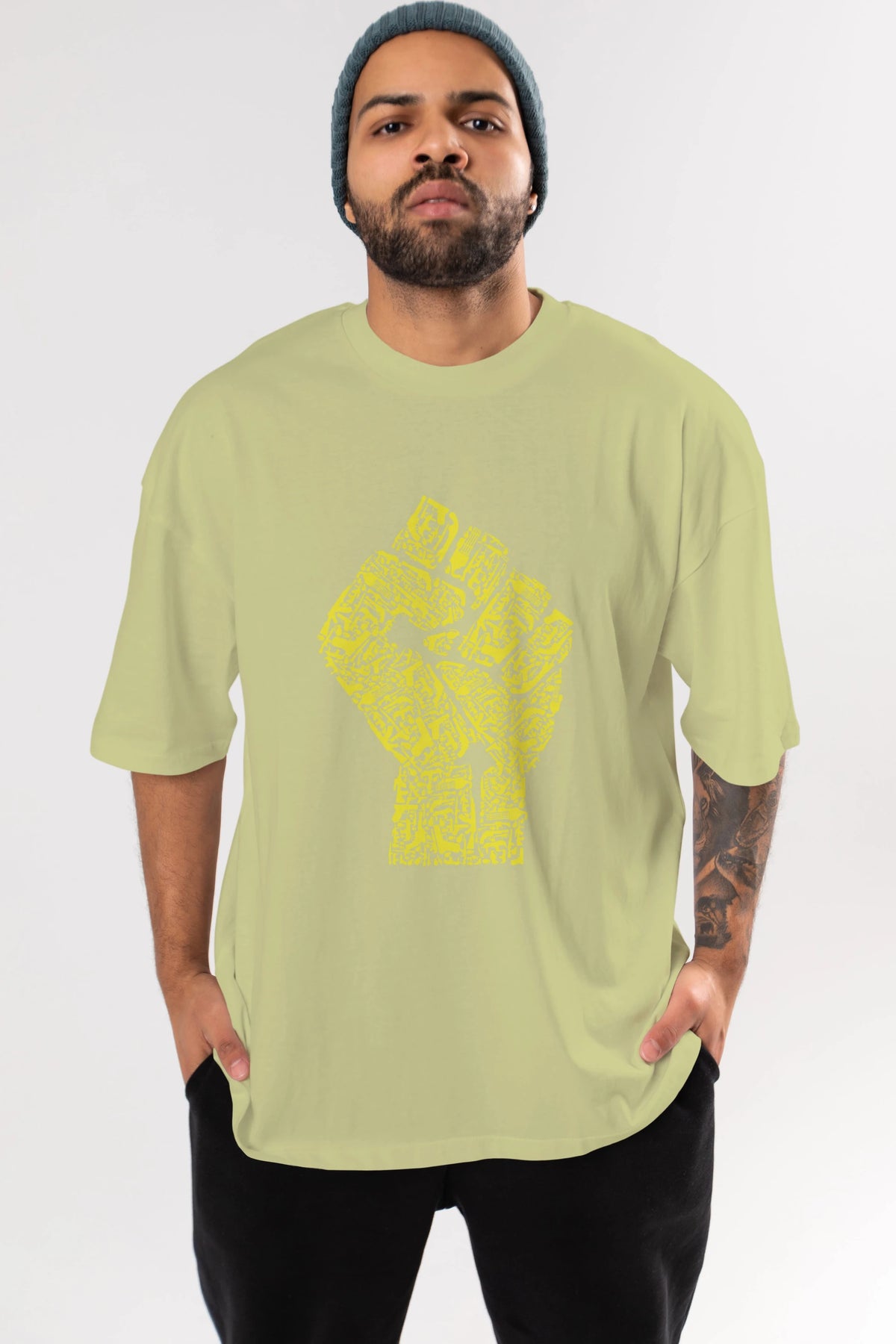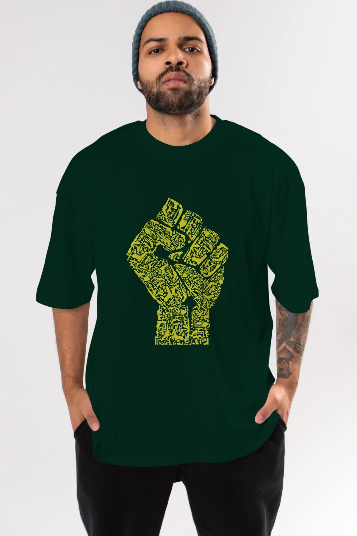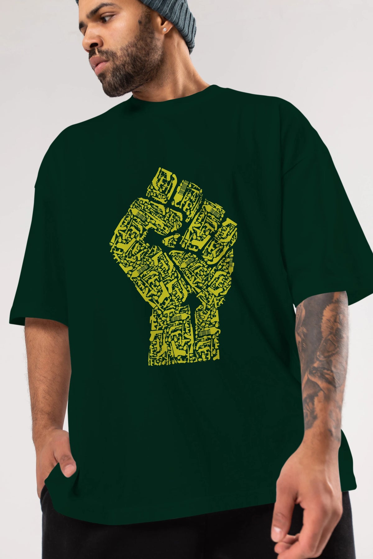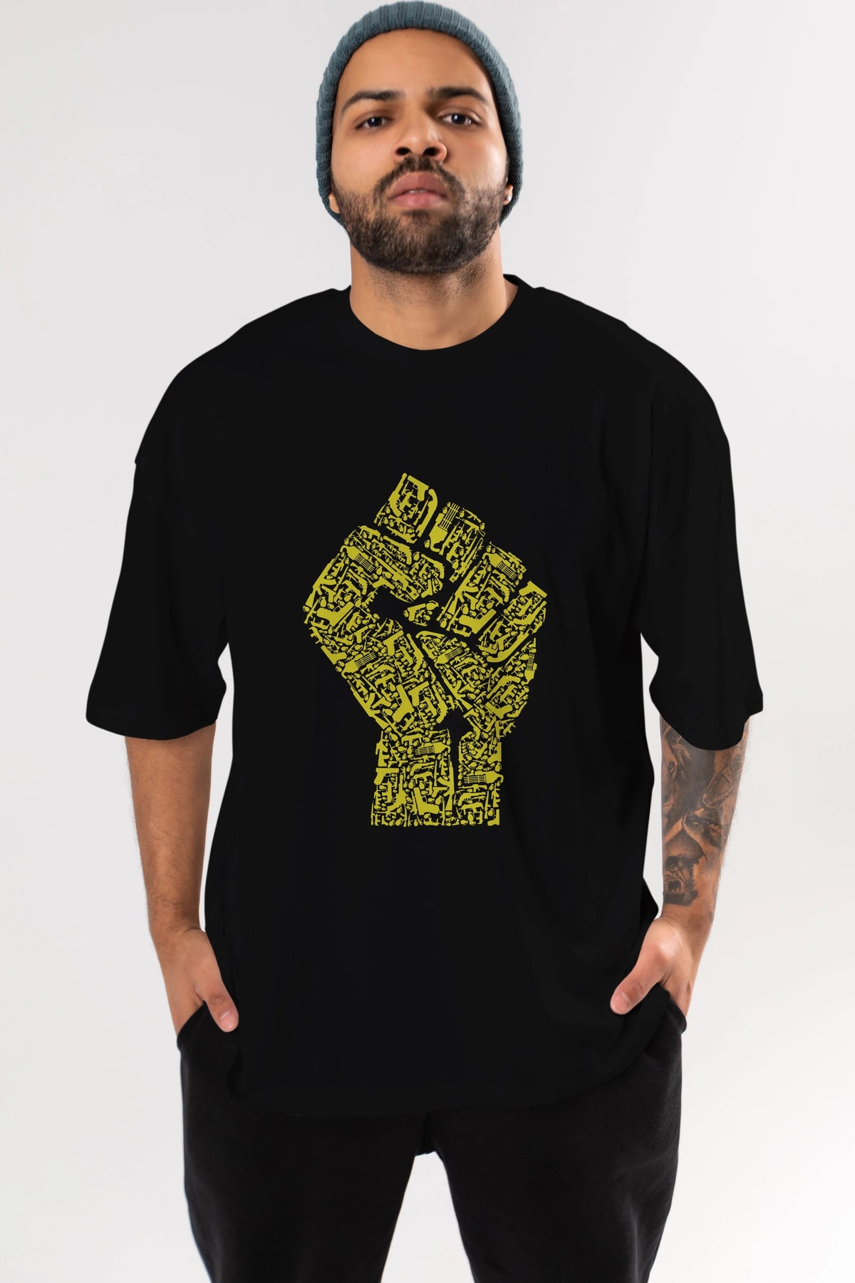 Hand Of Revolution Ön Baskılı Oversize t-shirt %100 pamuk Erkek Kadın Unisex