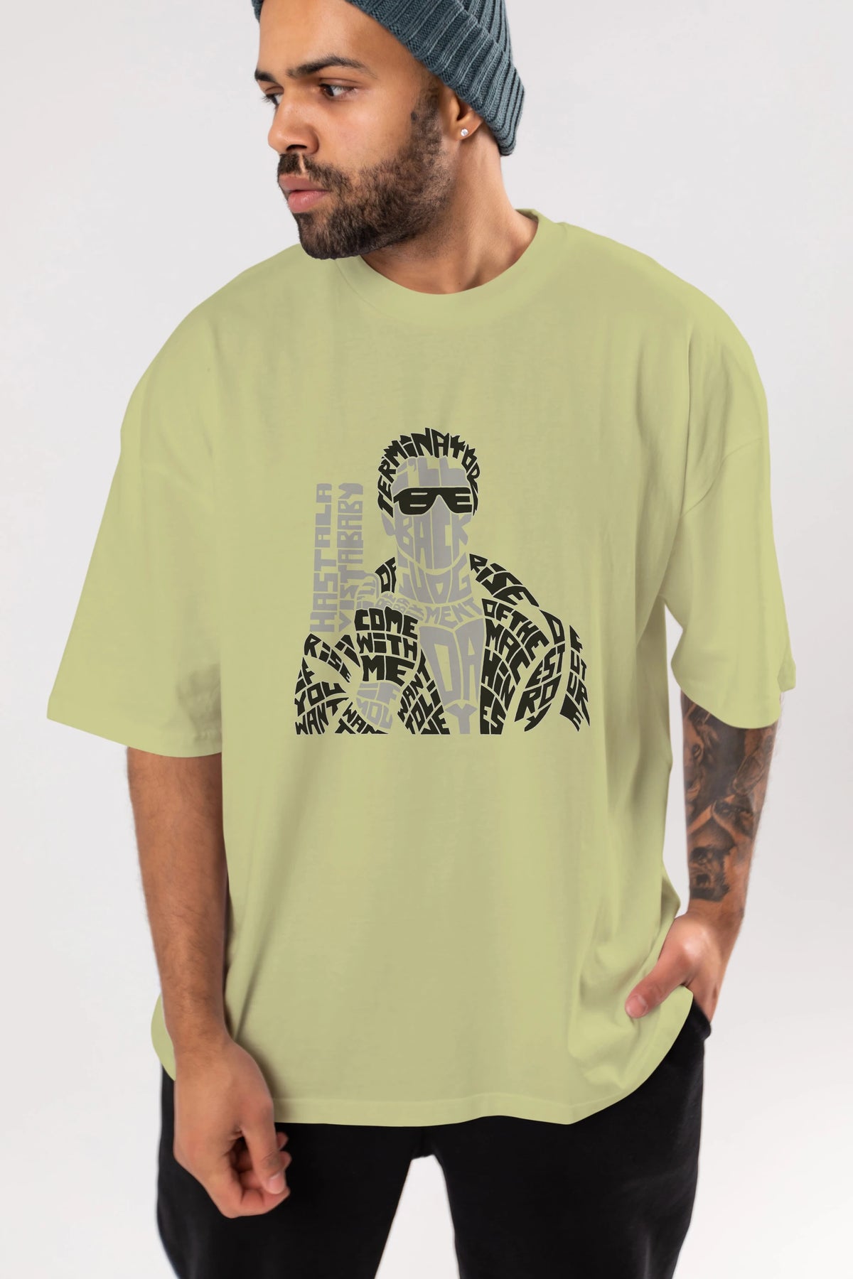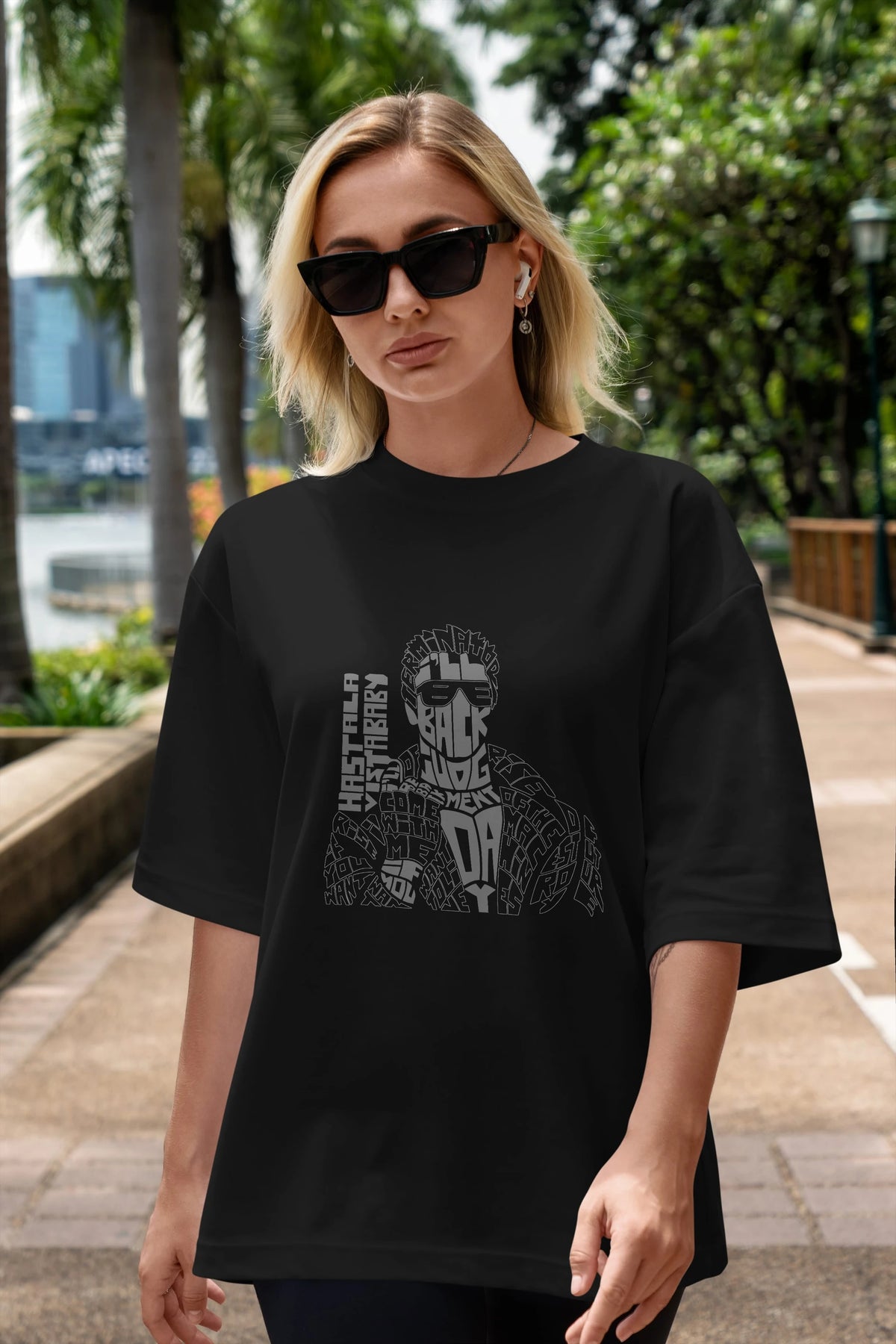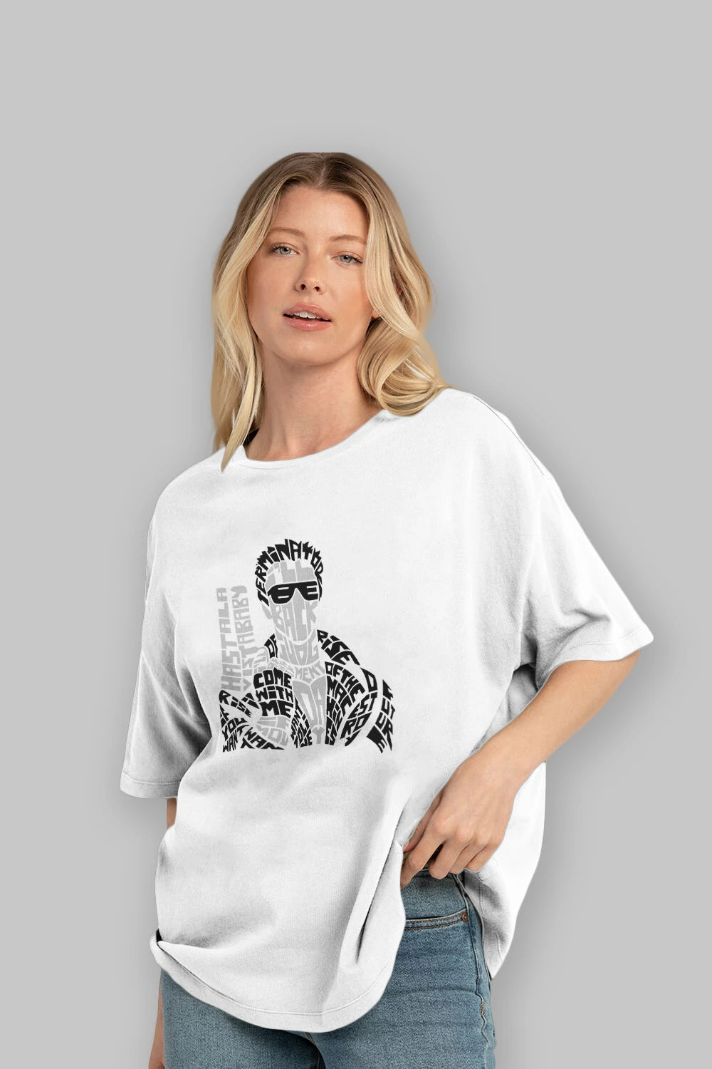 Hem erkekler hem de kadınlar için uygun, taze, modern bir baskıya sahip baskılı oversize t-shirt.