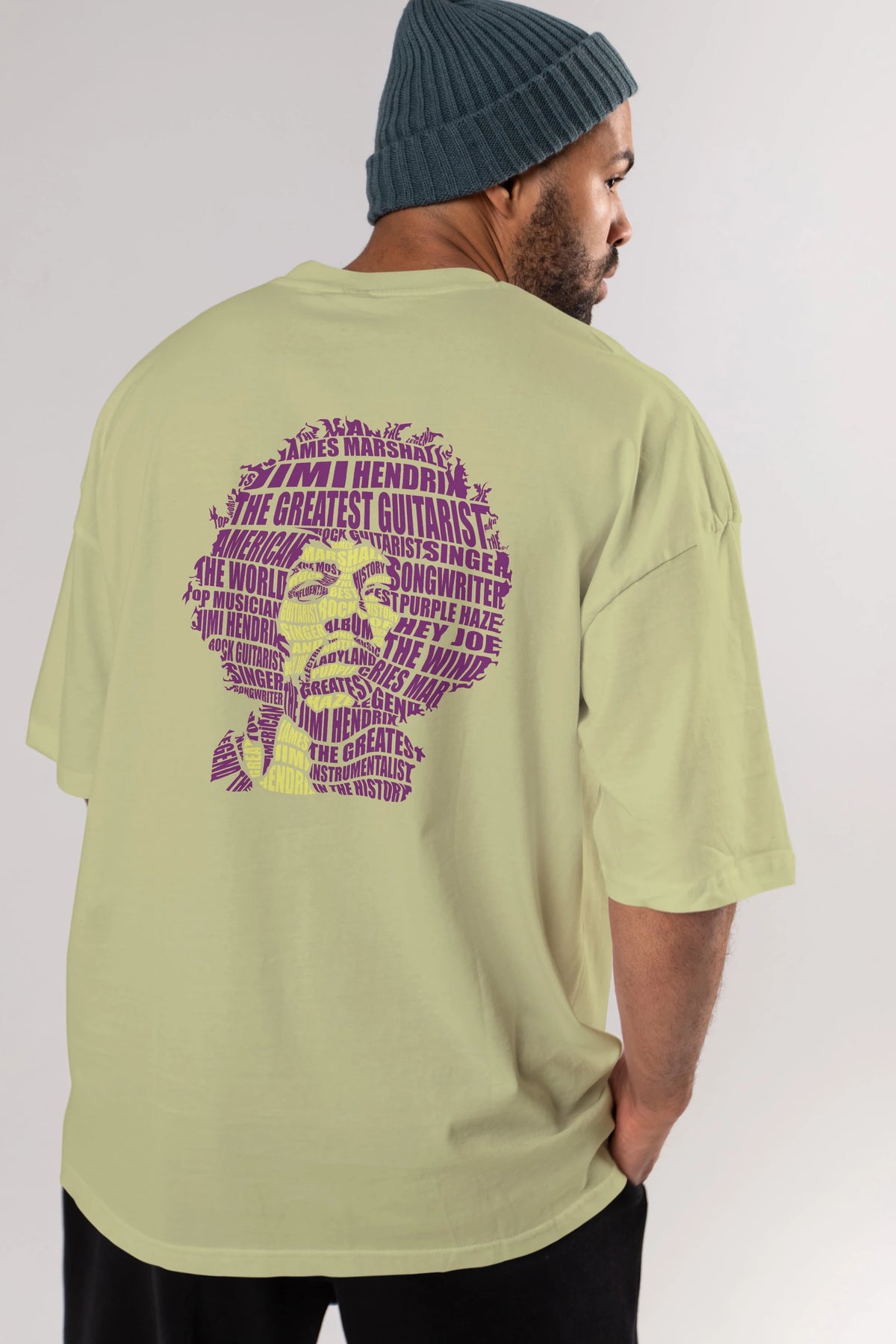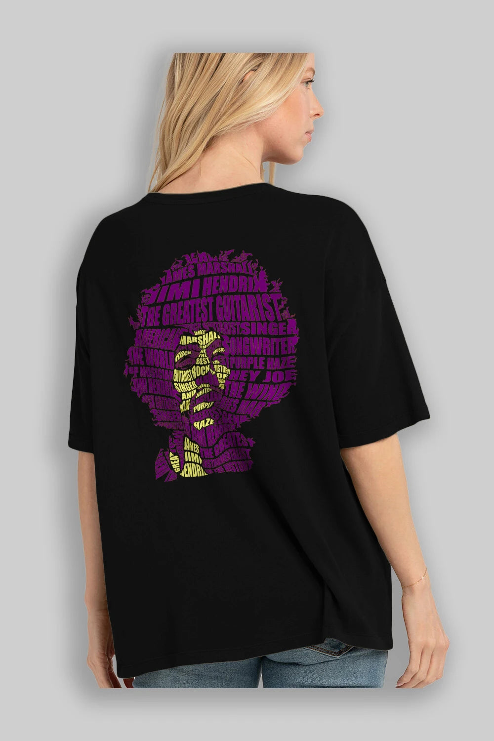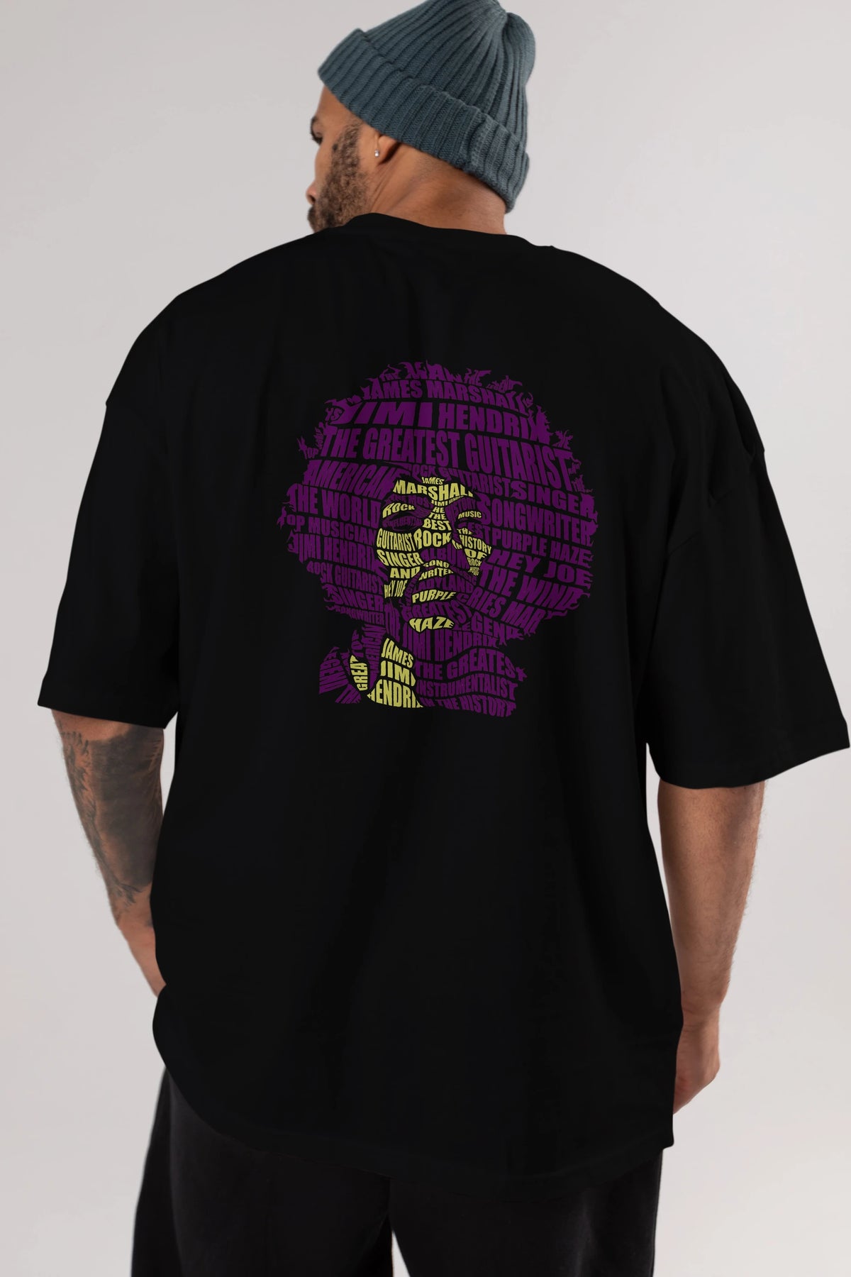 Jimmy Hendrix Calligram Arka Baskılı Oversize t-shirt %100 pamuk Erkek Kadın Unisex