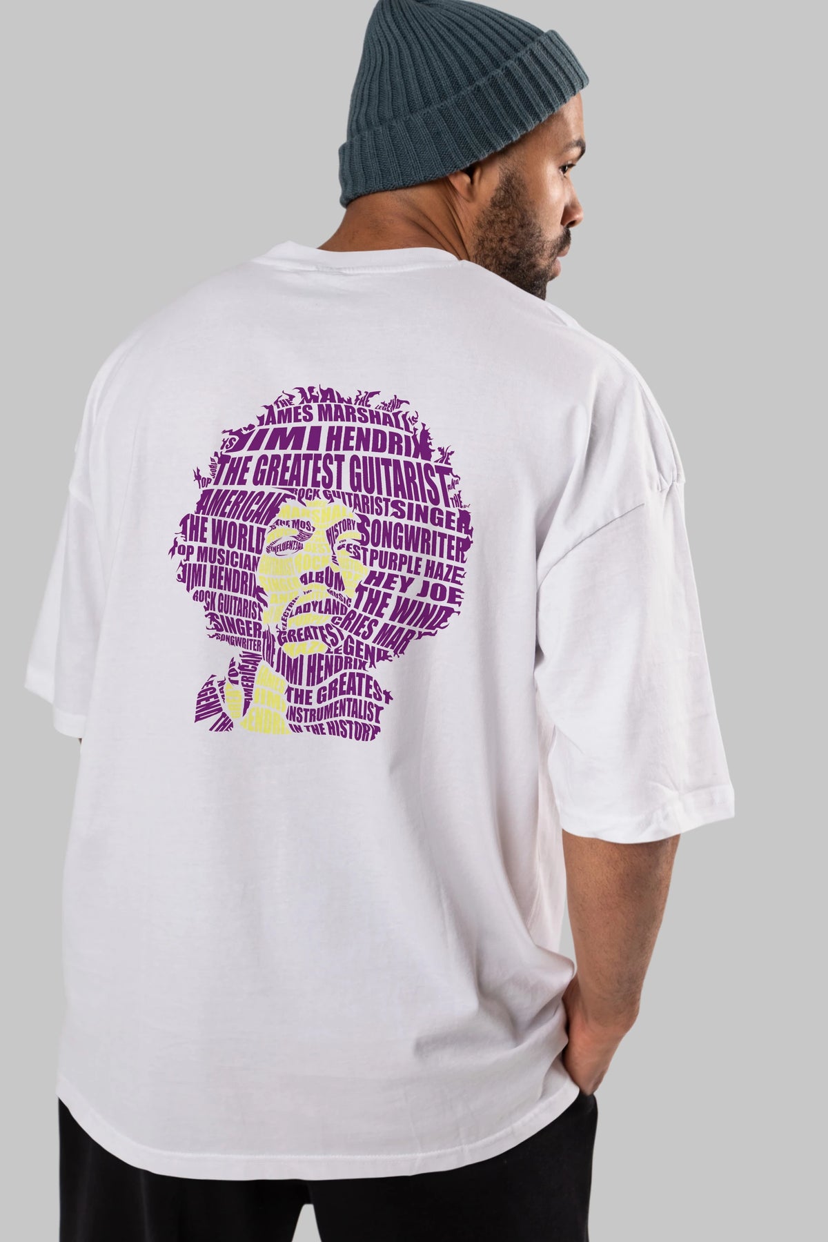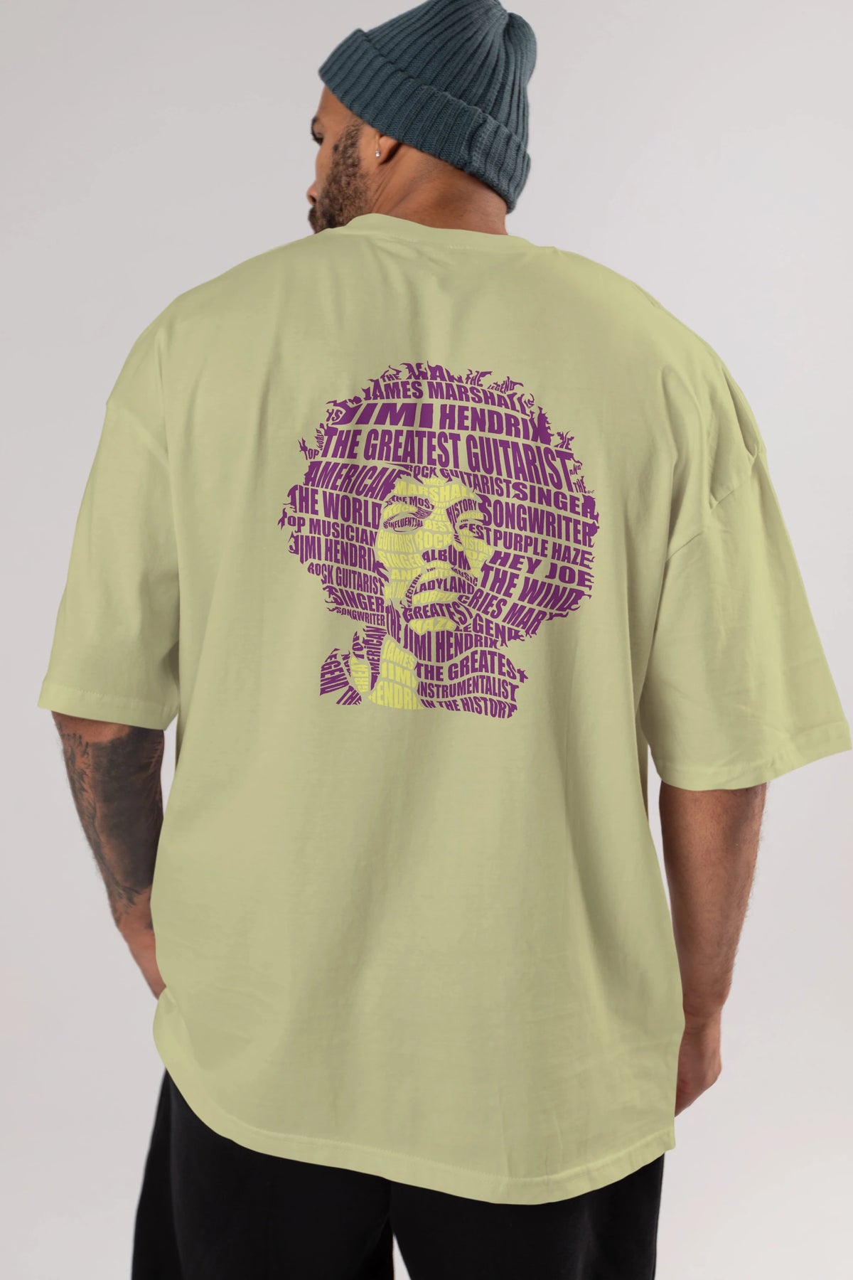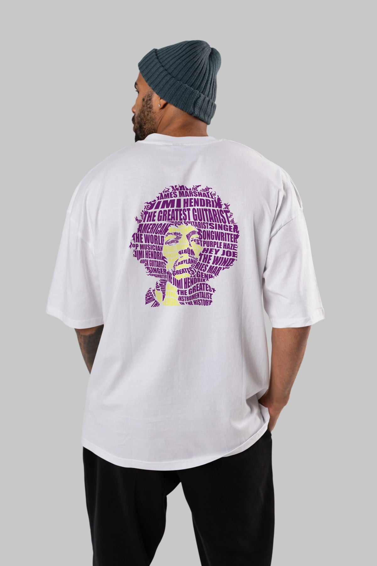 Jimmy Hendrix Calligram Arka Baskılı Oversize t-shirt %100 pamuk Erkek Kadın Unisex