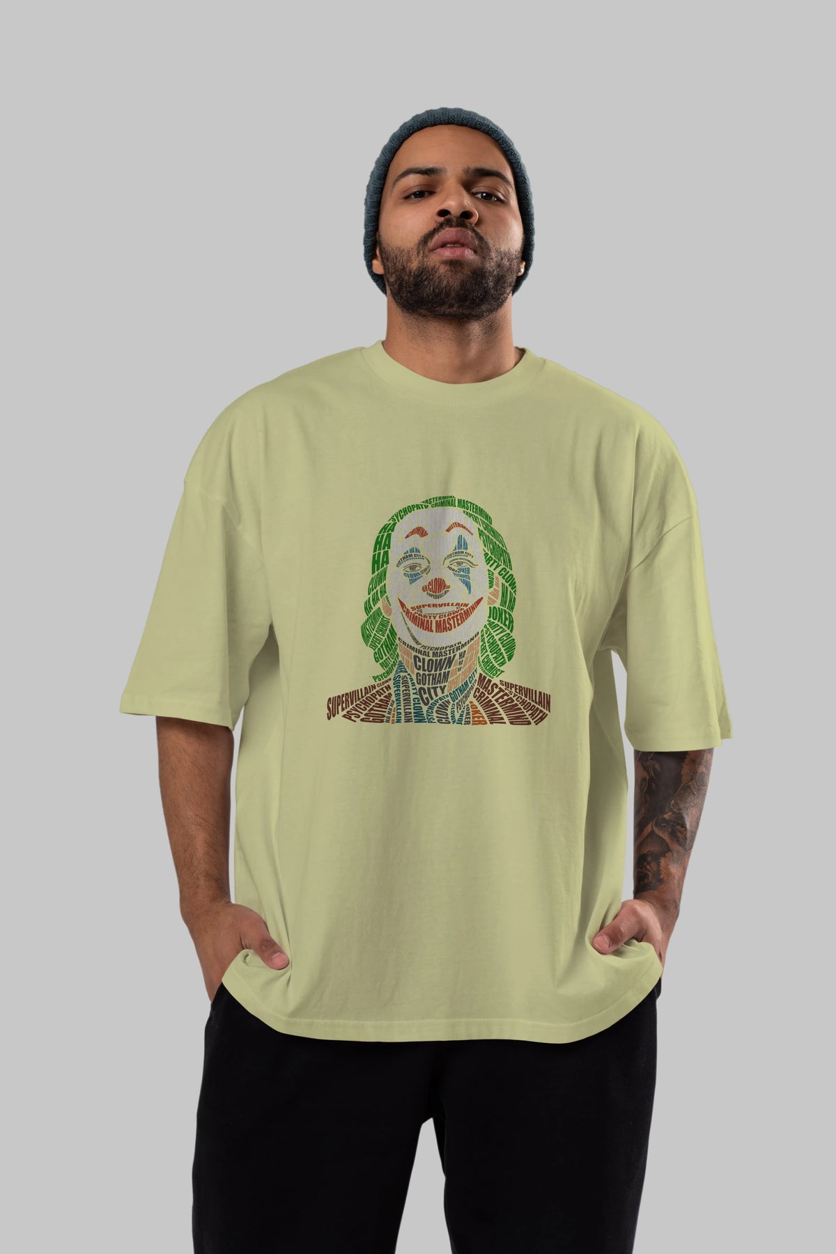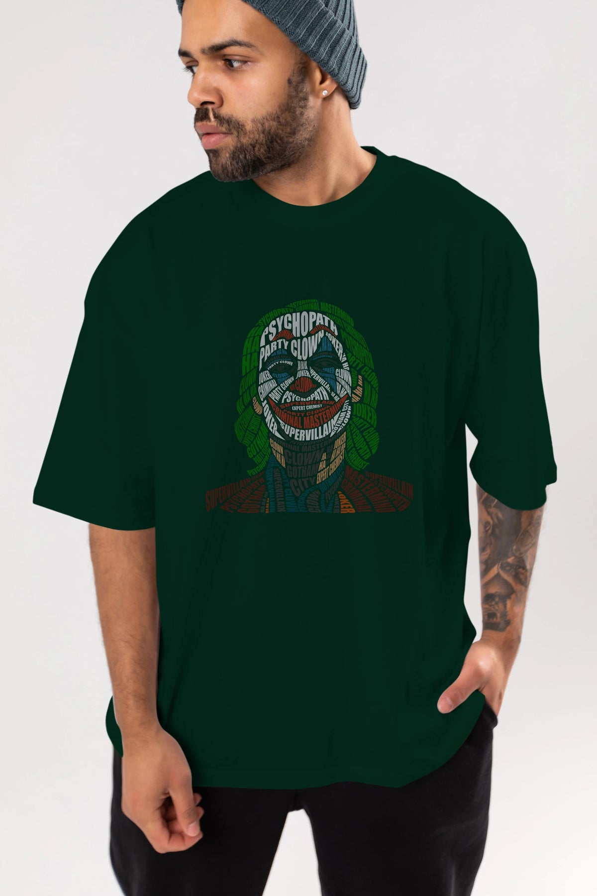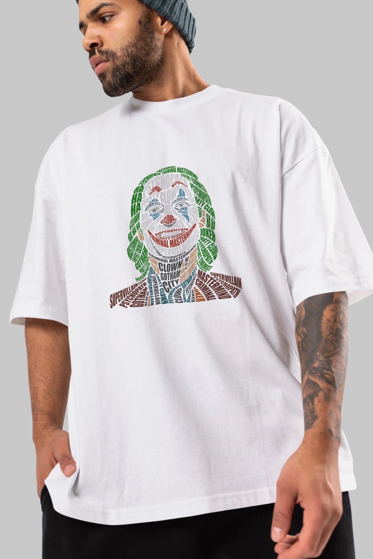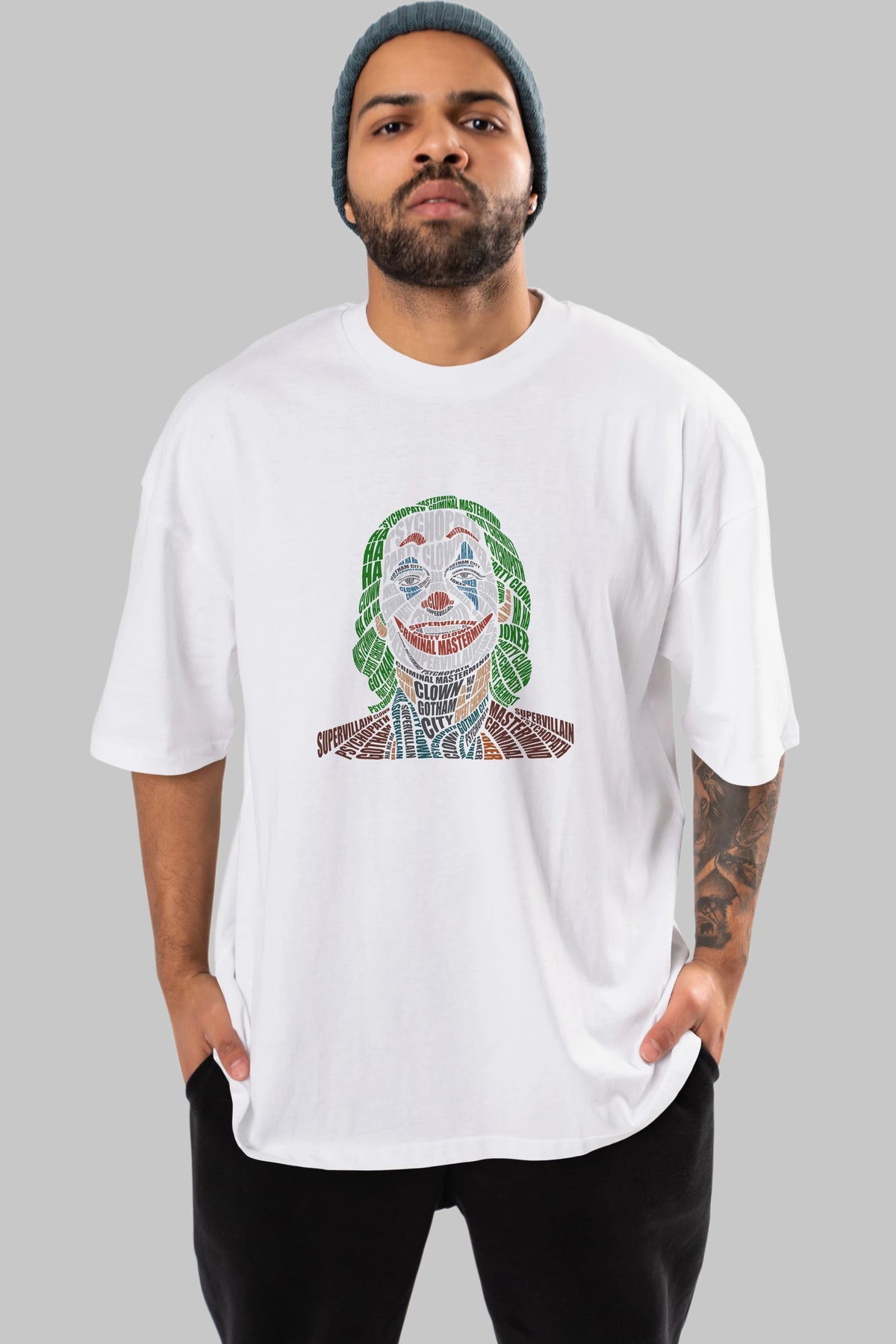 Joker Calligram Ön Baskılı Oversize t-shirt %100 pamuk Erkek Kadın Unisex