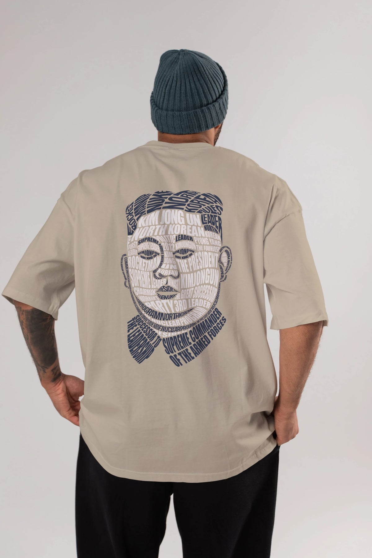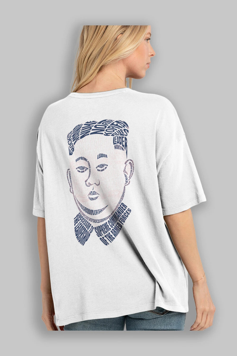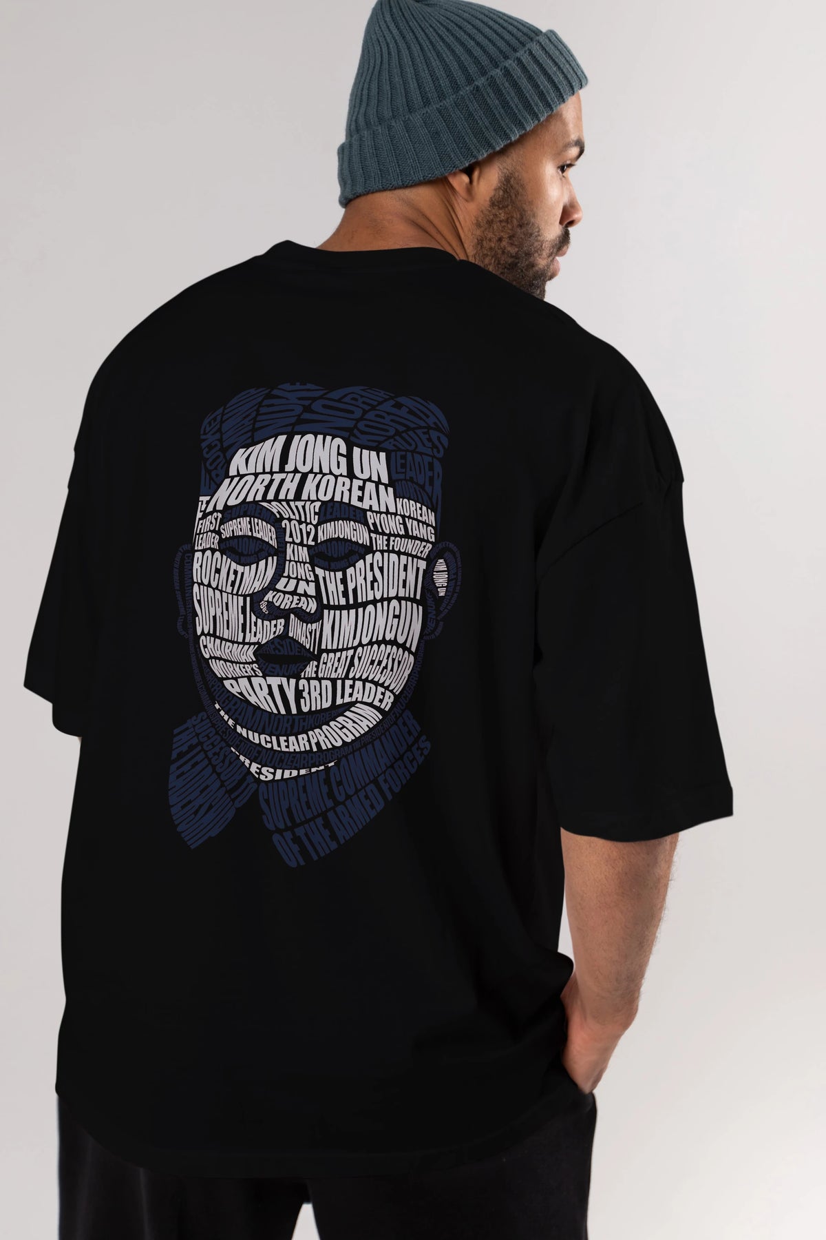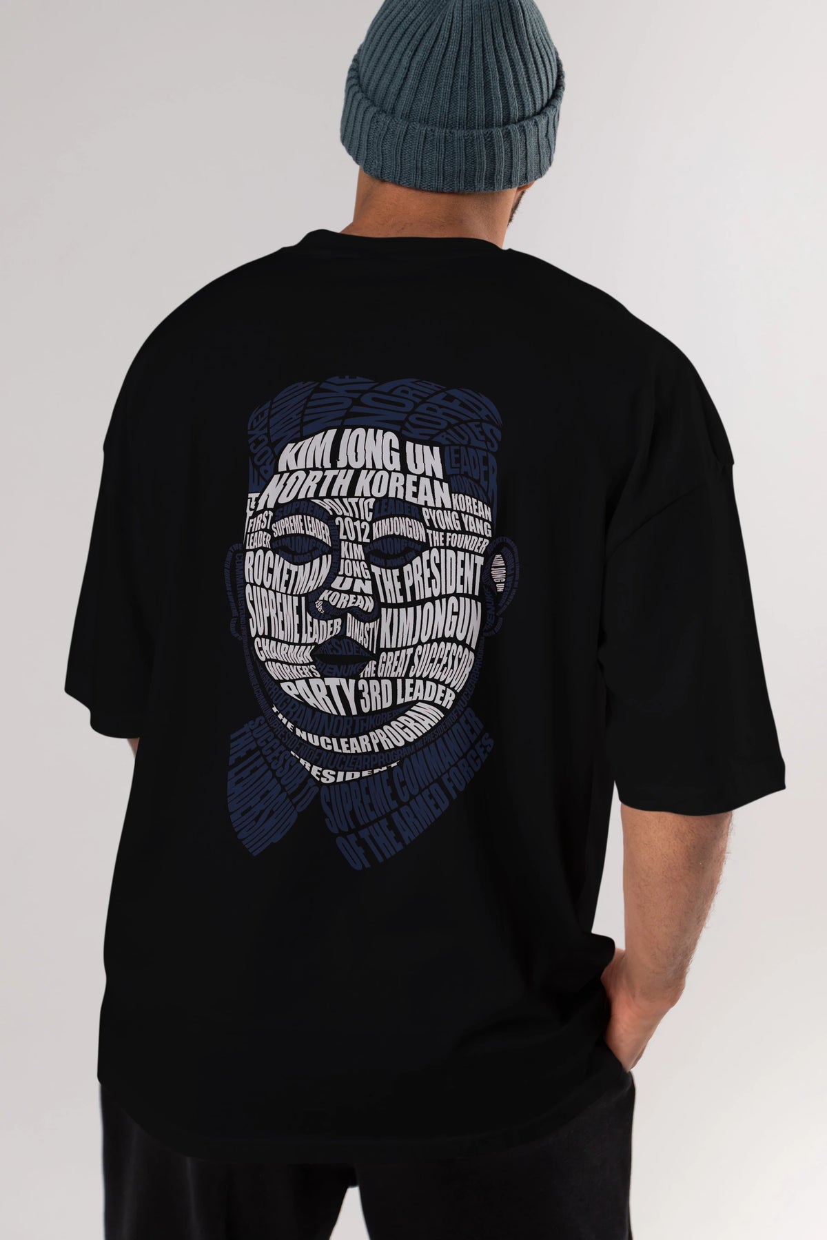 Kim Jong Un Calligram Arka Baskılı Oversize t-shirt %100 pamuk Erkek Kadın Unisex