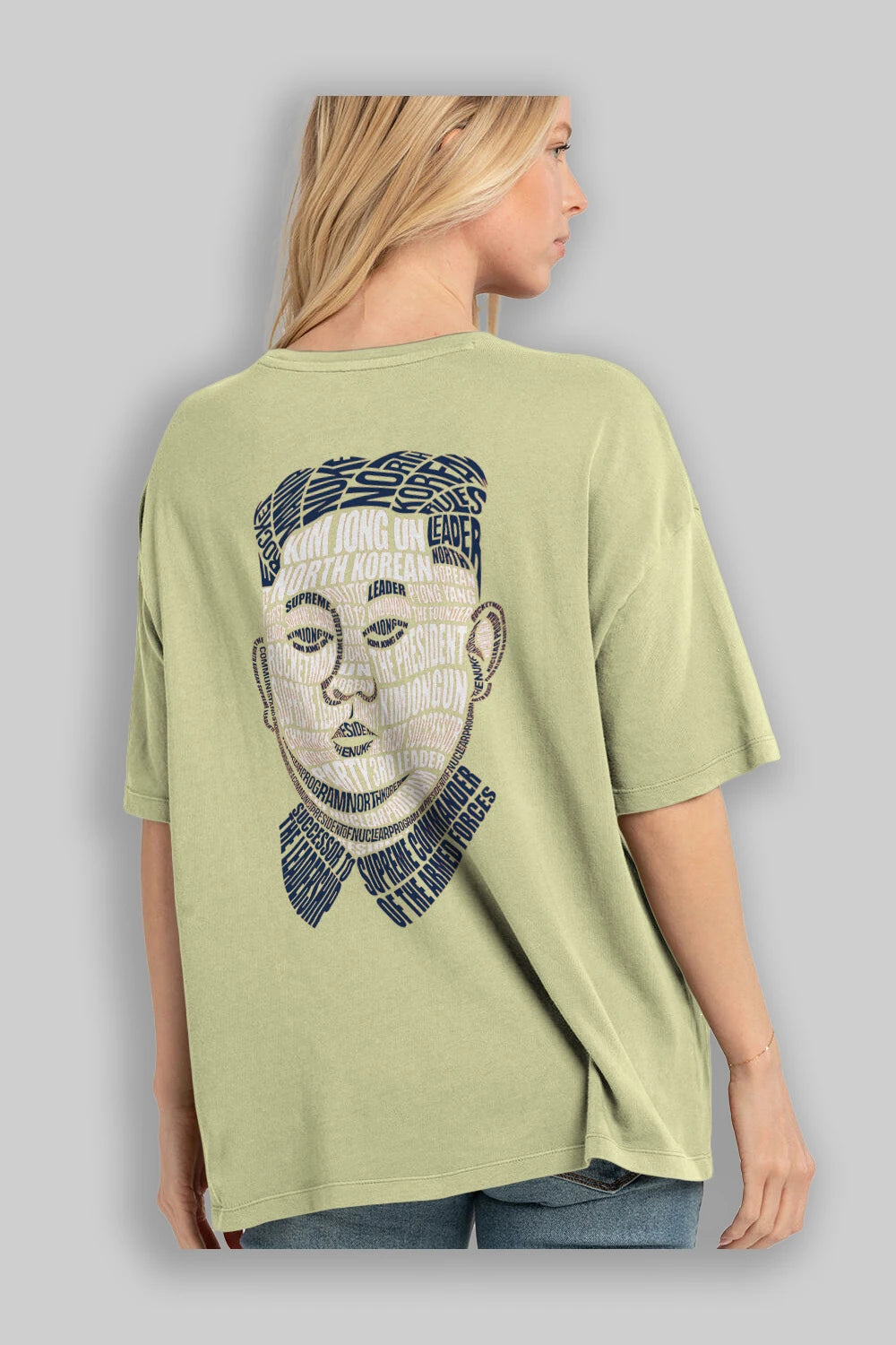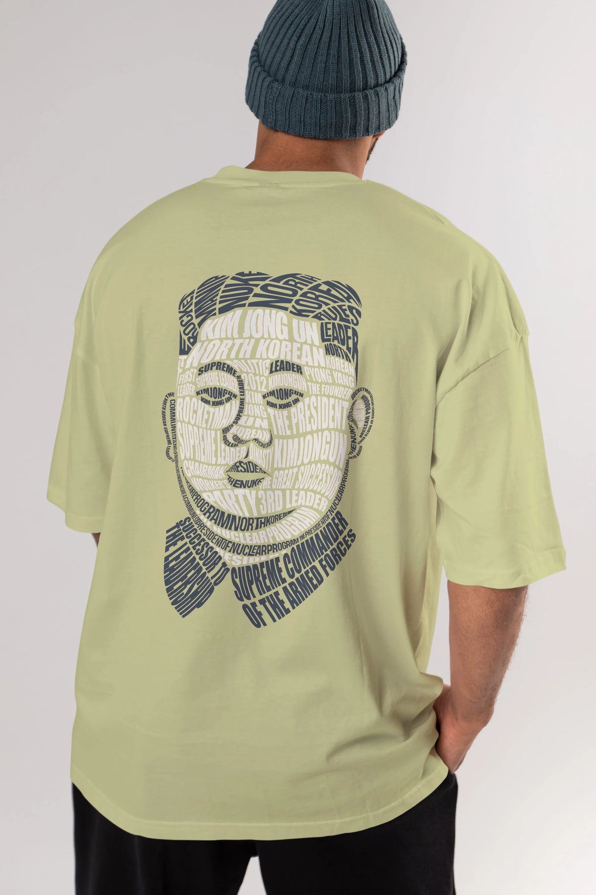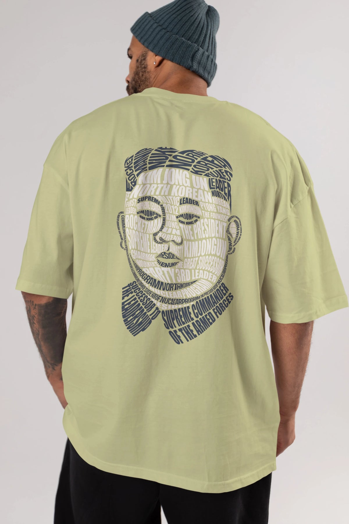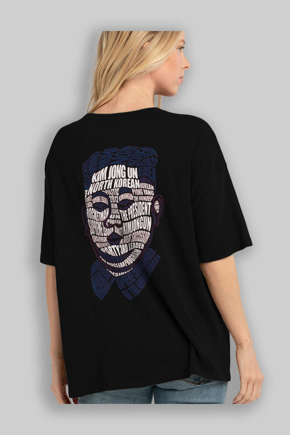 Kim Jong Un Calligram Arka Baskılı Oversize t-shirt %100 pamuk Erkek Kadın Unisex