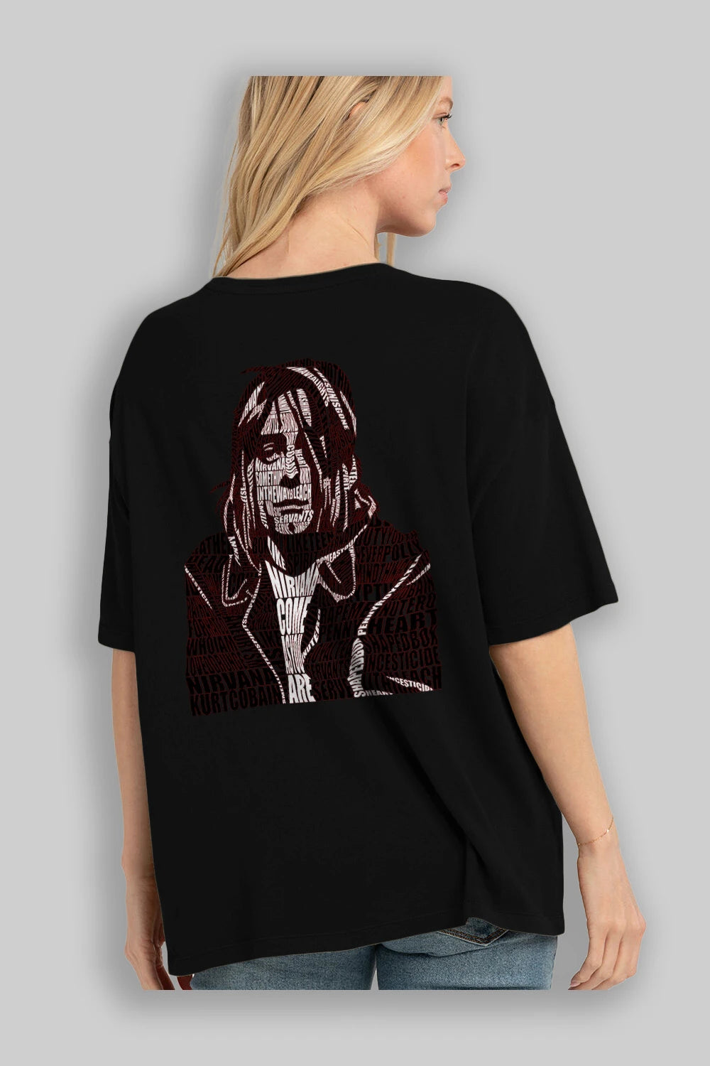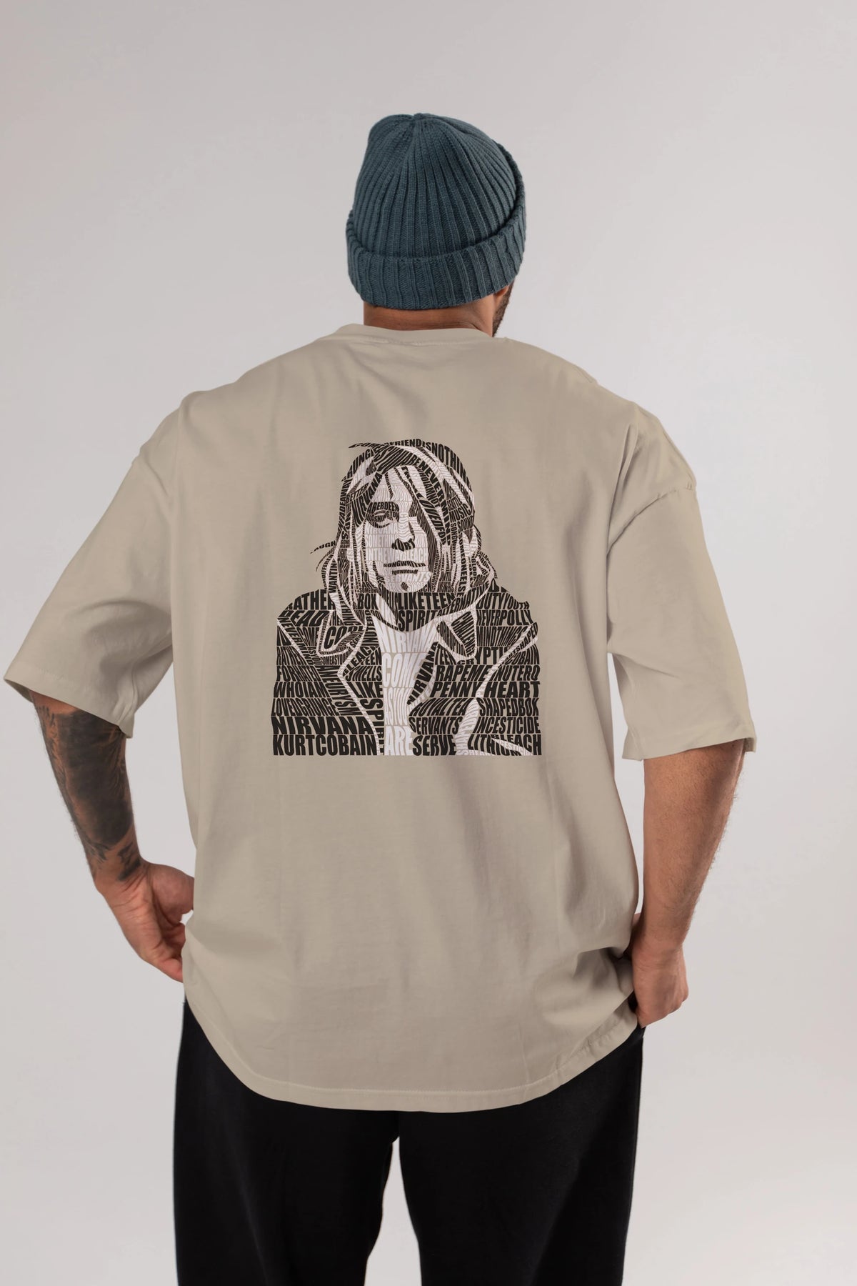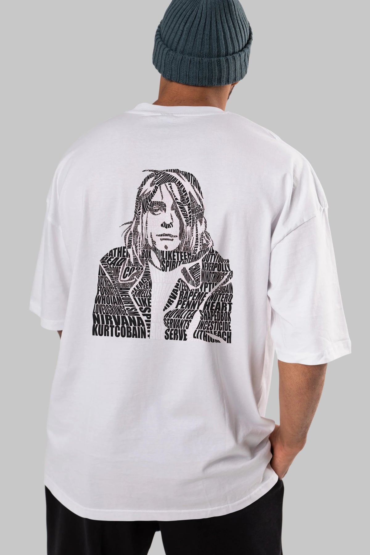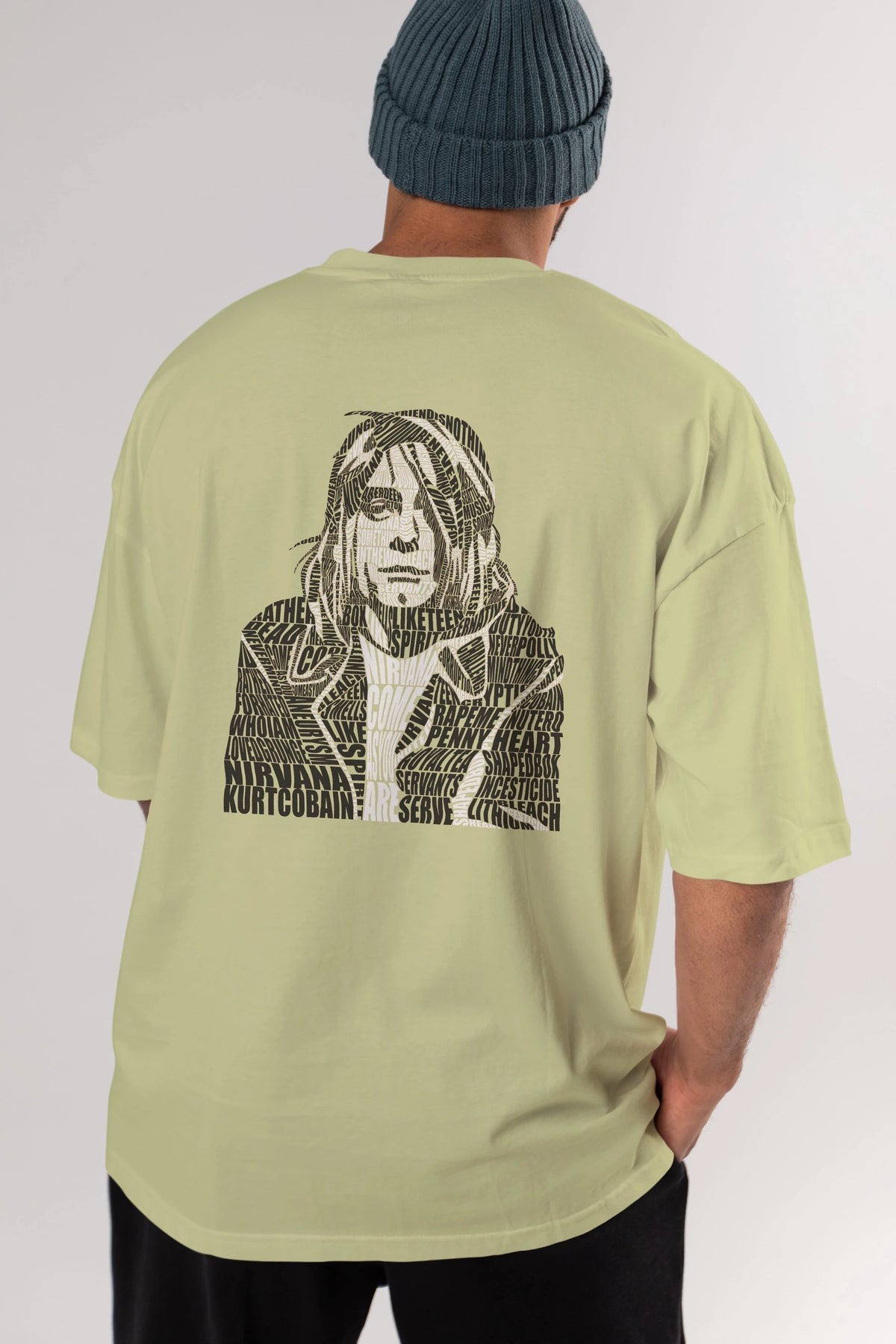 Kurt Cobain Calligram Arka Baskılı Oversize t-shirt %100 pamuk Erkek Kadın Unisex