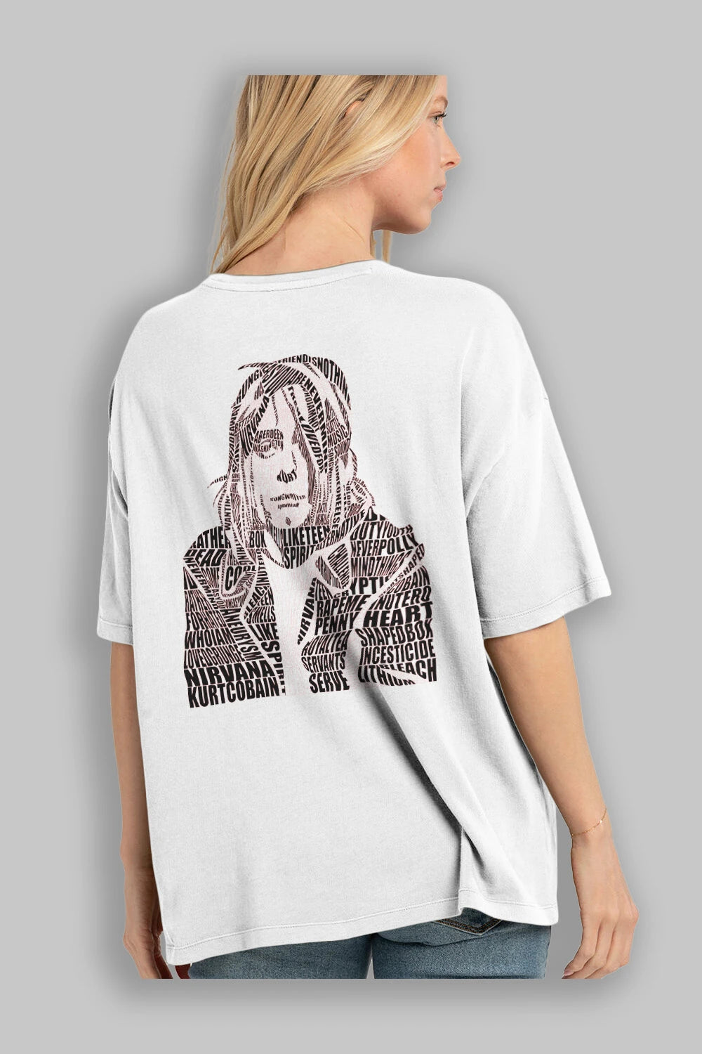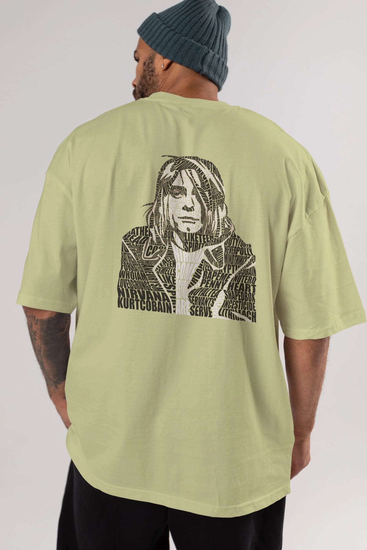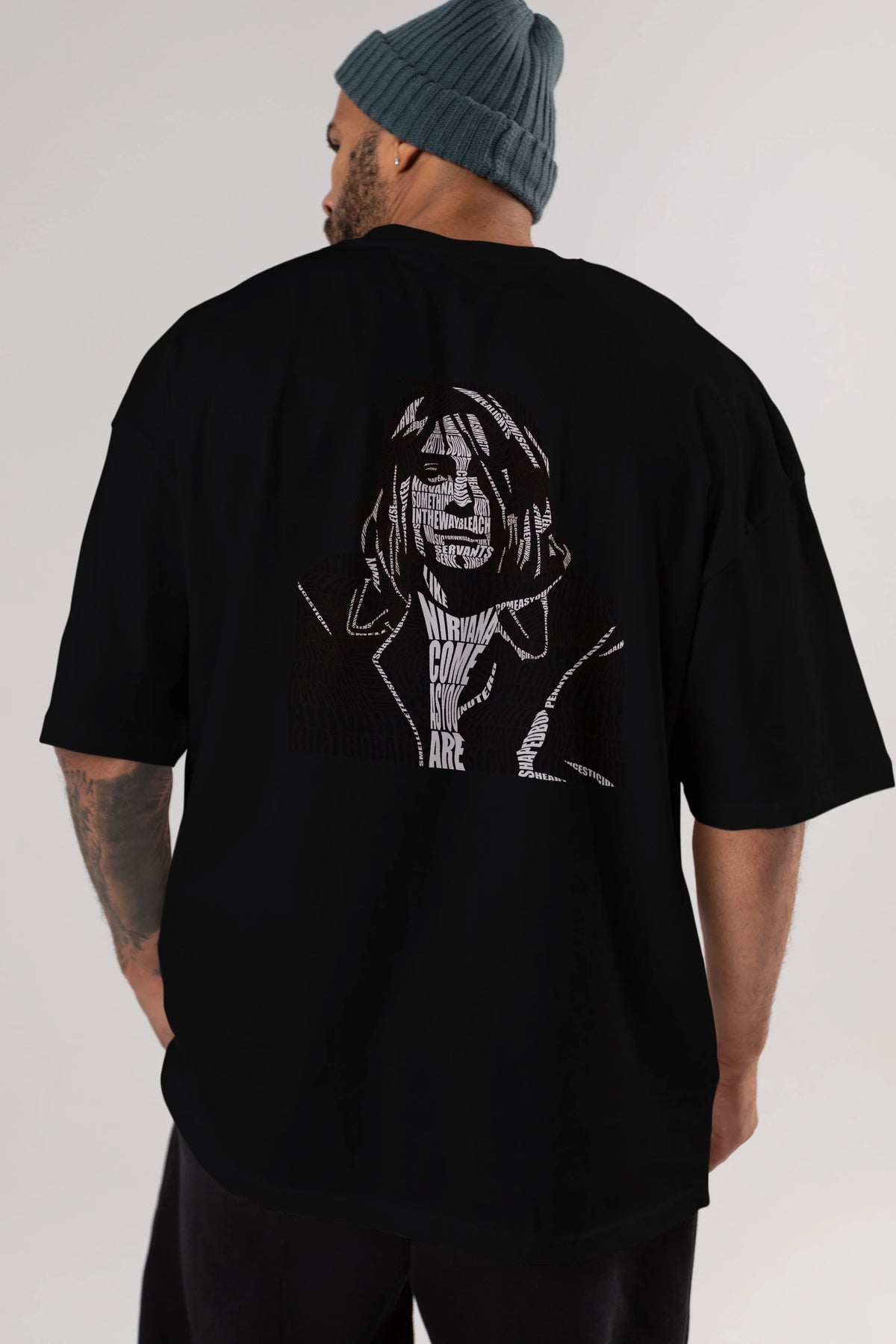 Kurt Cobain Calligram Arka Baskılı Oversize t-shirt %100 pamuk Erkek Kadın Unisex