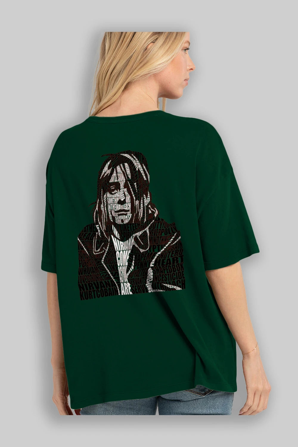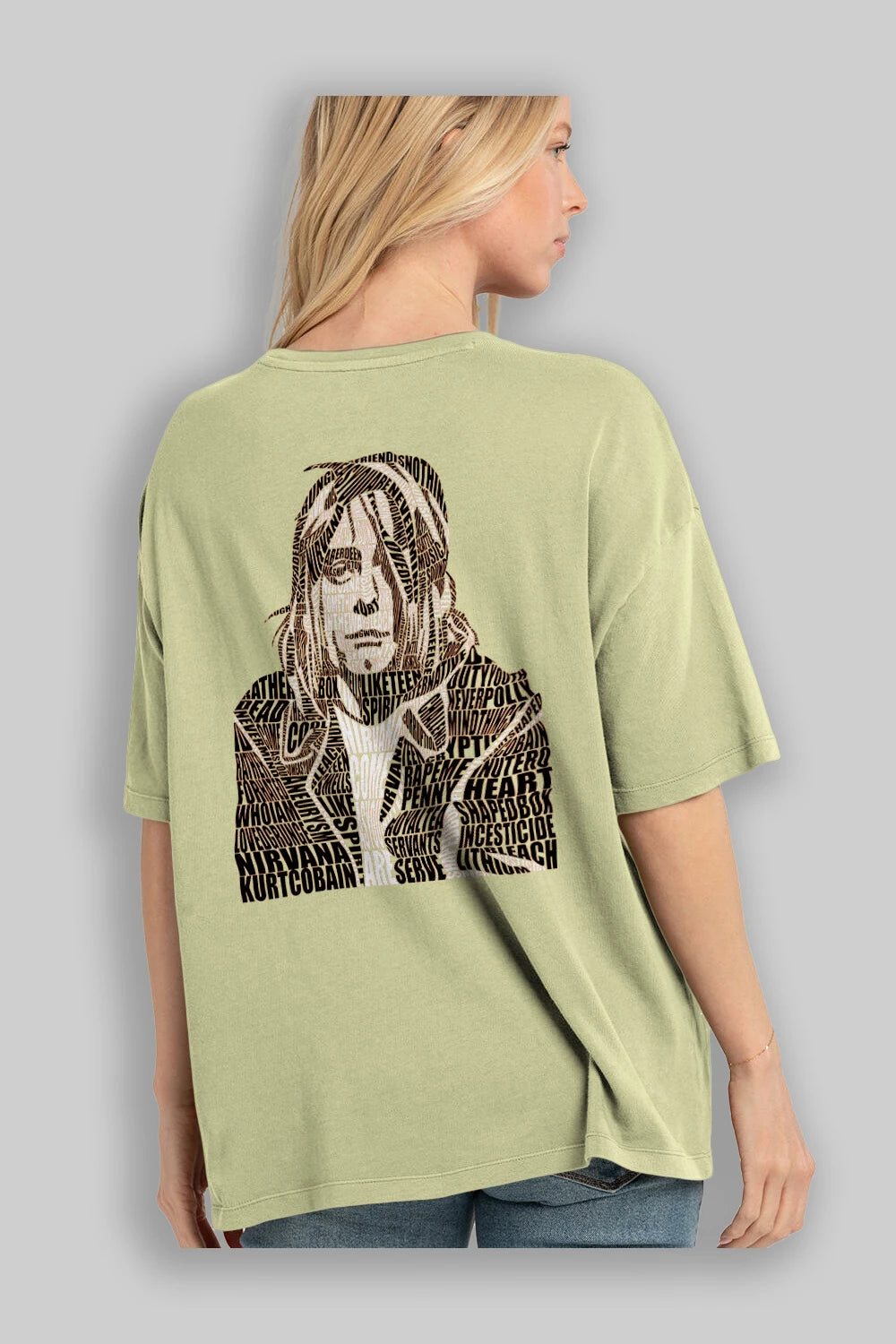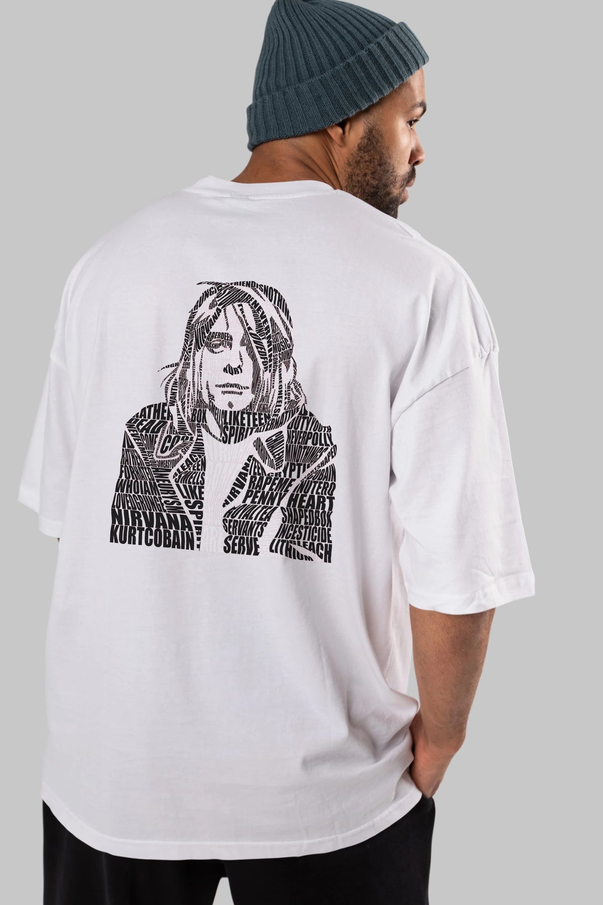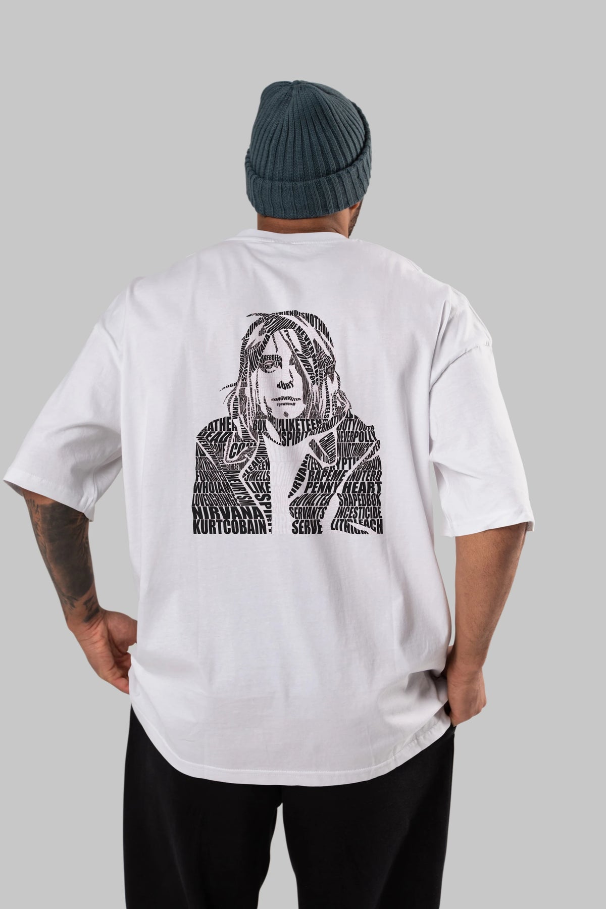 Kurt Cobain Calligram Arka Baskılı Oversize t-shirt %100 pamuk Erkek Kadın Unisex
