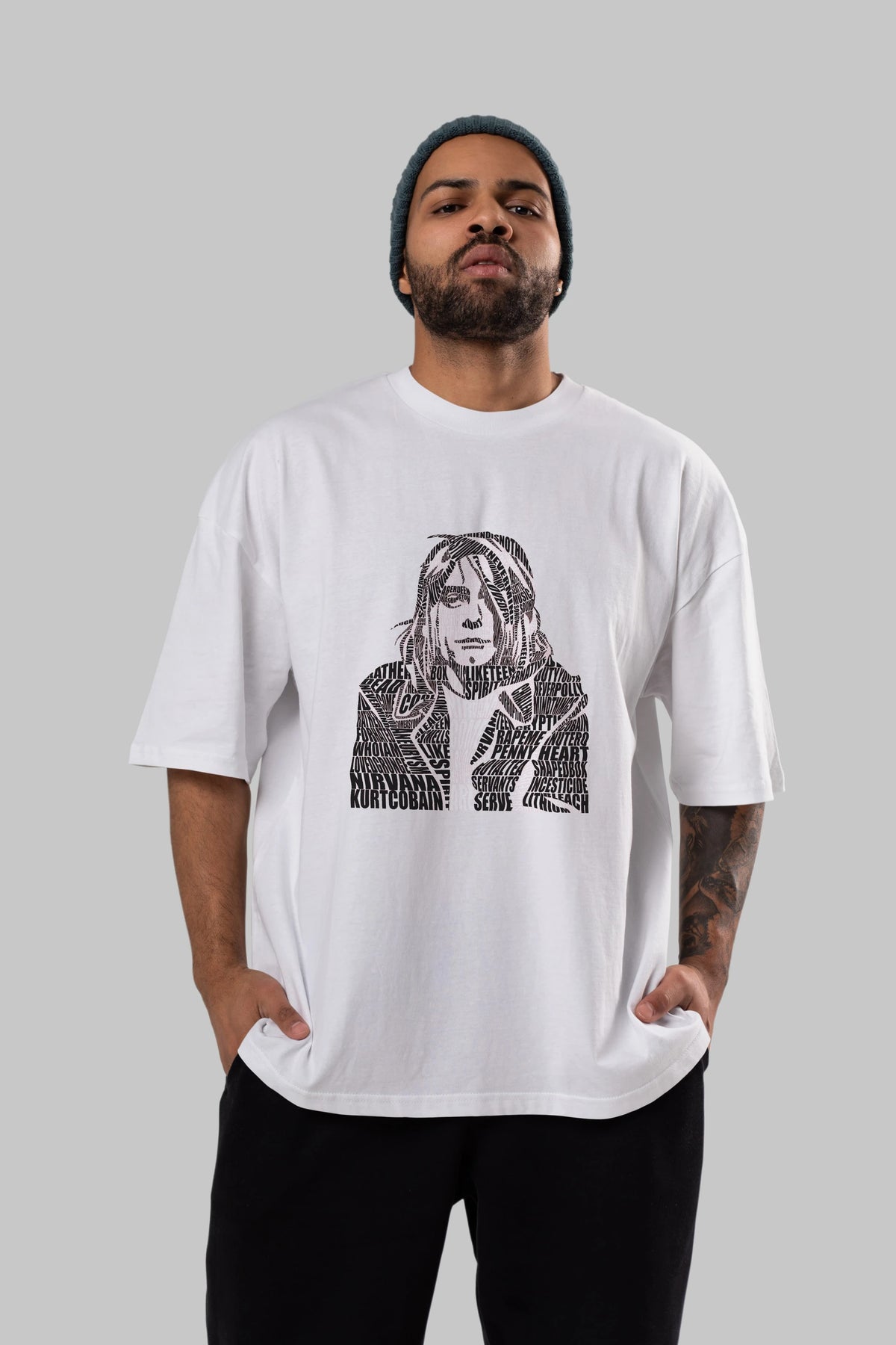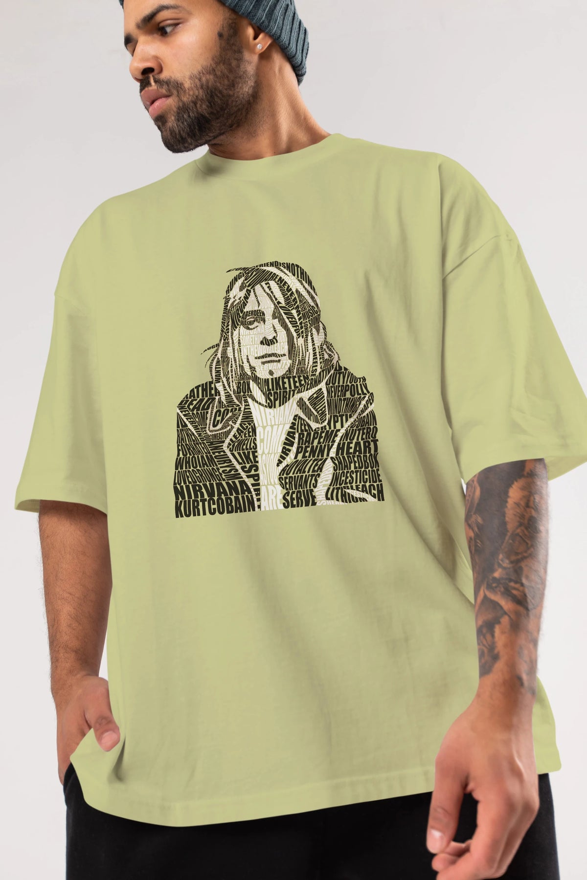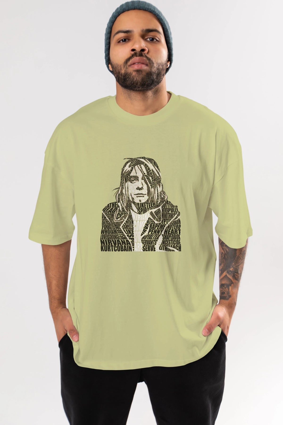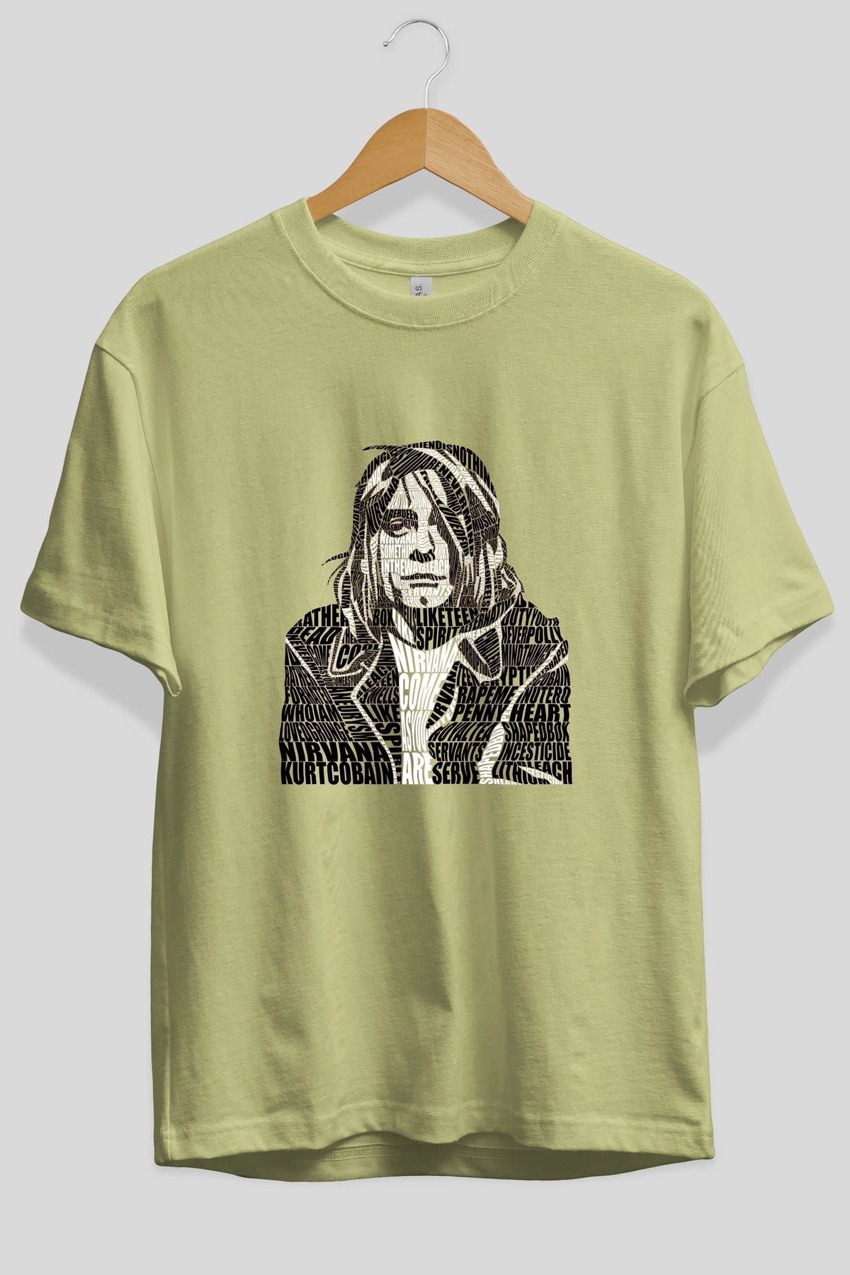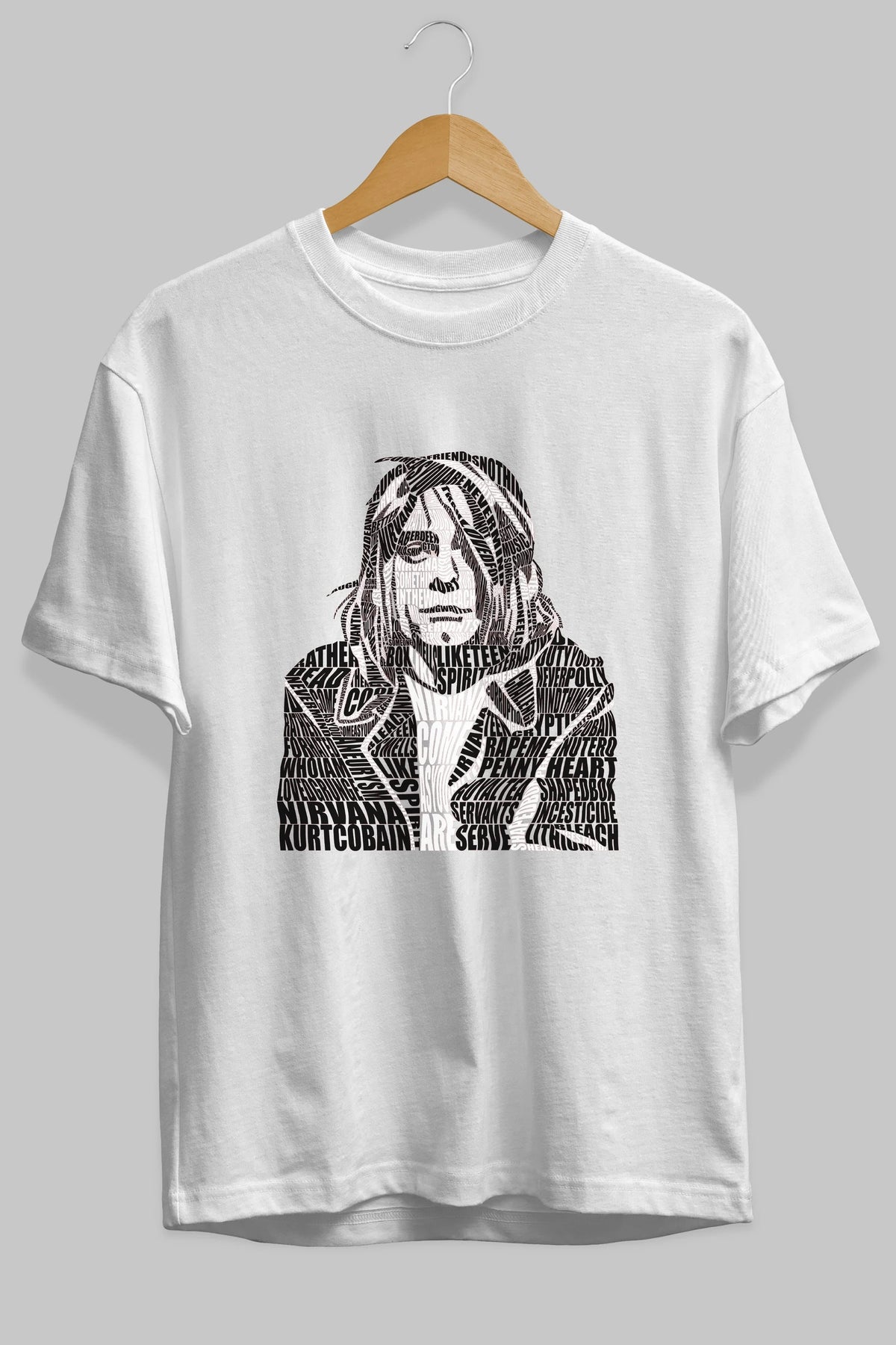 Kurt Cobain Calligram Ön Baskılı Oversize t-shirt %100 pamuk Erkek Kadın Unisex