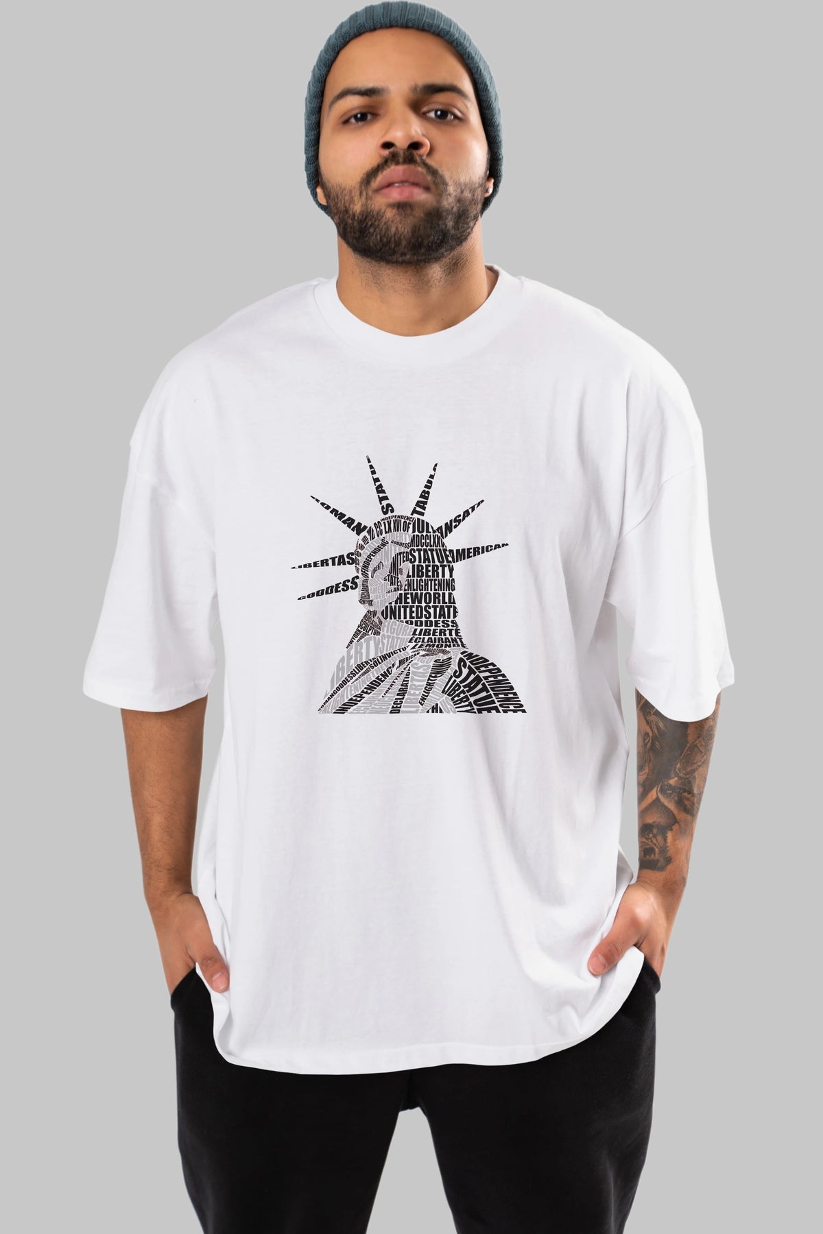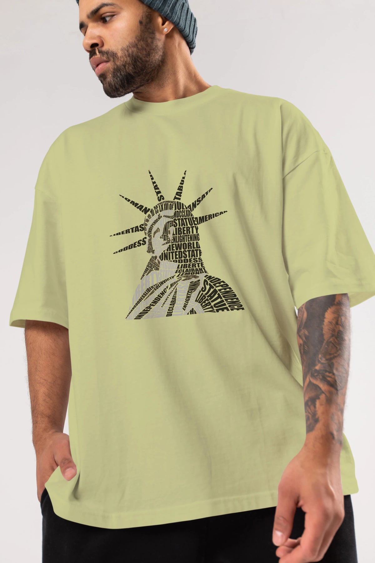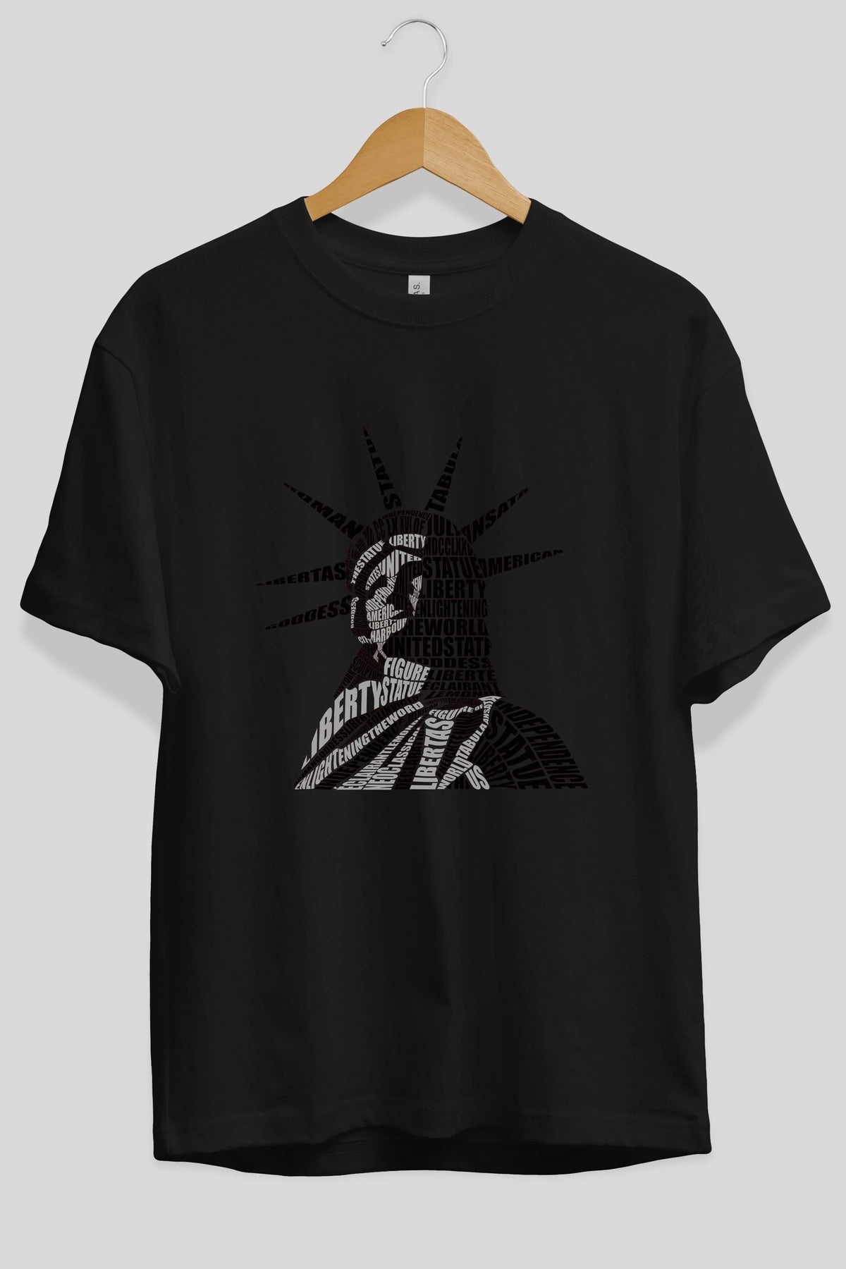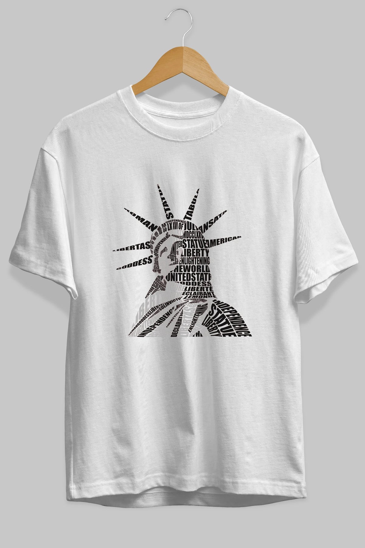 Liberty Statue Calligram Ön Baskılı Oversize t-shirt %100 pamuk Erkek Kadın Unisex