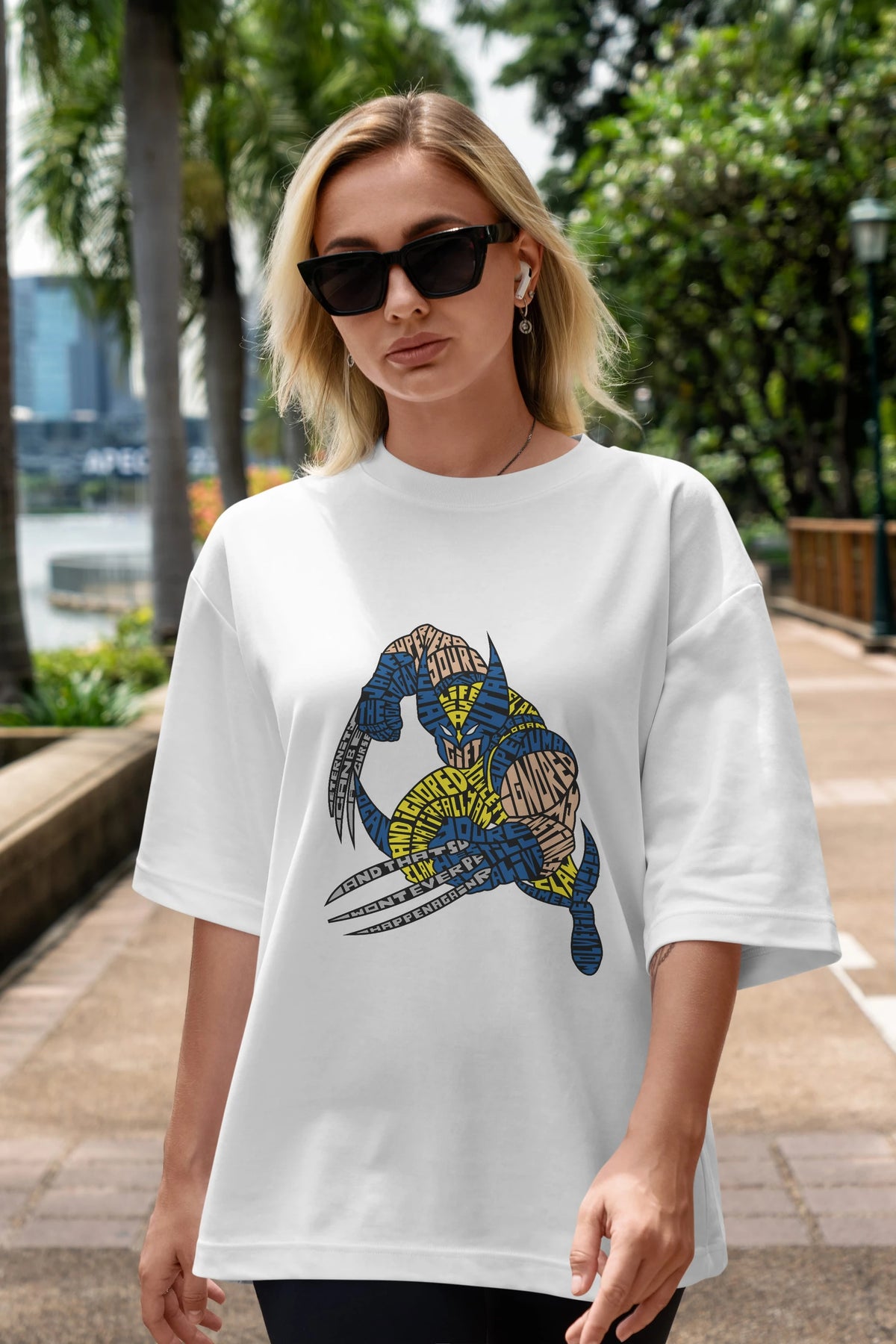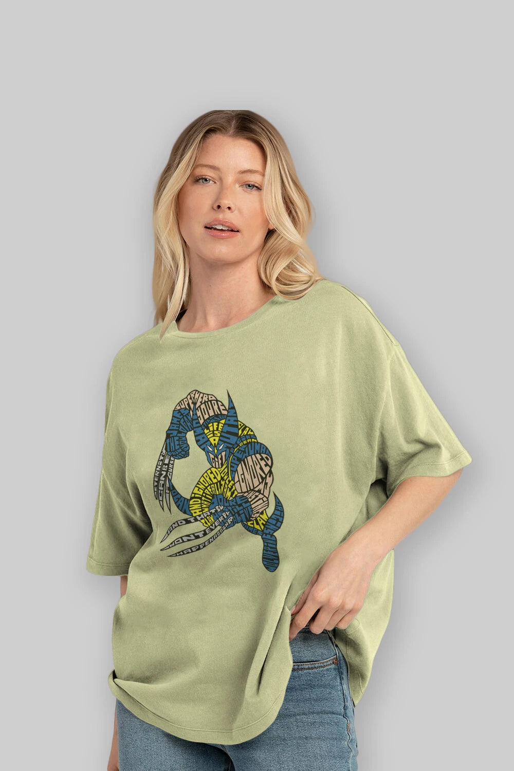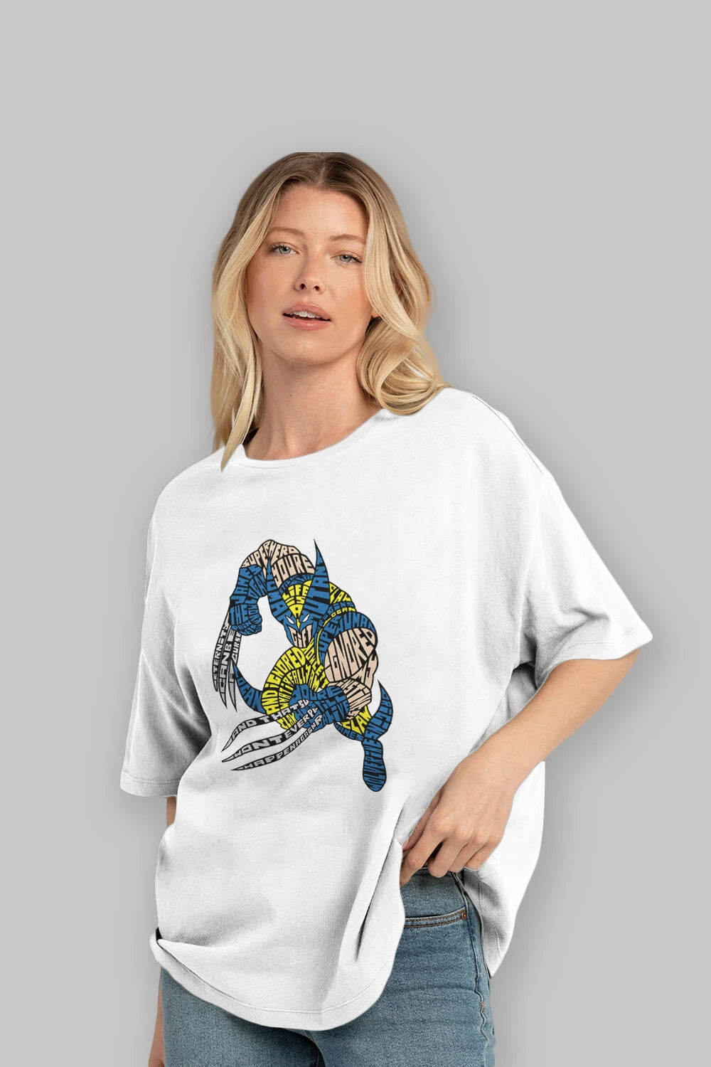 Hem erkekler hem de kadınlar için uygun, taze, modern bir baskıya sahip baskılı oversize t-shirt.