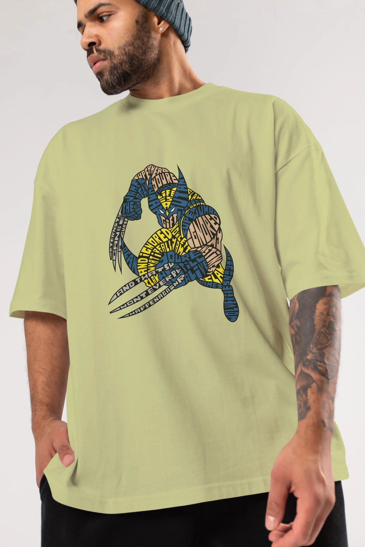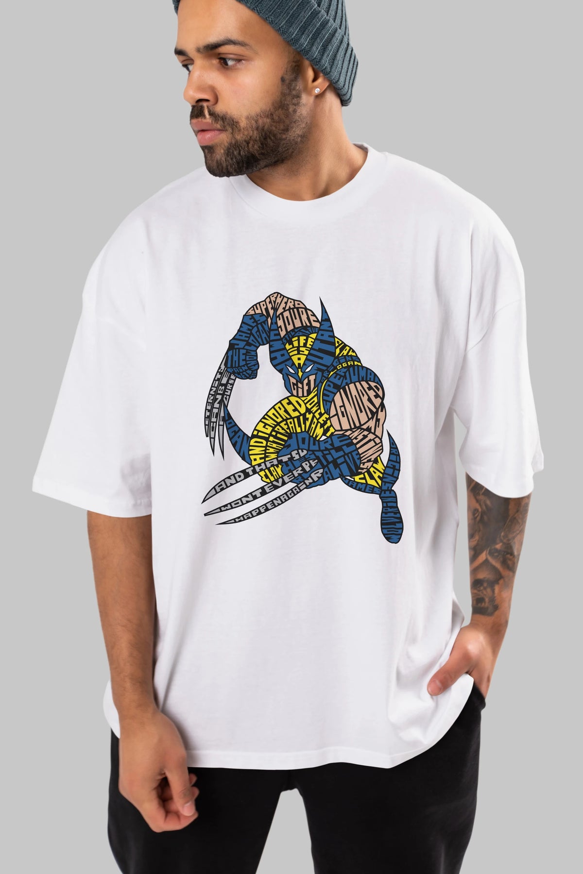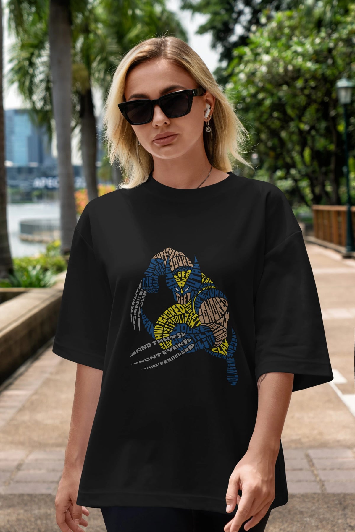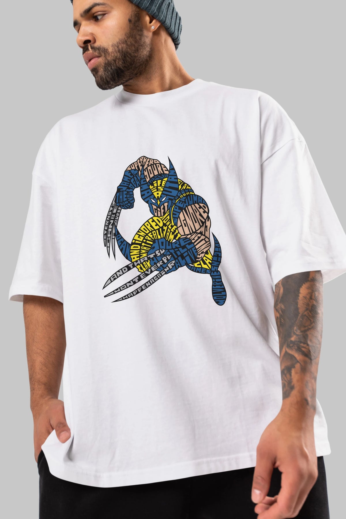 Hem erkekler hem de kadınlar için uygun, taze, modern bir baskıya sahip baskılı oversize t-shirt.