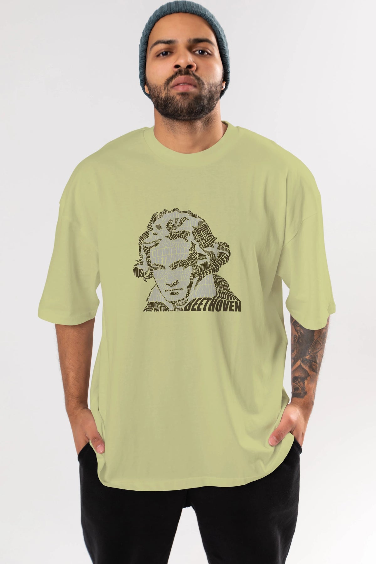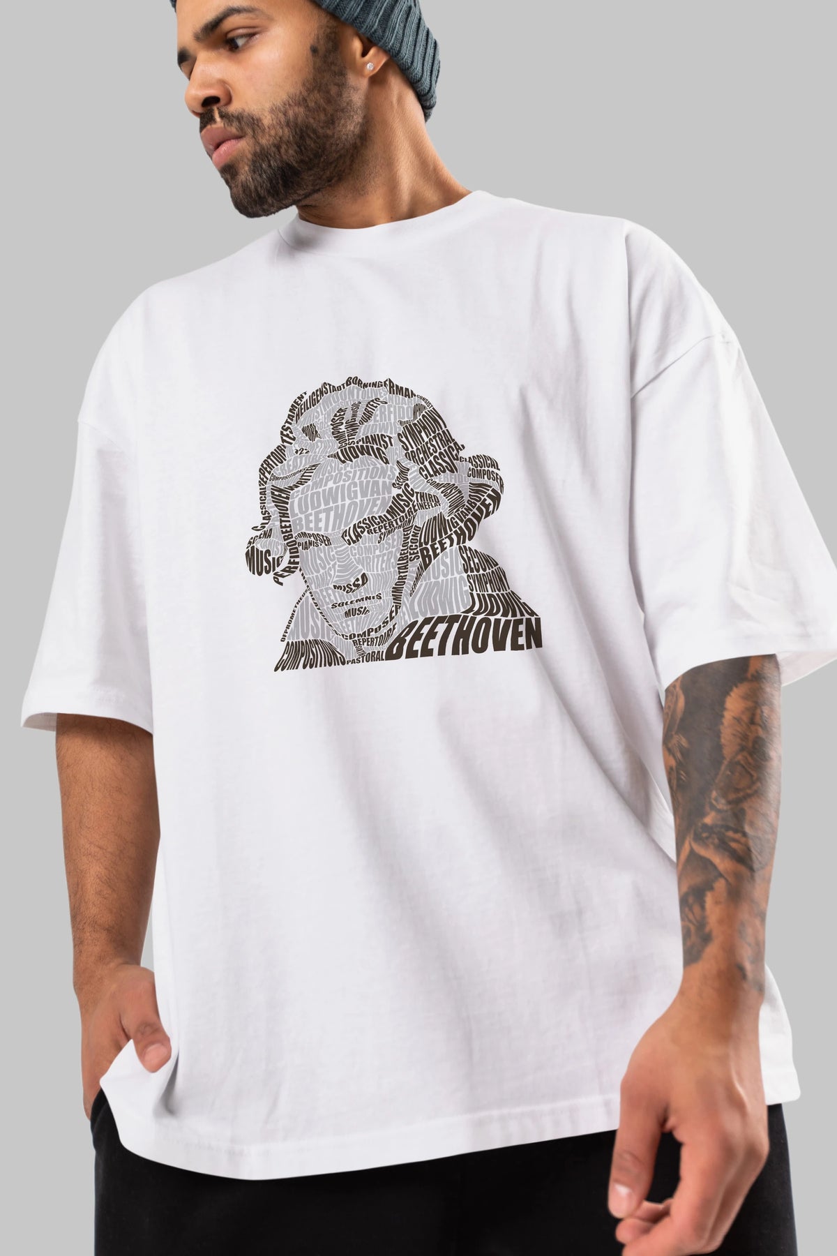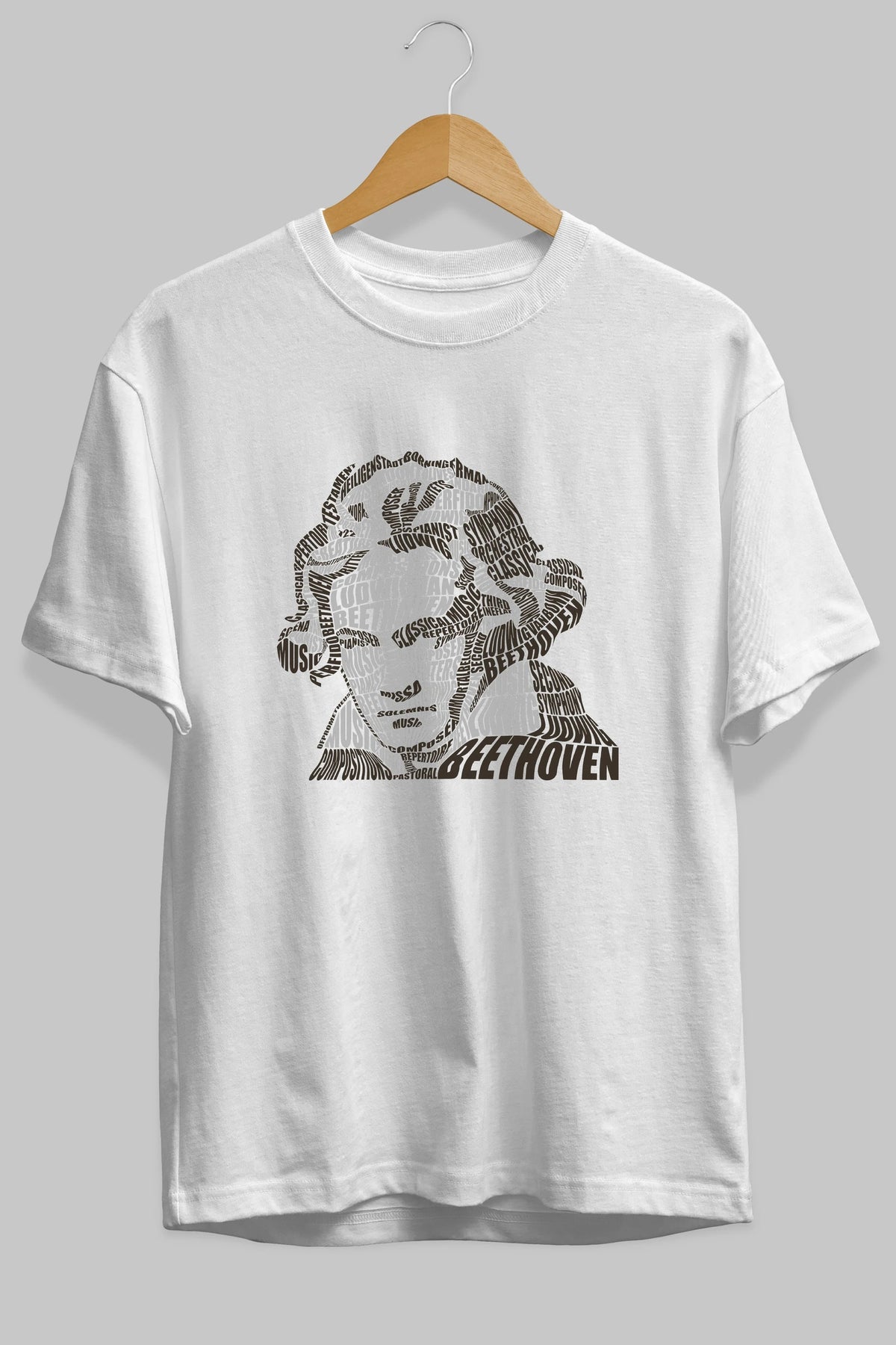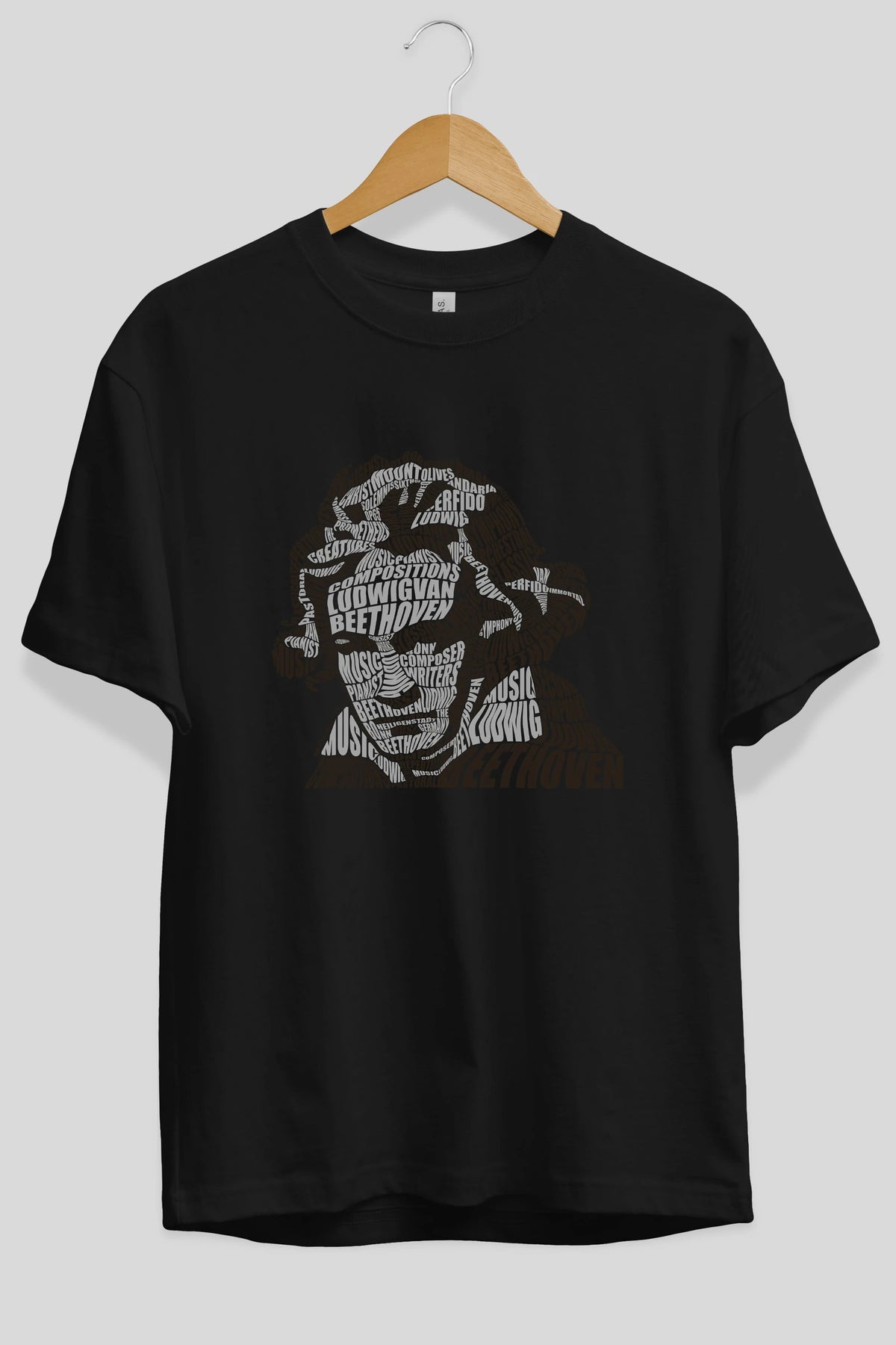 Ludwig van Beethoven Calligram Ön Baskılı Oversize t-shirt %100 pamuk Erkek Kadın Unisex