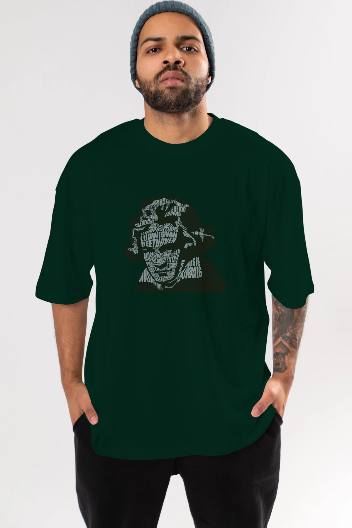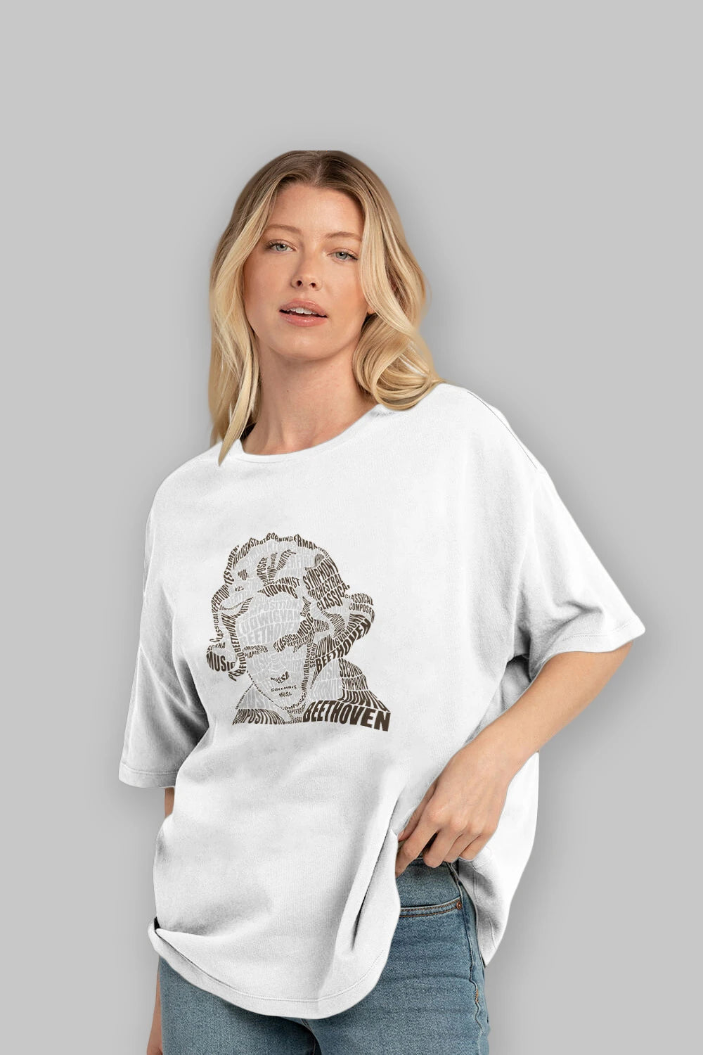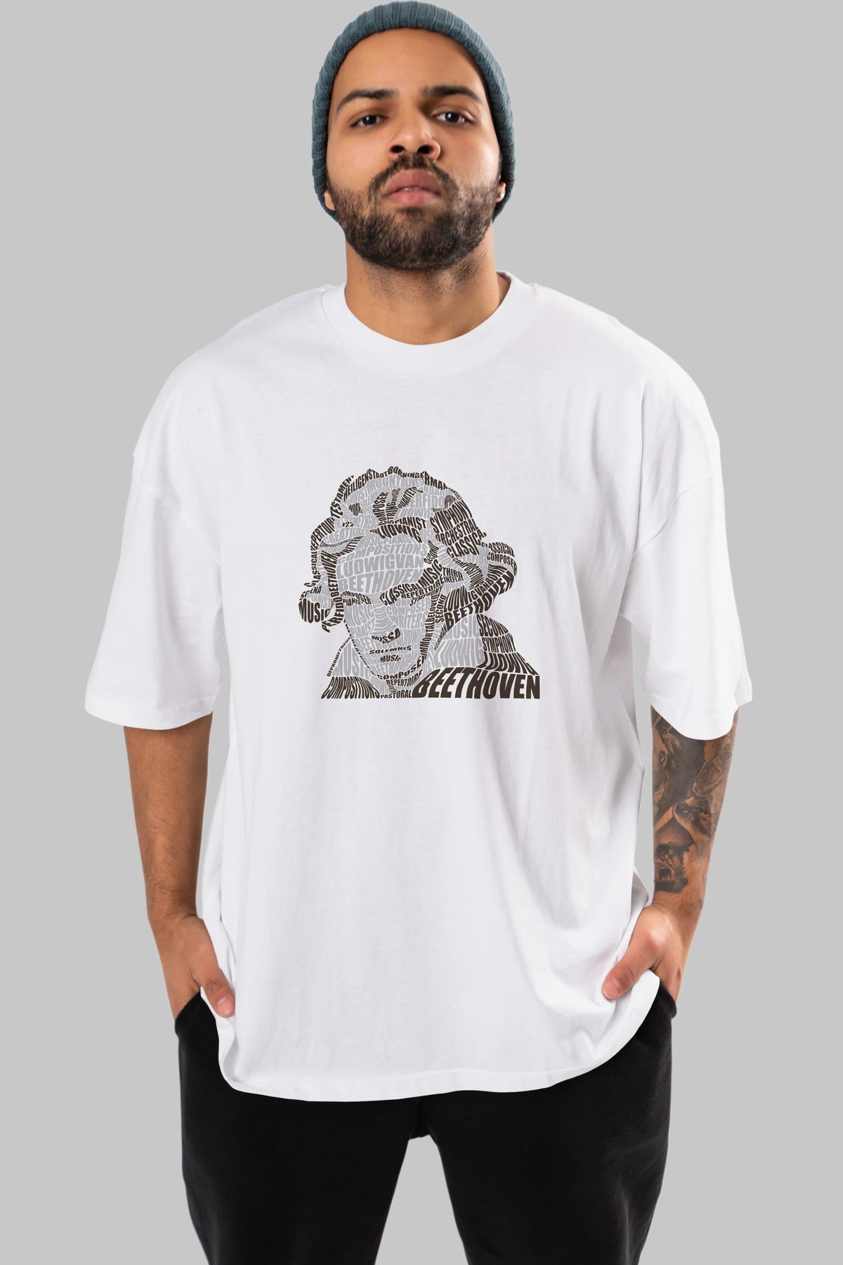 Ludwig van Beethoven Calligram Ön Baskılı Oversize t-shirt %100 pamuk Erkek Kadın Unisex