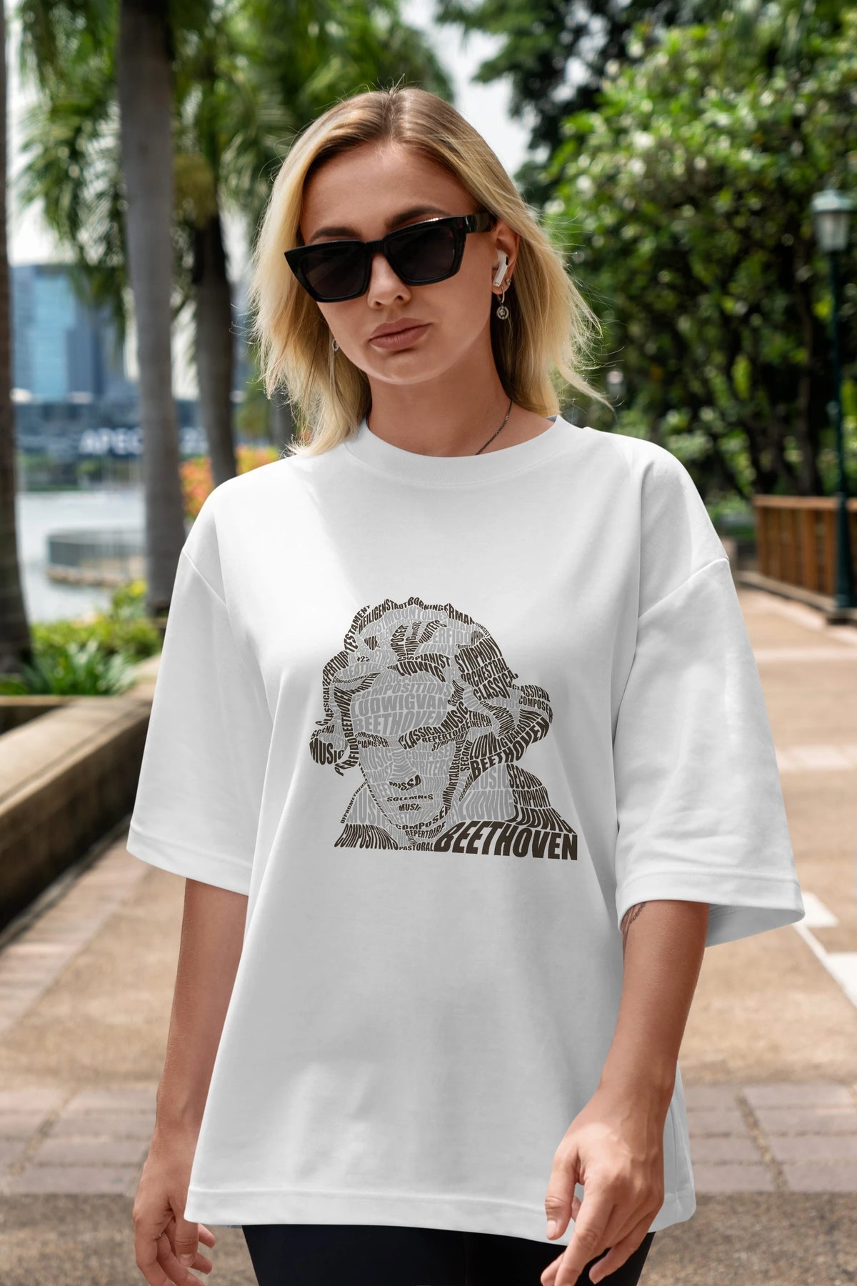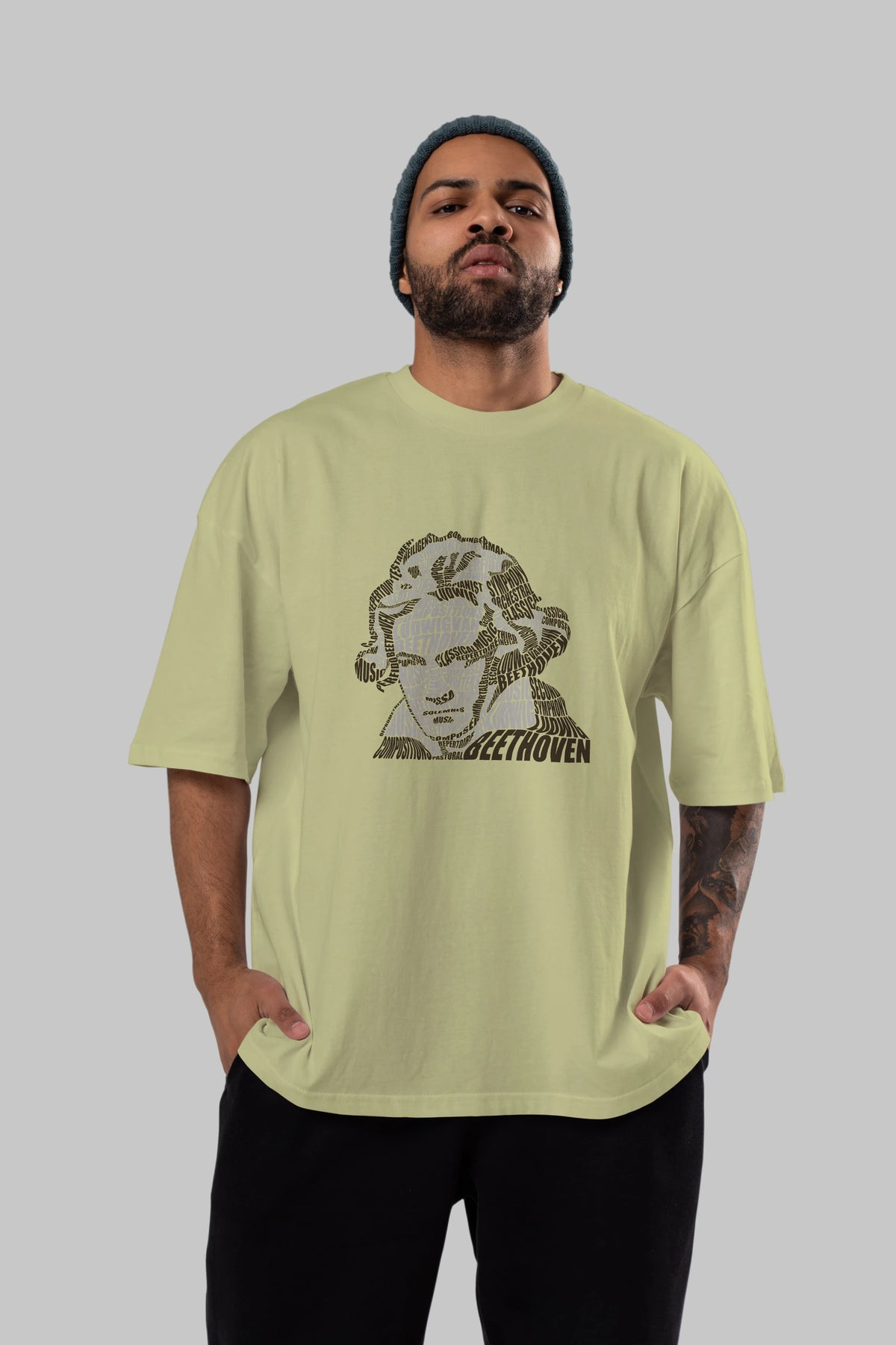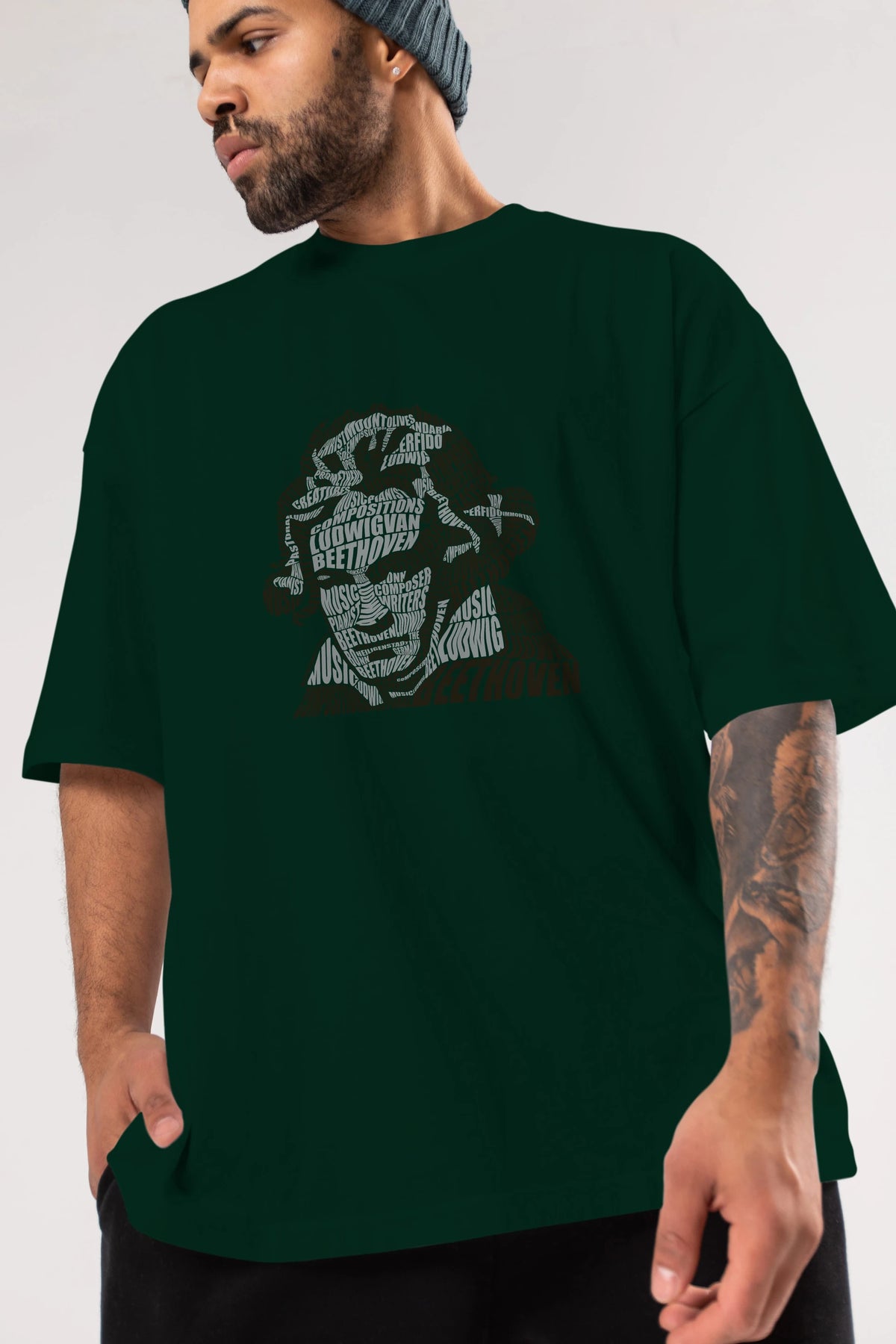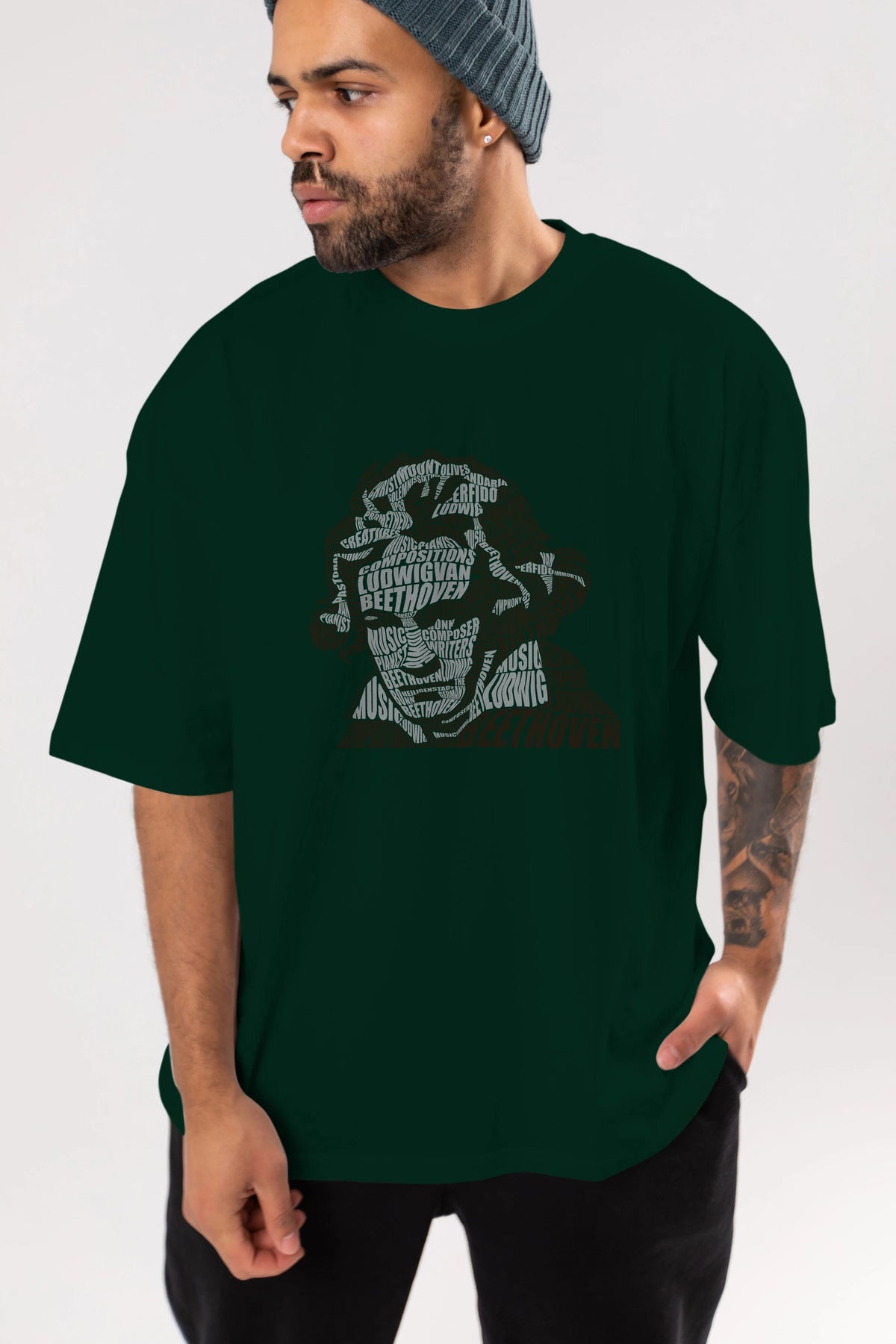 Ludwig van Beethoven Calligram Ön Baskılı Oversize t-shirt %100 pamuk Erkek Kadın Unisex