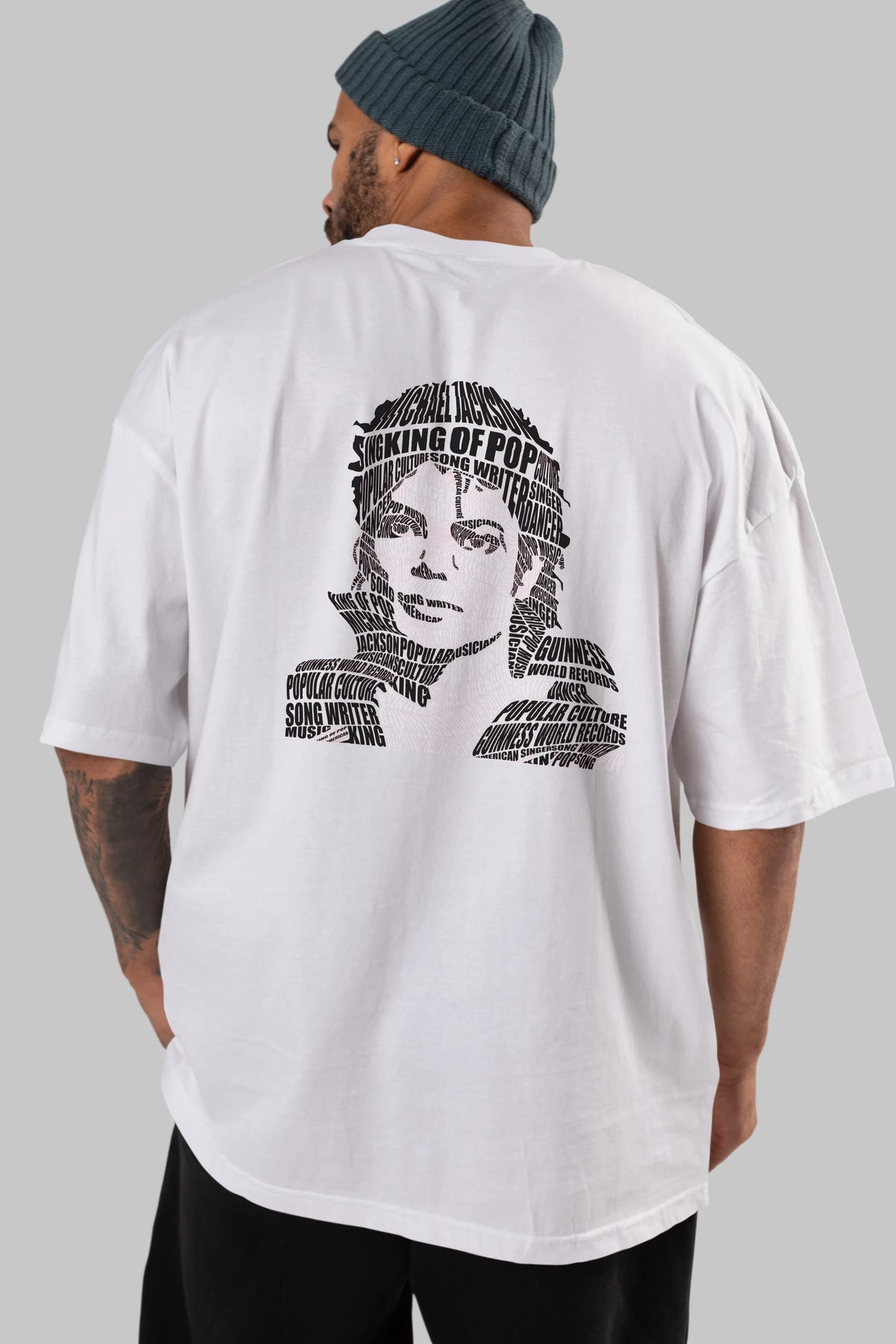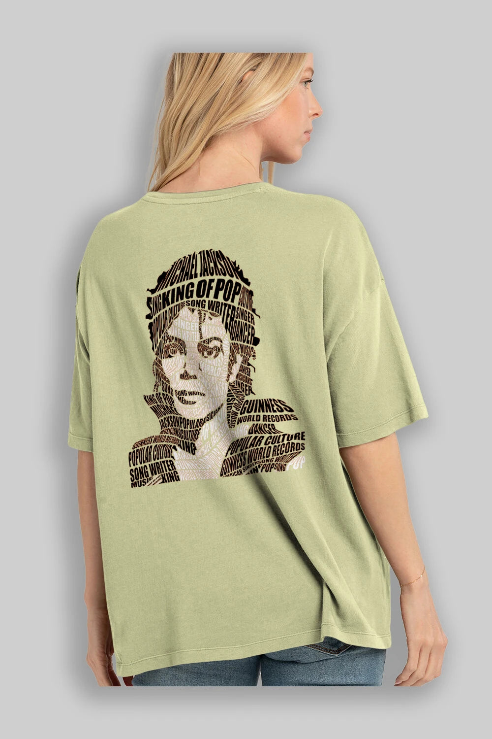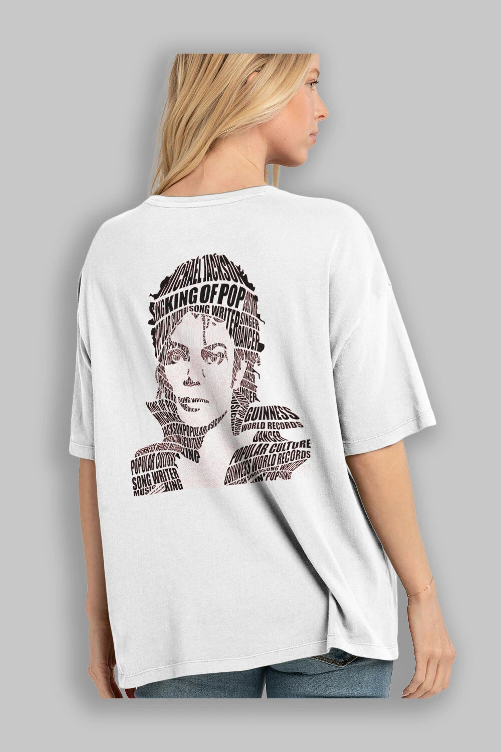 Michael Jackson Calligram Arka Baskılı Oversize t-shirt %100 pamuk Erkek Kadın Unisex