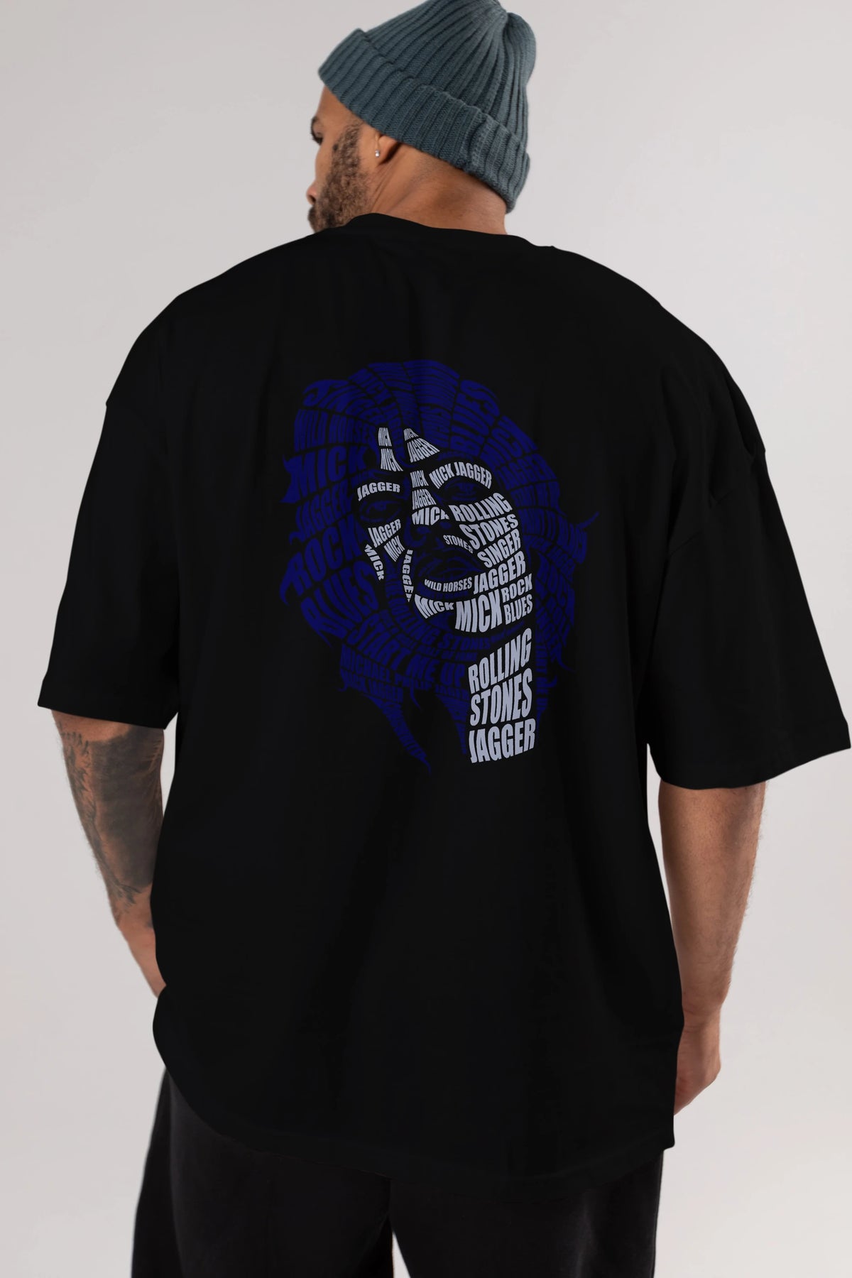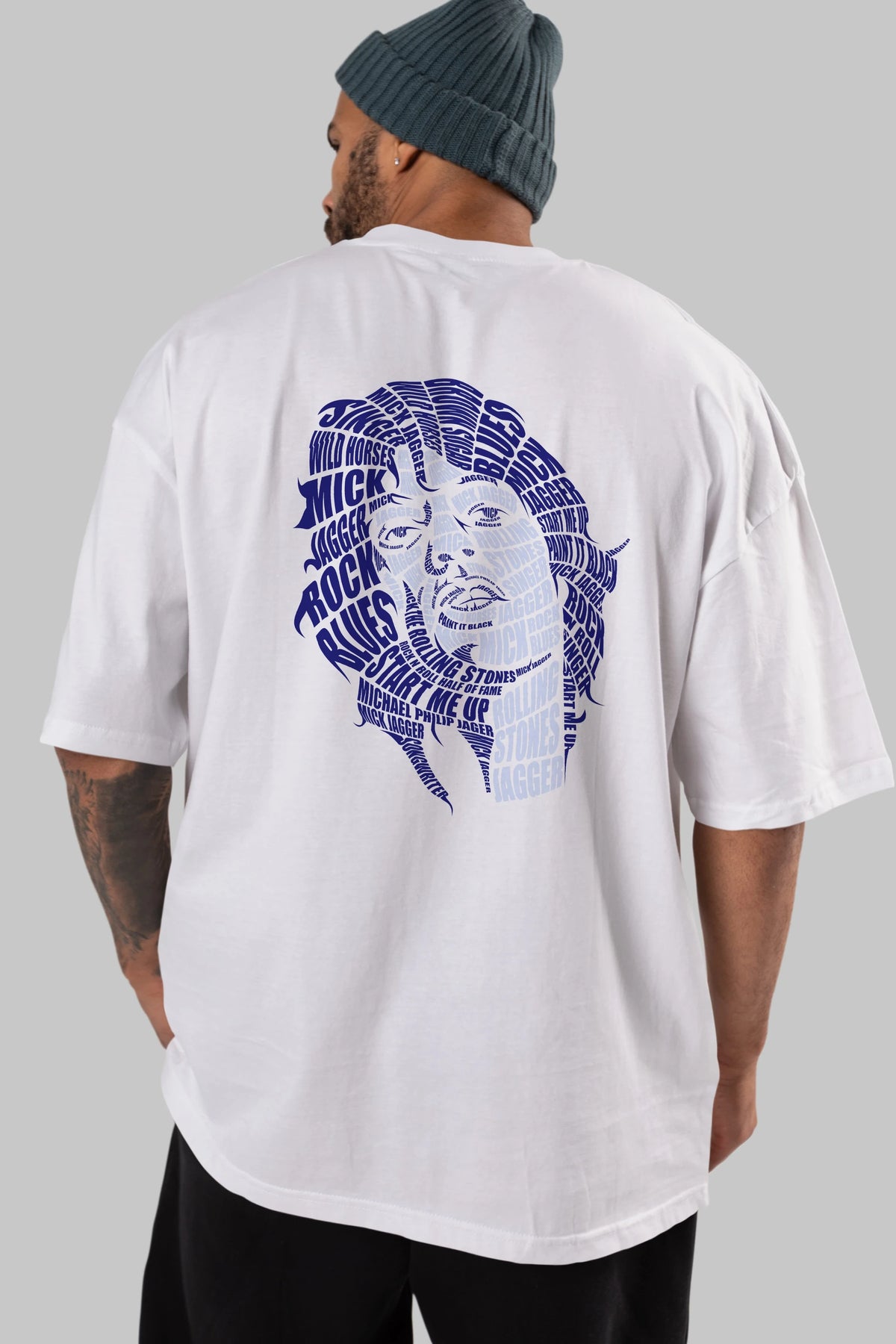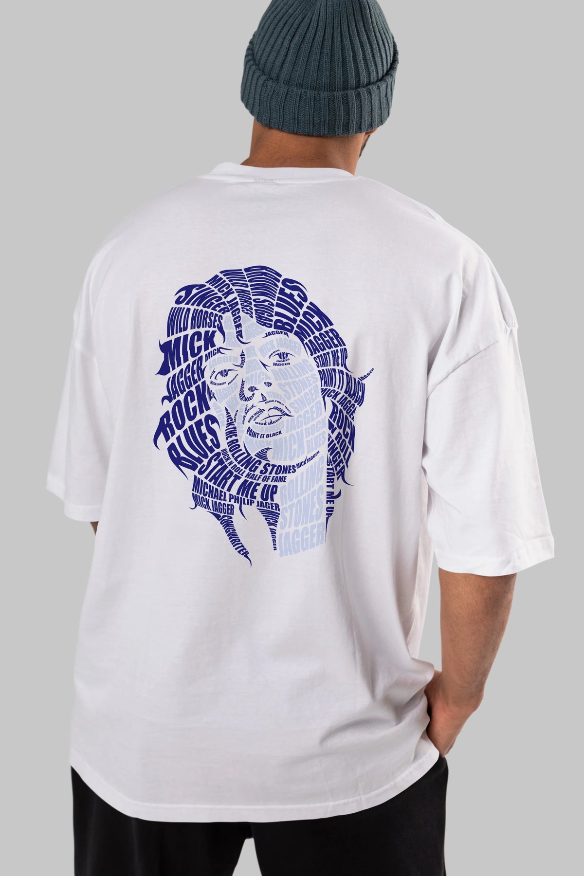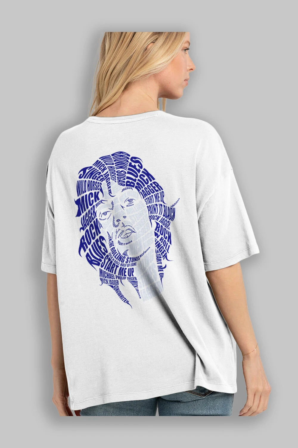 Mick Jagger Calligram Arka Baskılı Oversize t-shirt %100 pamuk Erkek Kadın Unisex