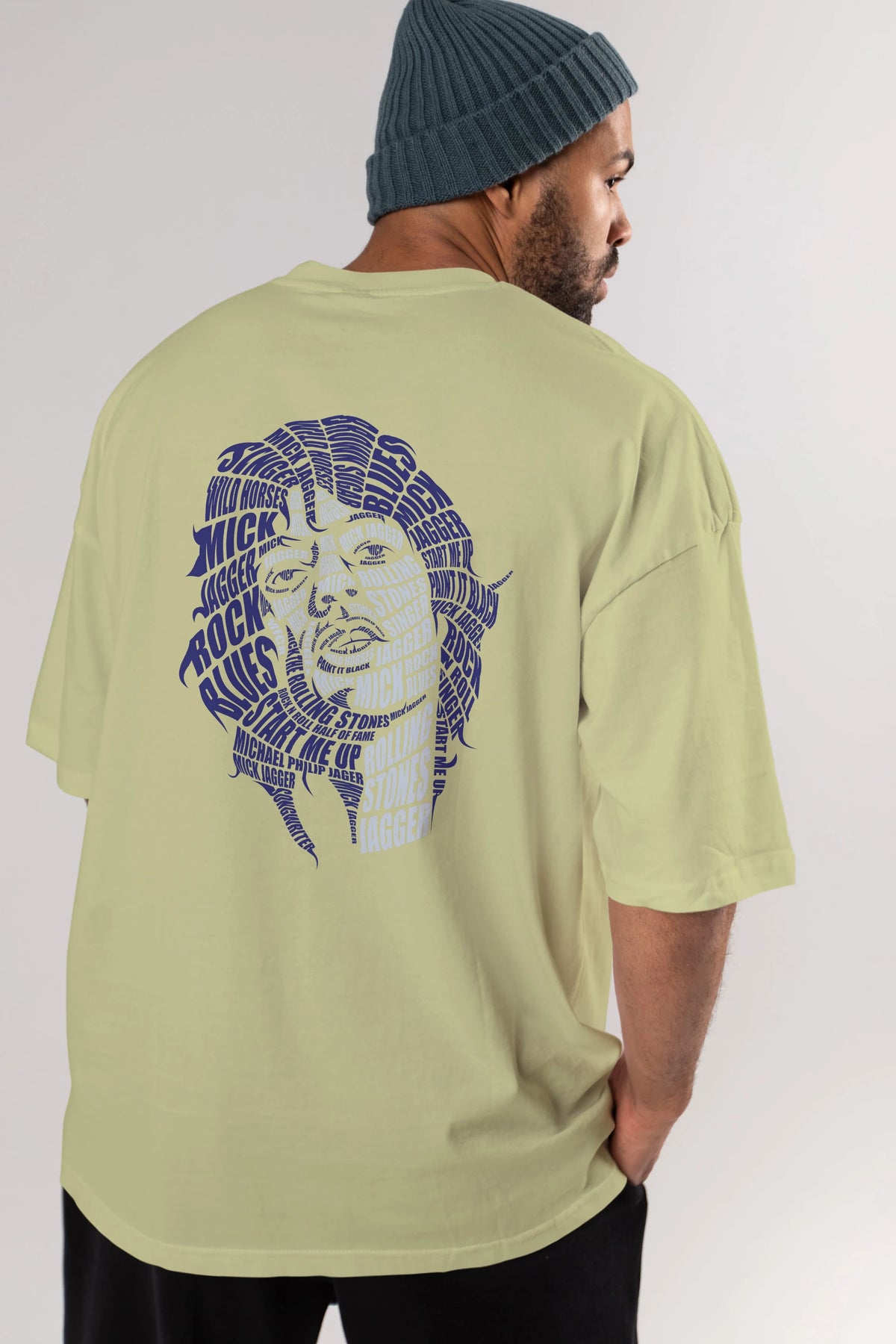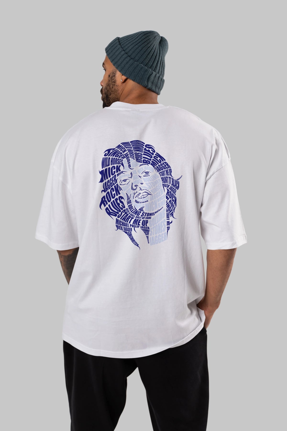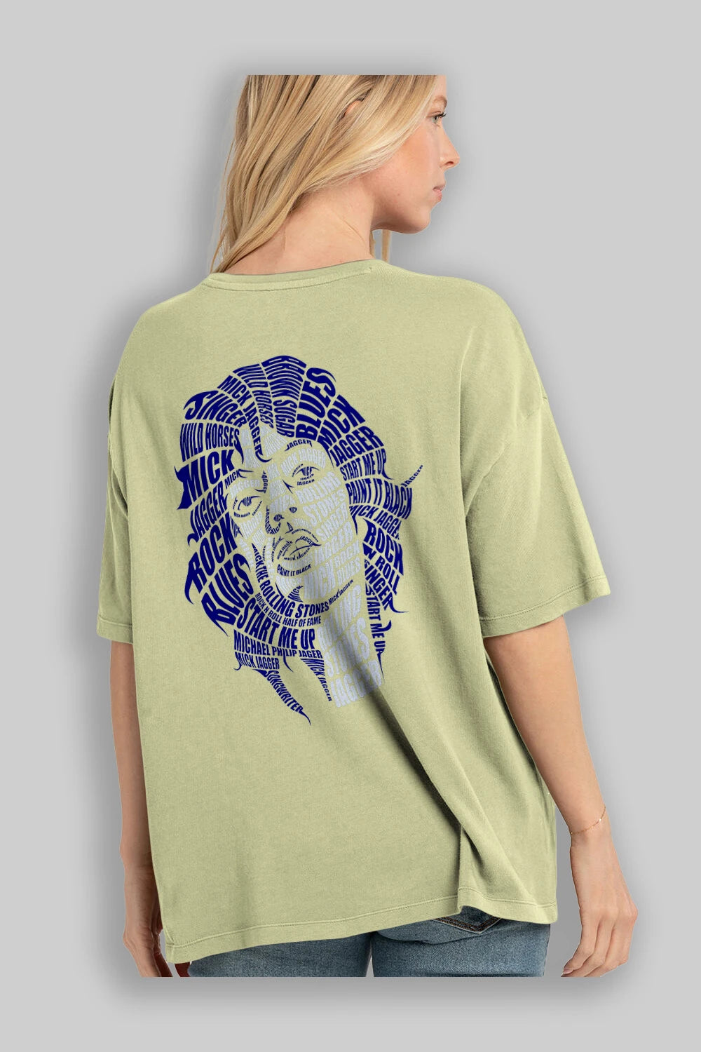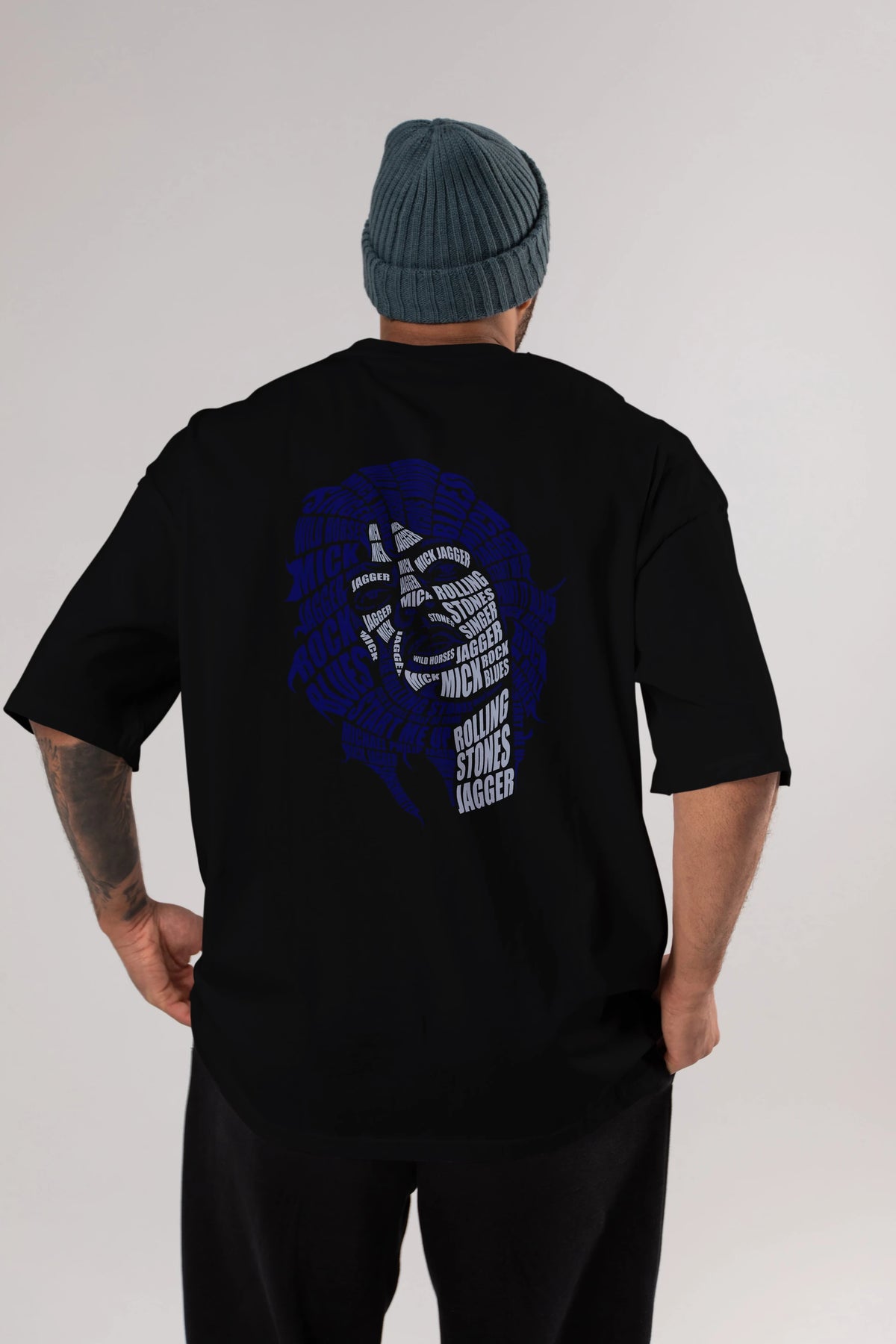 Mick Jagger Calligram Arka Baskılı Oversize t-shirt %100 pamuk Erkek Kadın Unisex