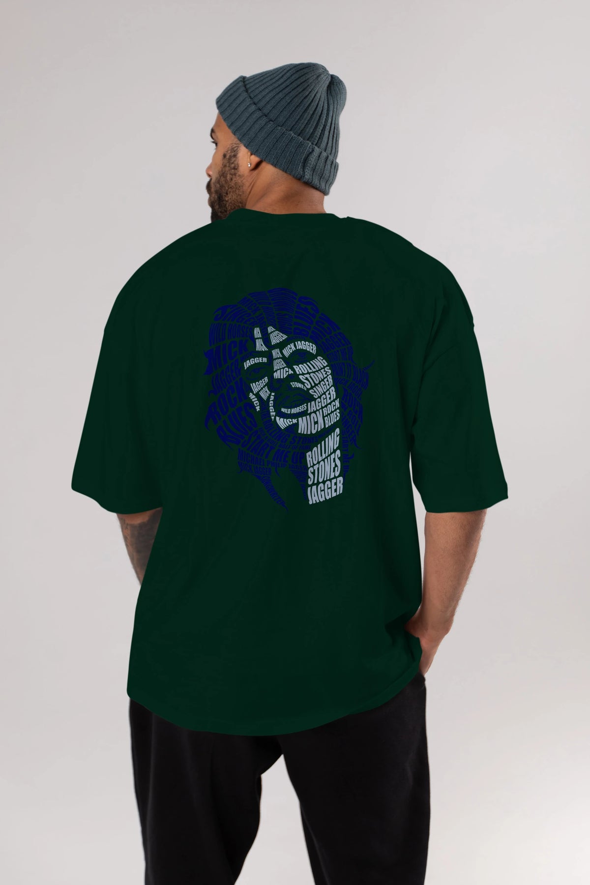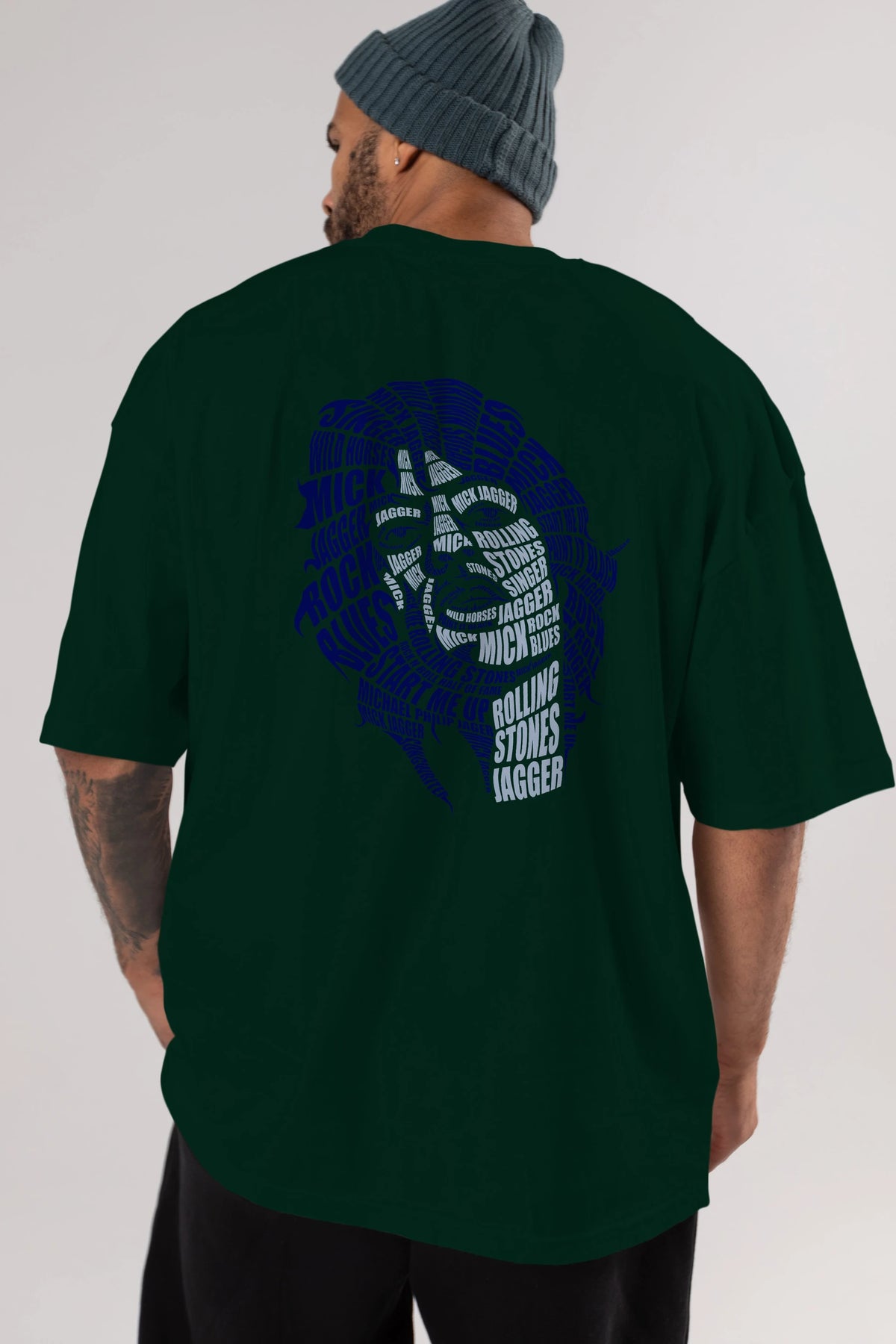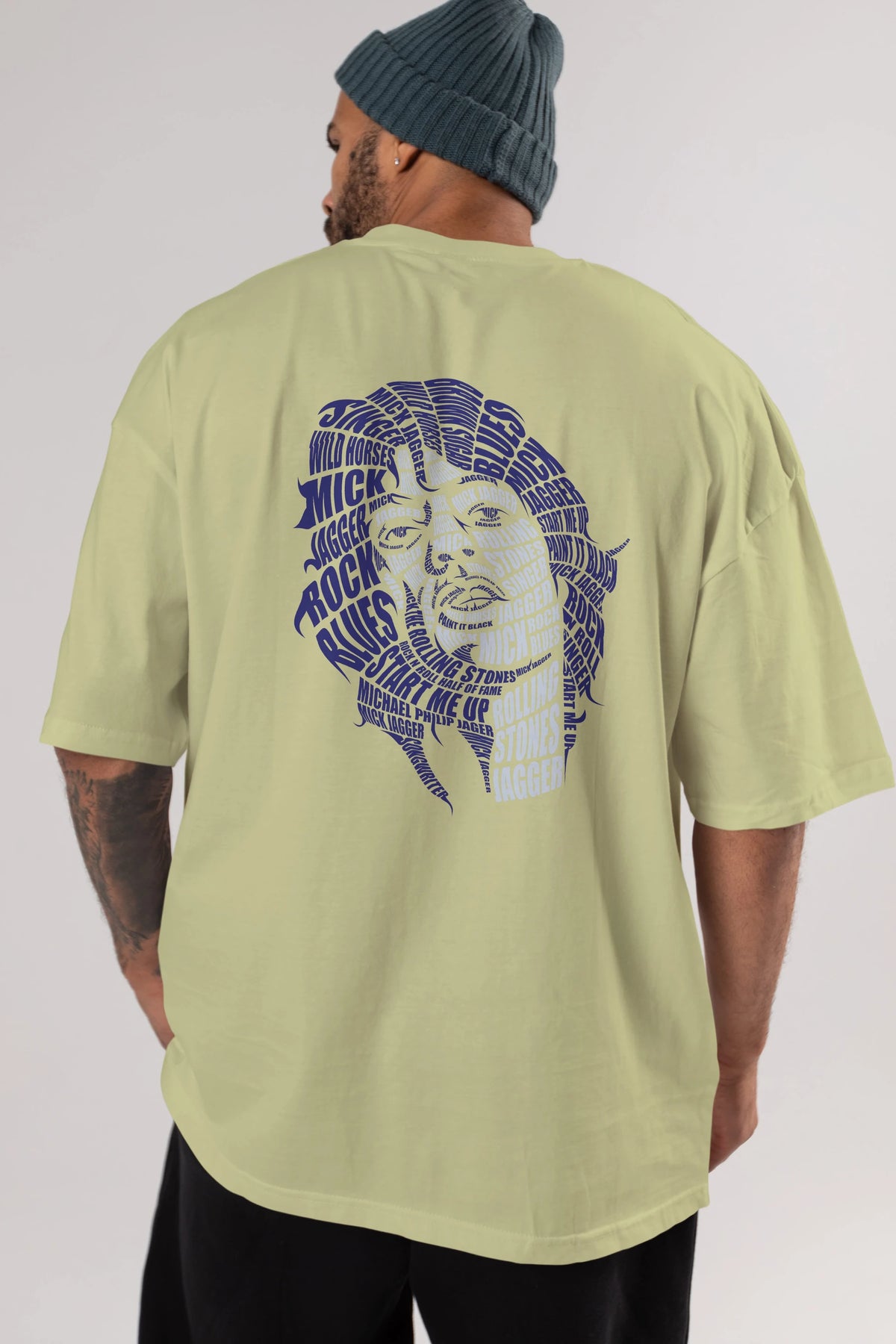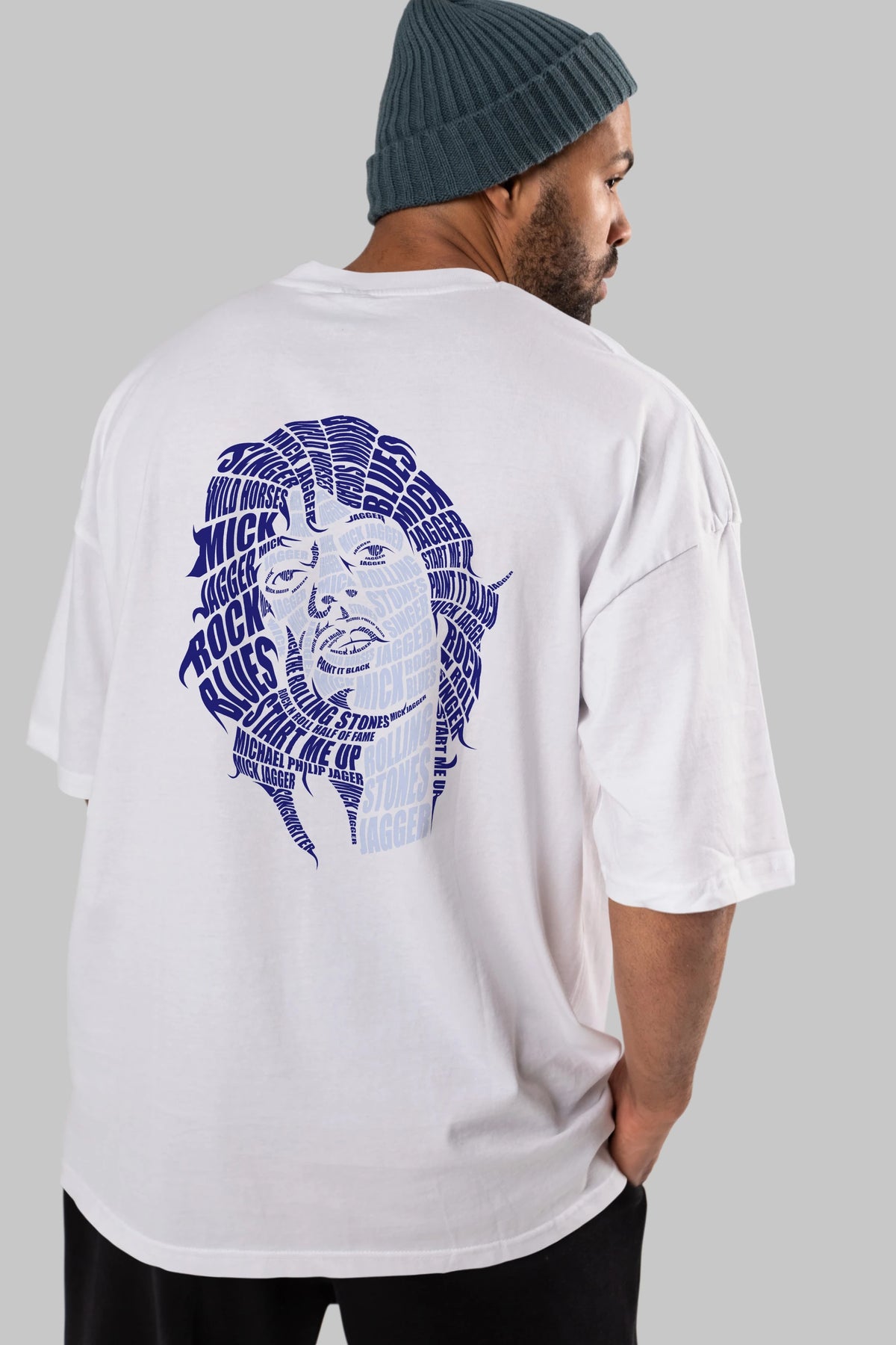 Mick Jagger Calligram Arka Baskılı Oversize t-shirt %100 pamuk Erkek Kadın Unisex