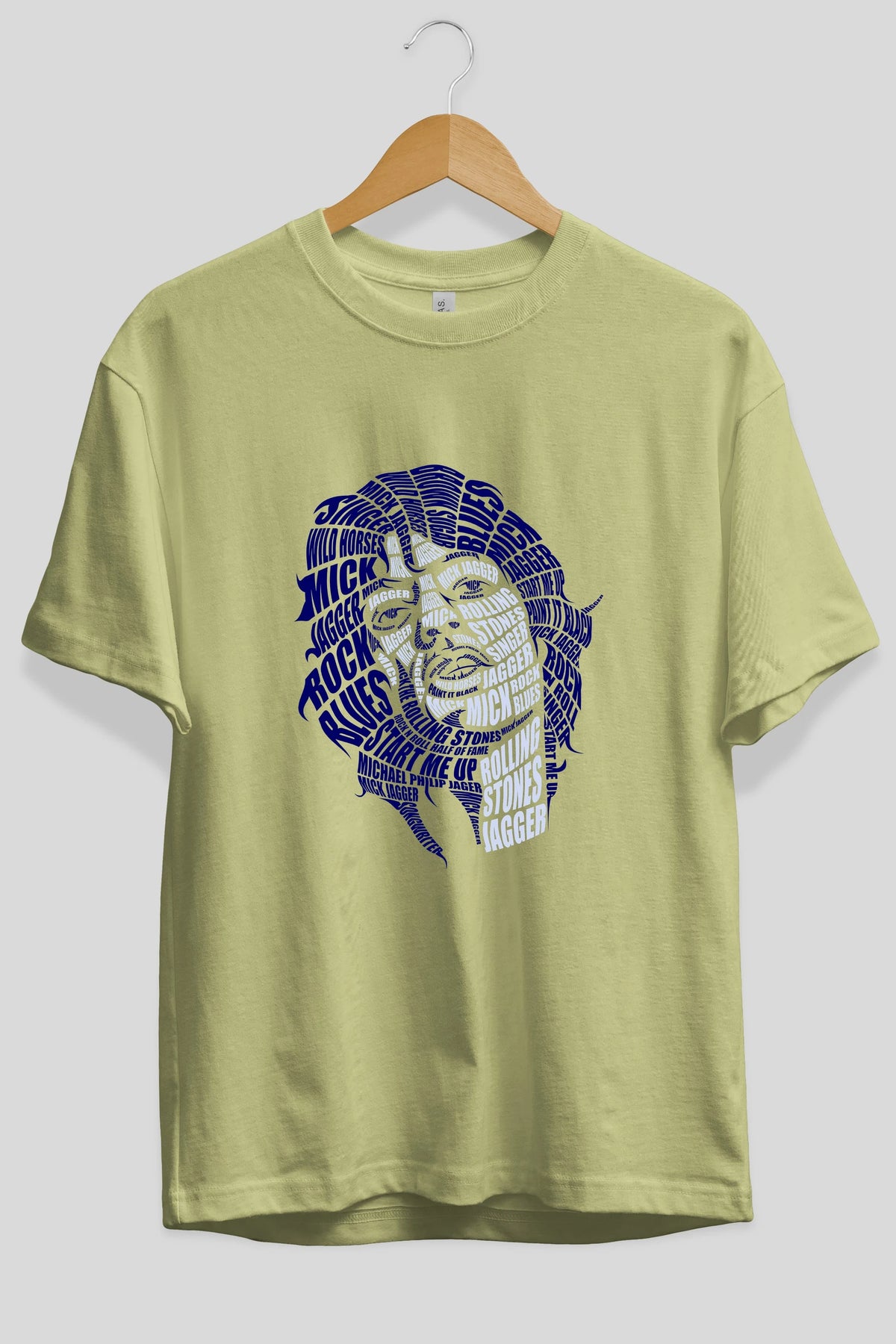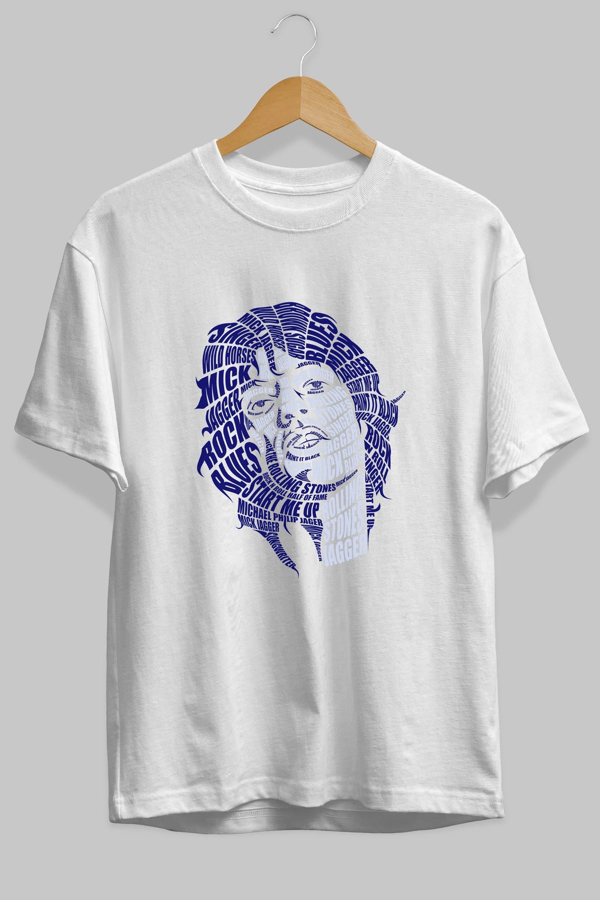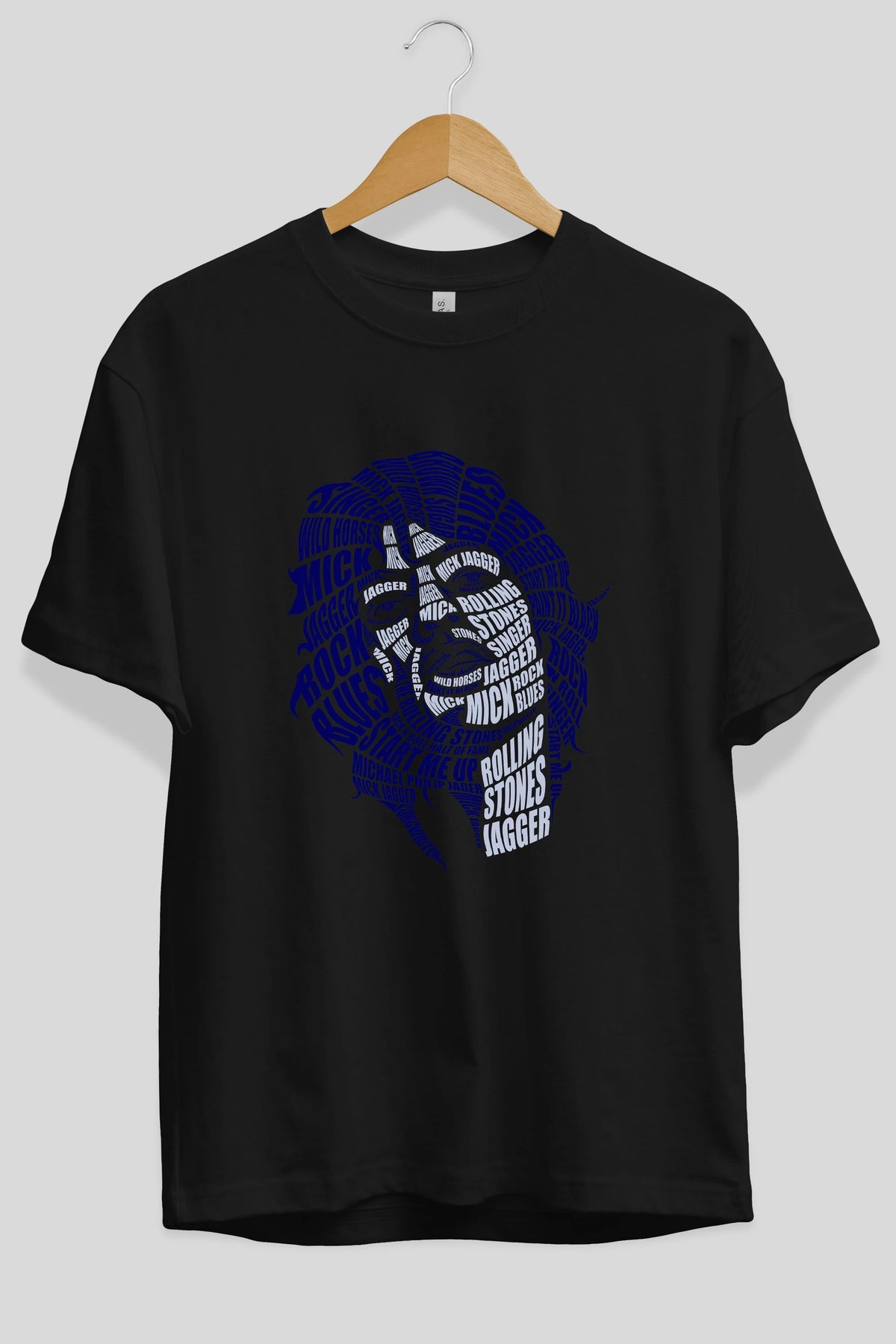 Mick Jagger Calligram Ön Baskılı Oversize t-shirt %100 pamuk Erkek Kadın Unisex