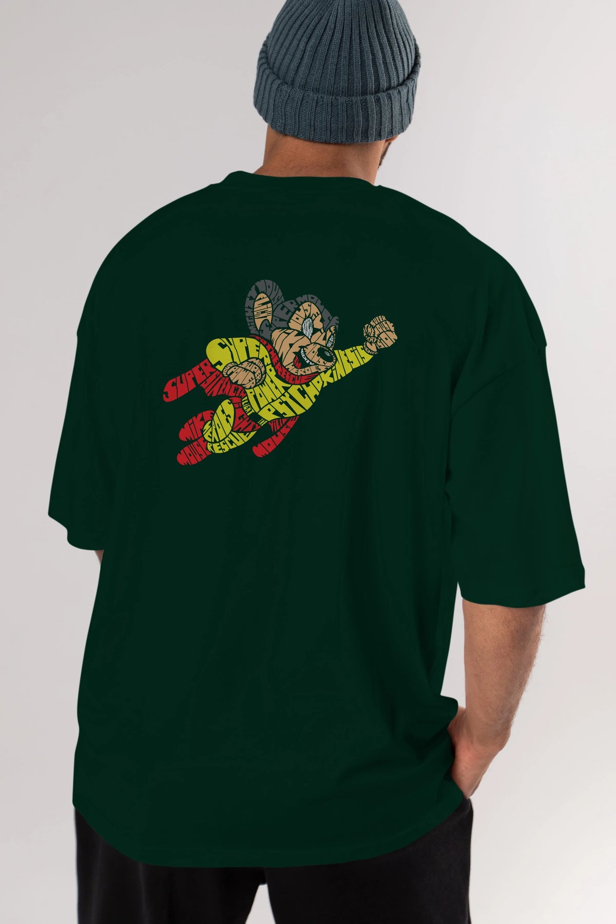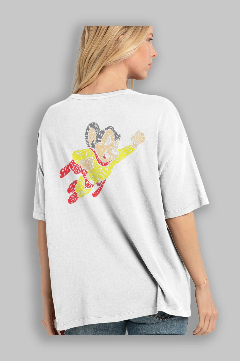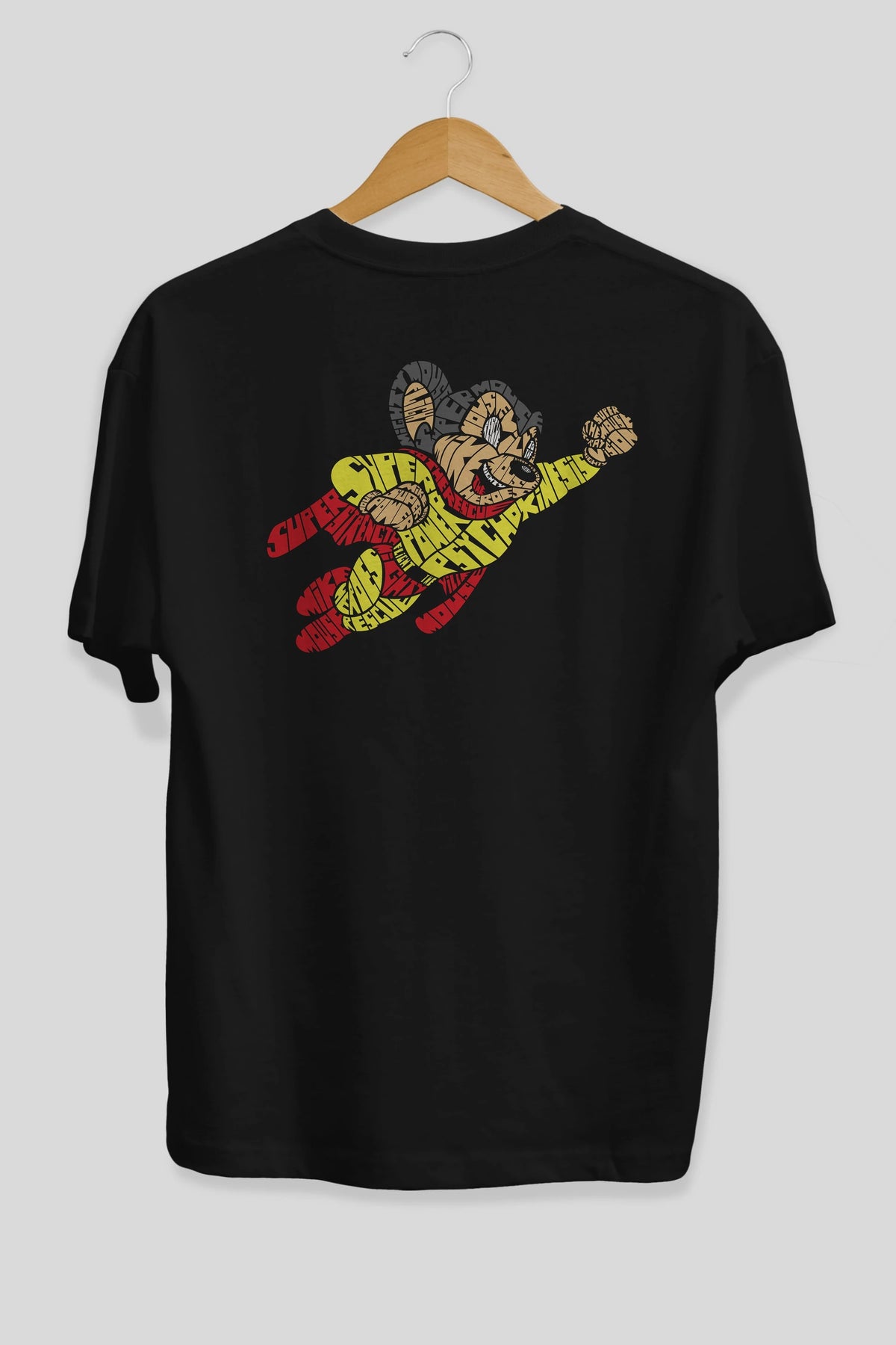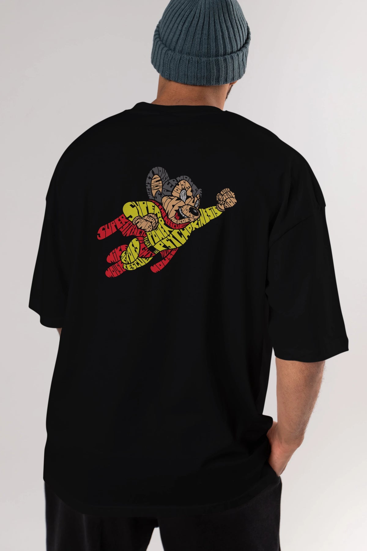 Mighty Mouse Arka Baskılı Oversize t-shirt %100 pamuk Erkek Kadın Unisex