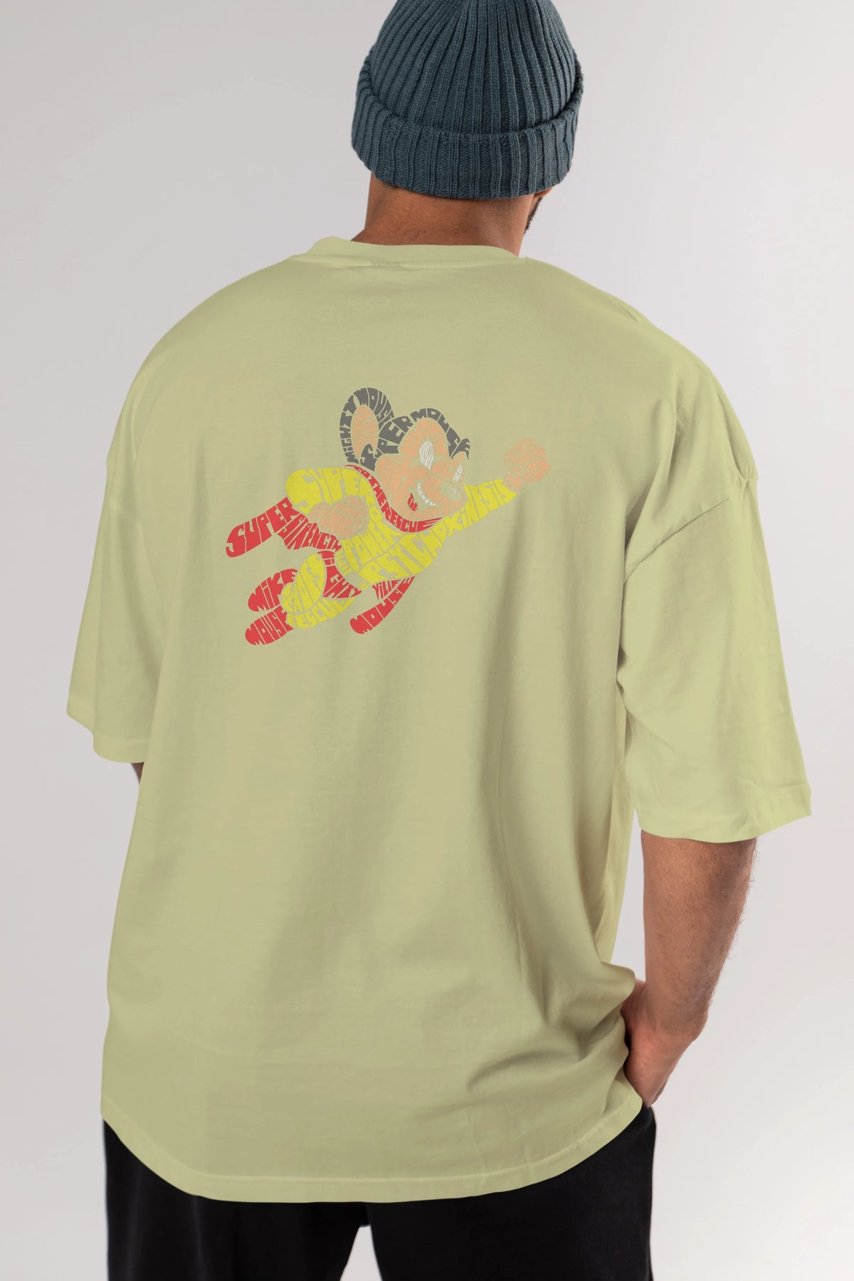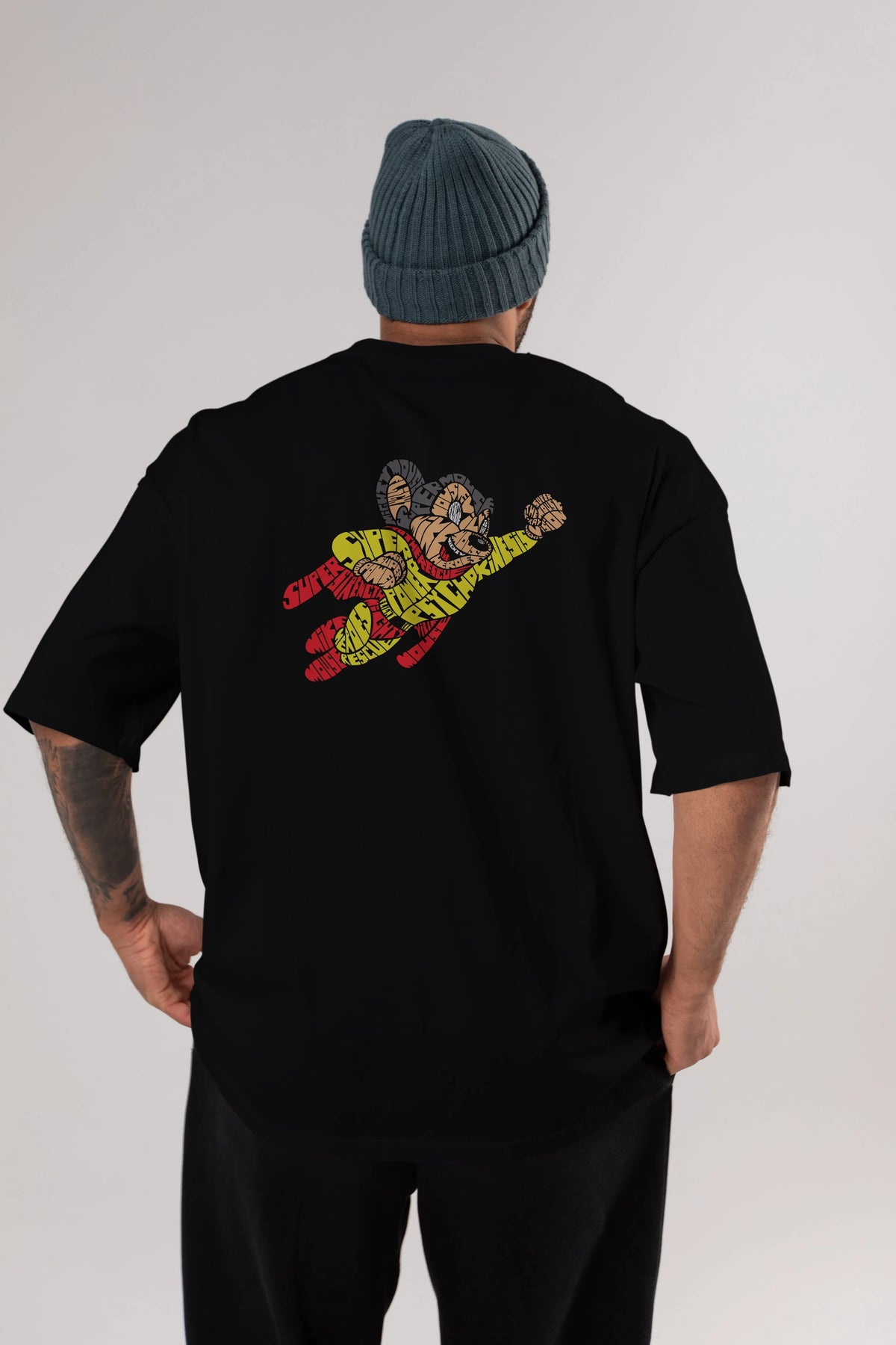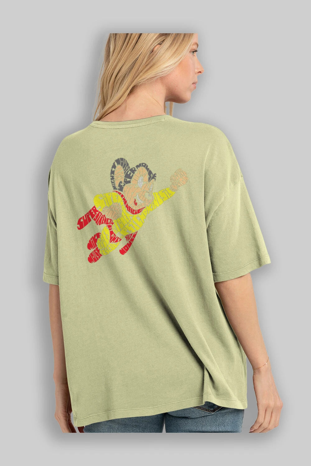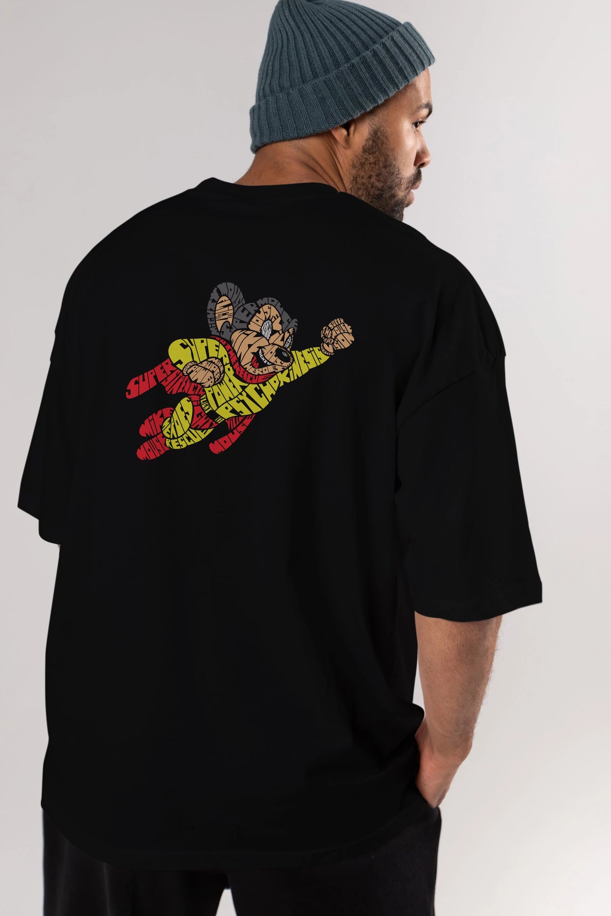 Mighty Mouse Arka Baskılı Oversize t-shirt %100 pamuk Erkek Kadın Unisex