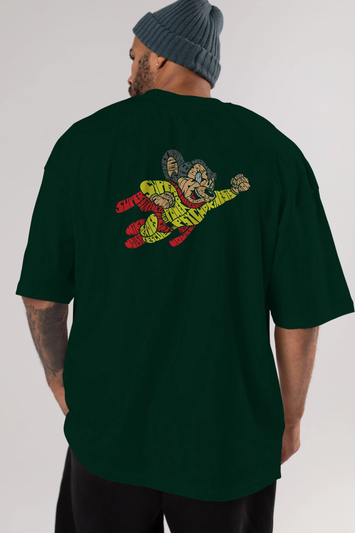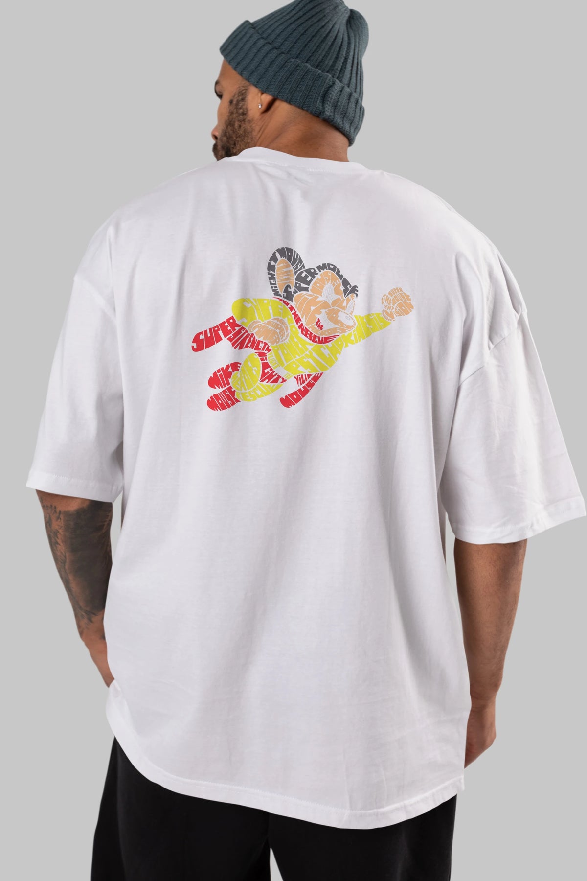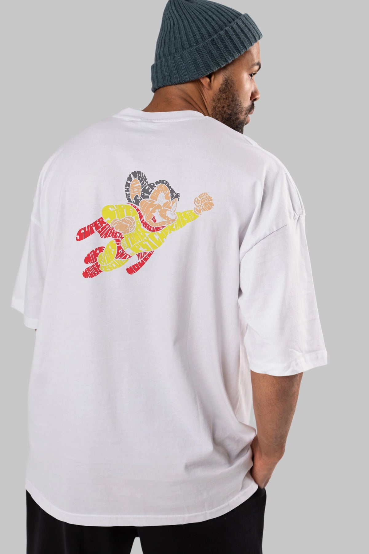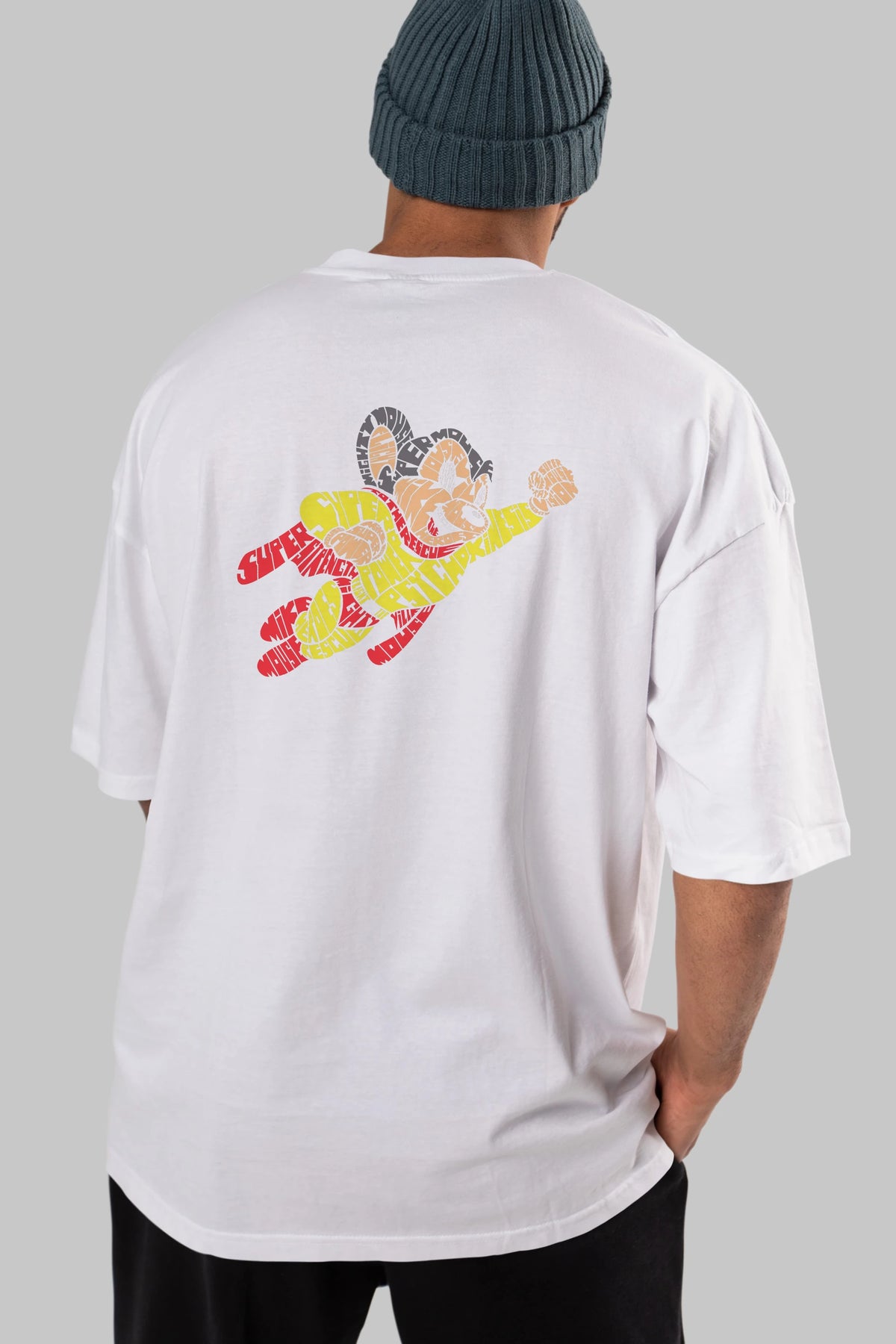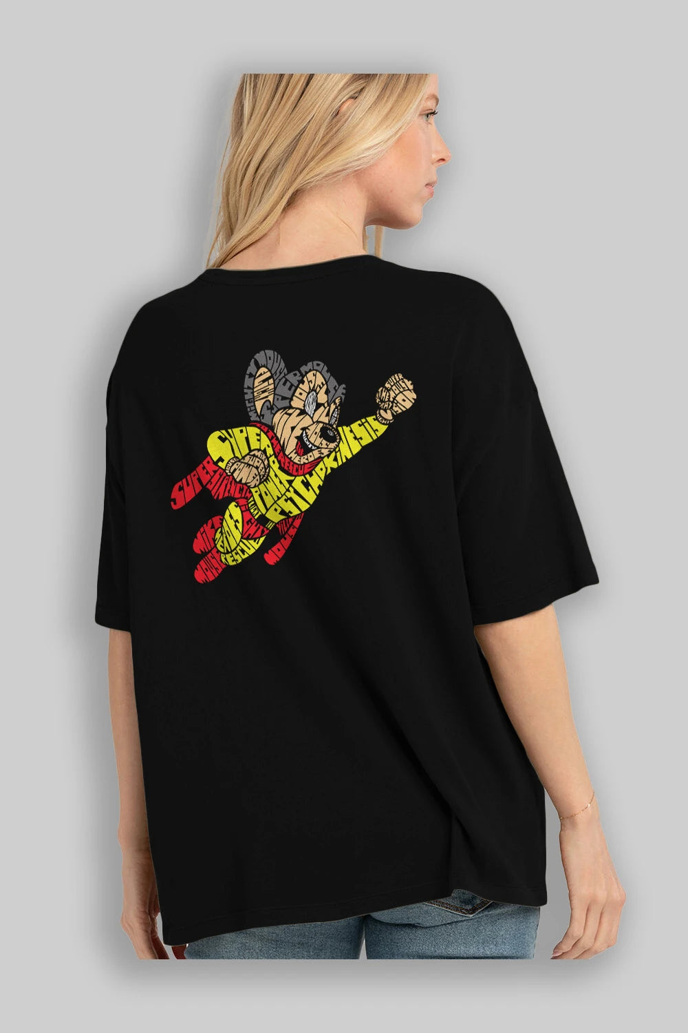 Mighty Mouse Arka Baskılı Oversize t-shirt %100 pamuk Erkek Kadın Unisex
