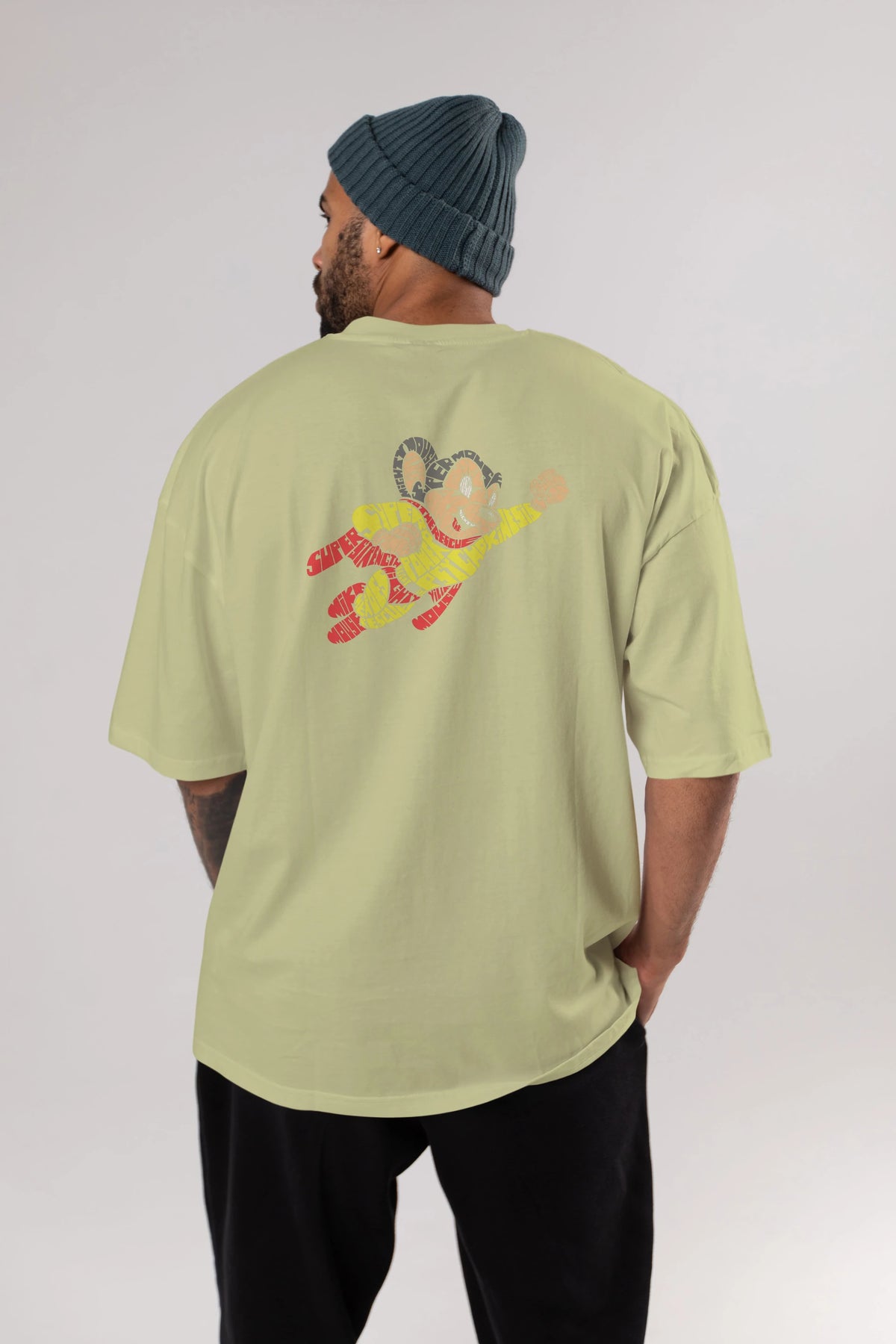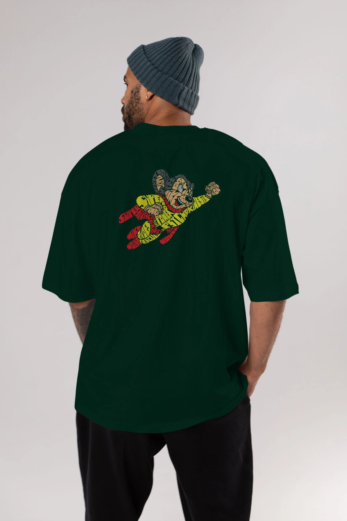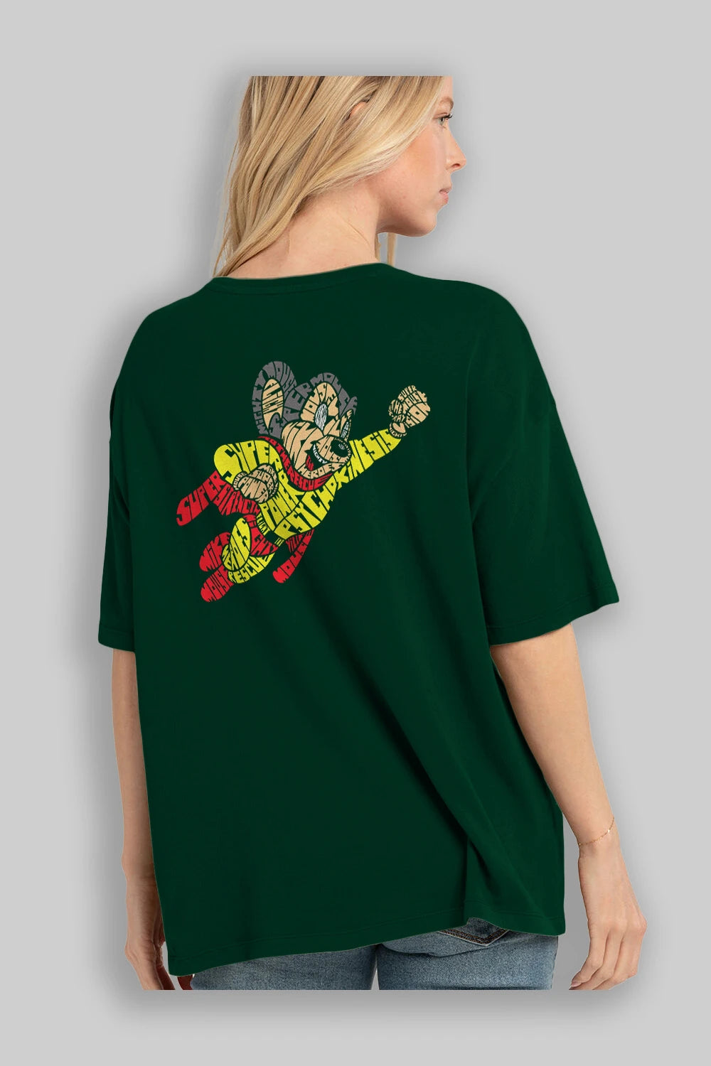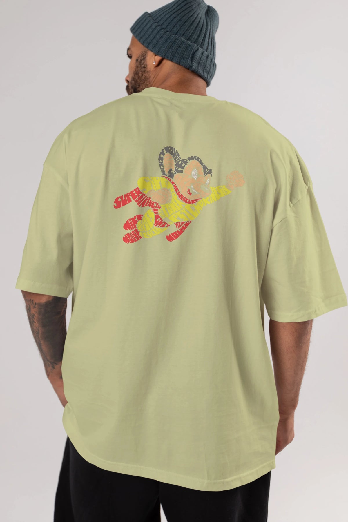 Mighty Mouse Arka Baskılı Oversize t-shirt %100 pamuk Erkek Kadın Unisex
