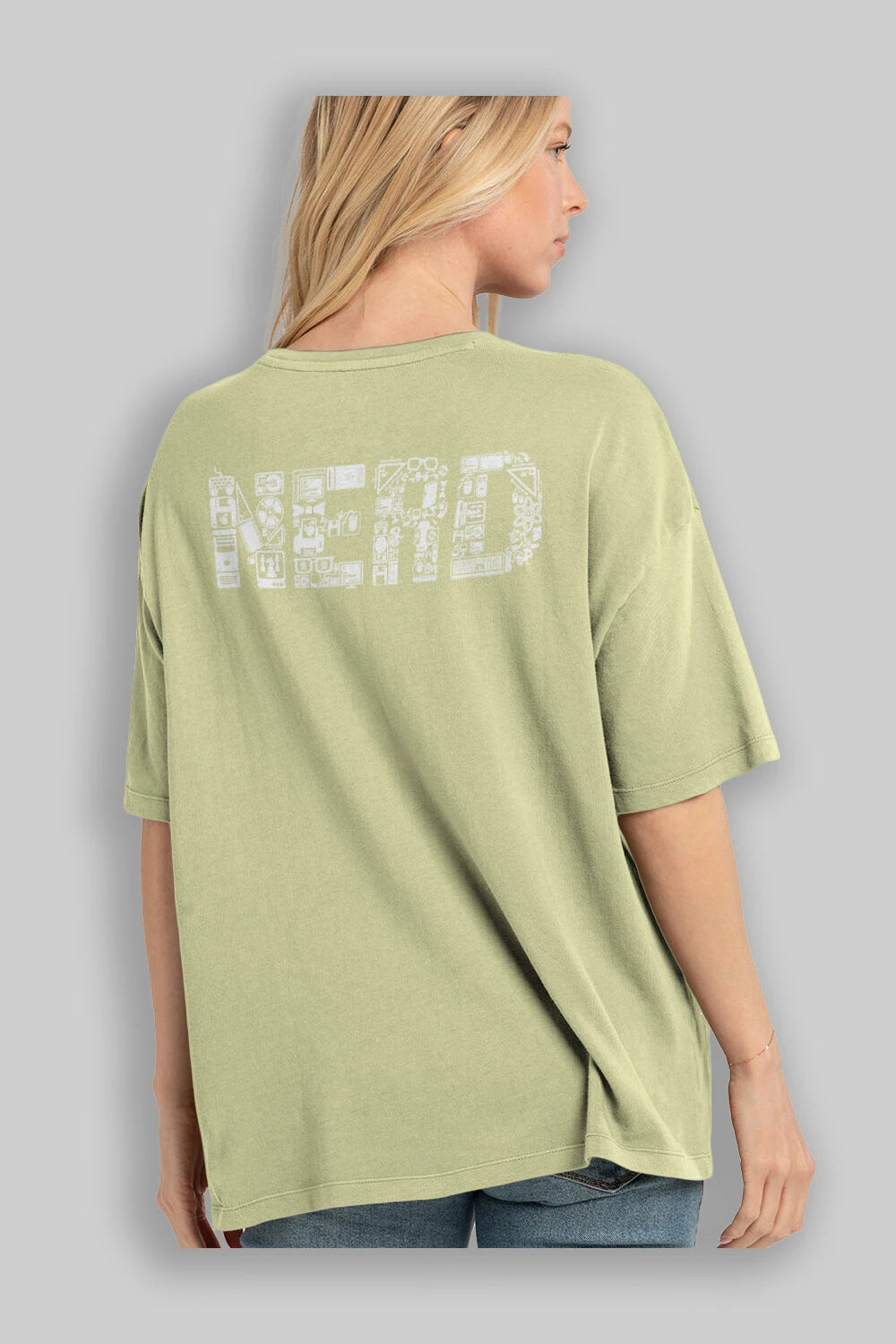 NERD Arka Baskılı Oversize t-shirt %100 pamuk Erkek Kadın Unisex