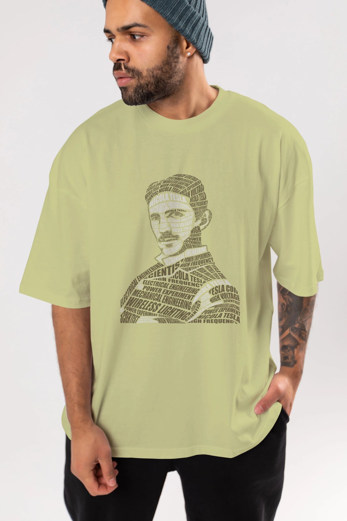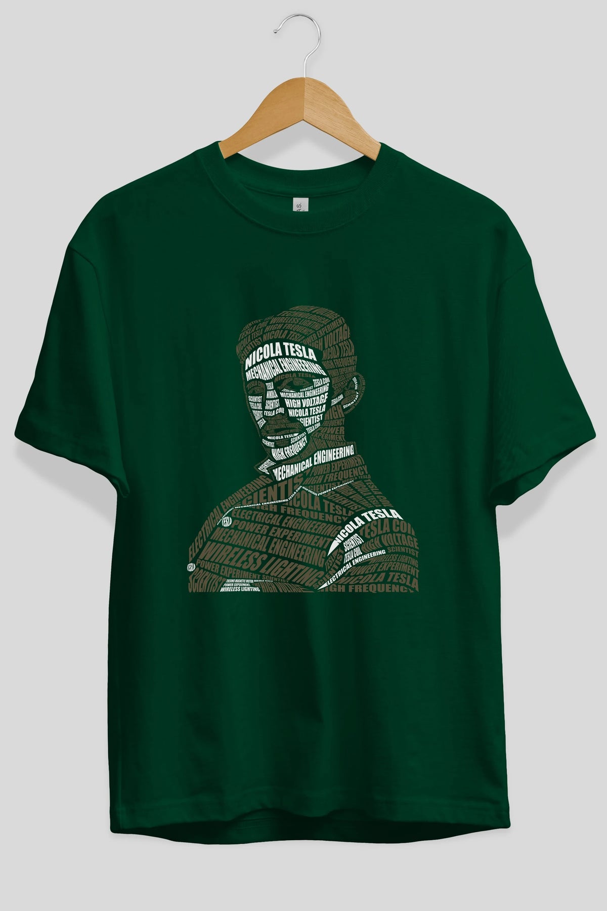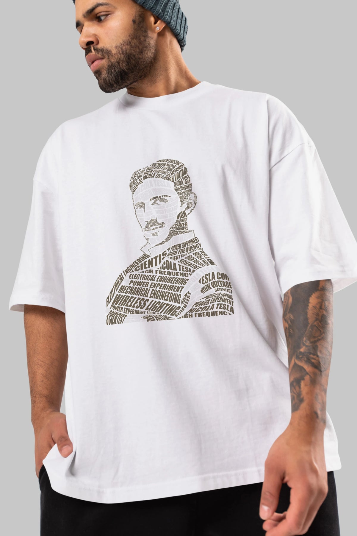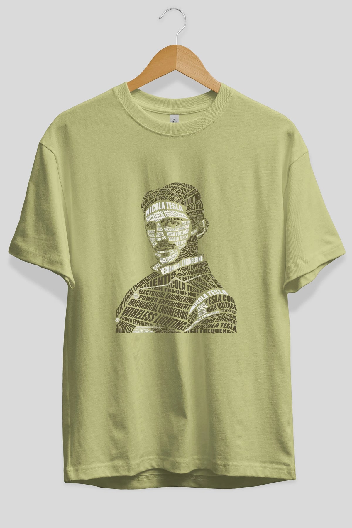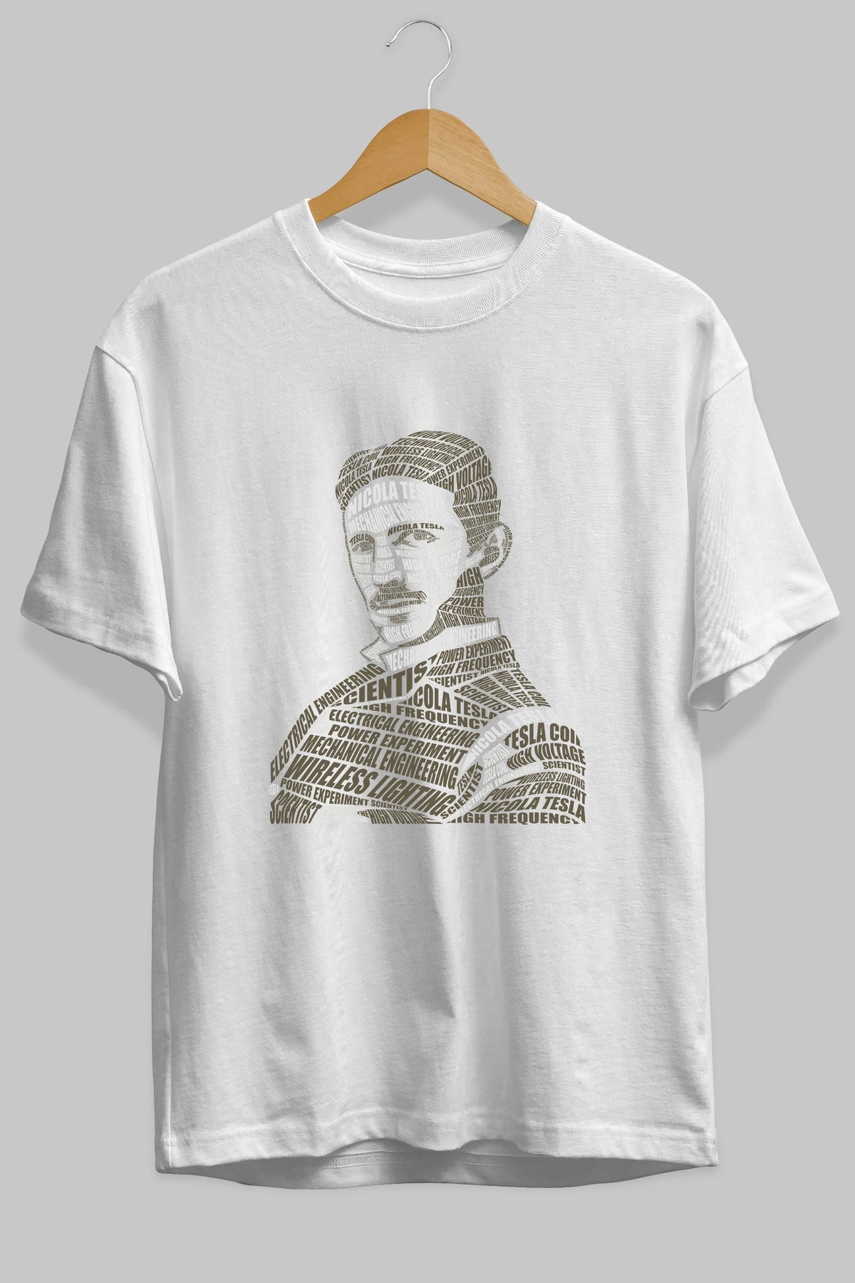 Nikola Tesla Calligram Ön Baskılı Oversize t-shirt %100 pamuk Erkek Kadın Unisex