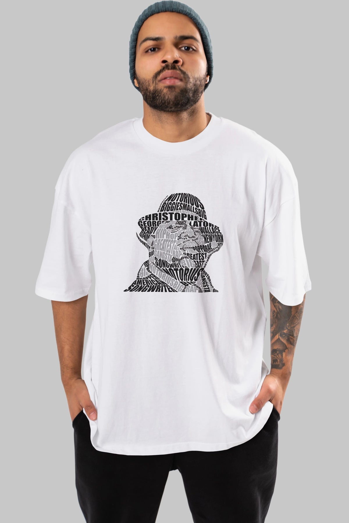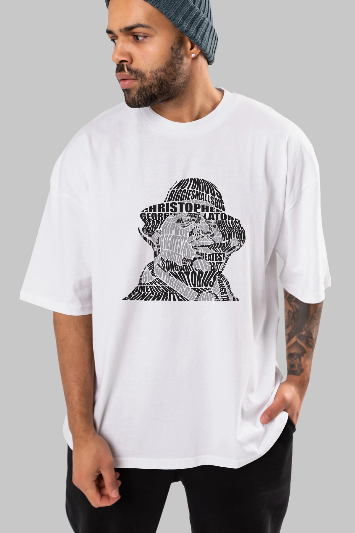 Notorious Big Calligram Ön Baskılı Oversize t-shirt %100 pamuk Erkek Kadın Unisex