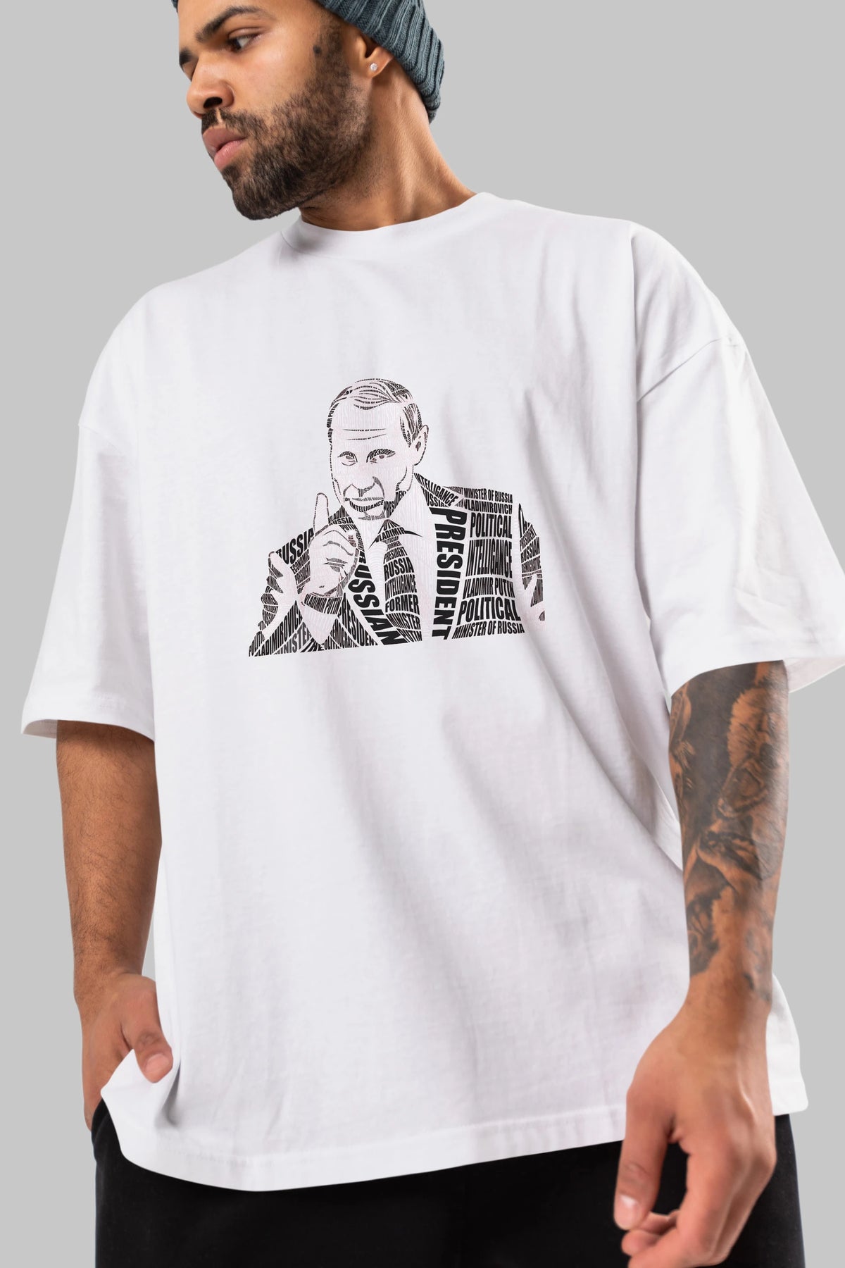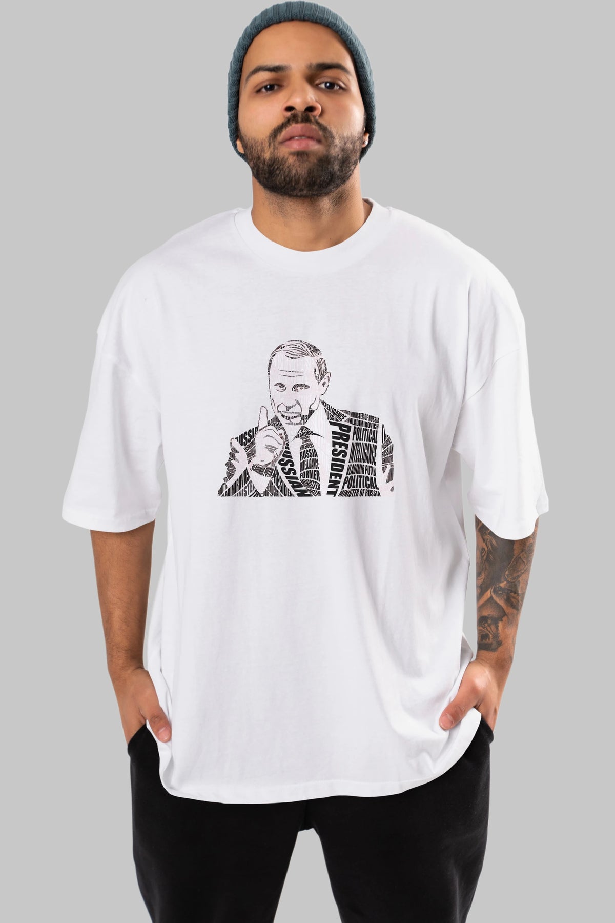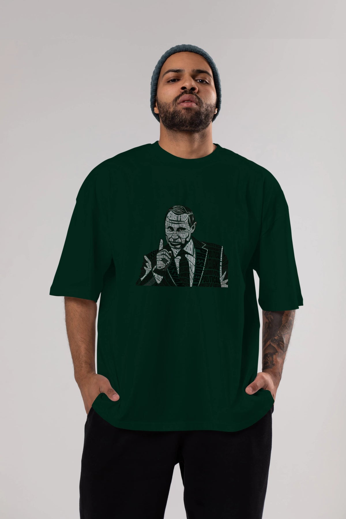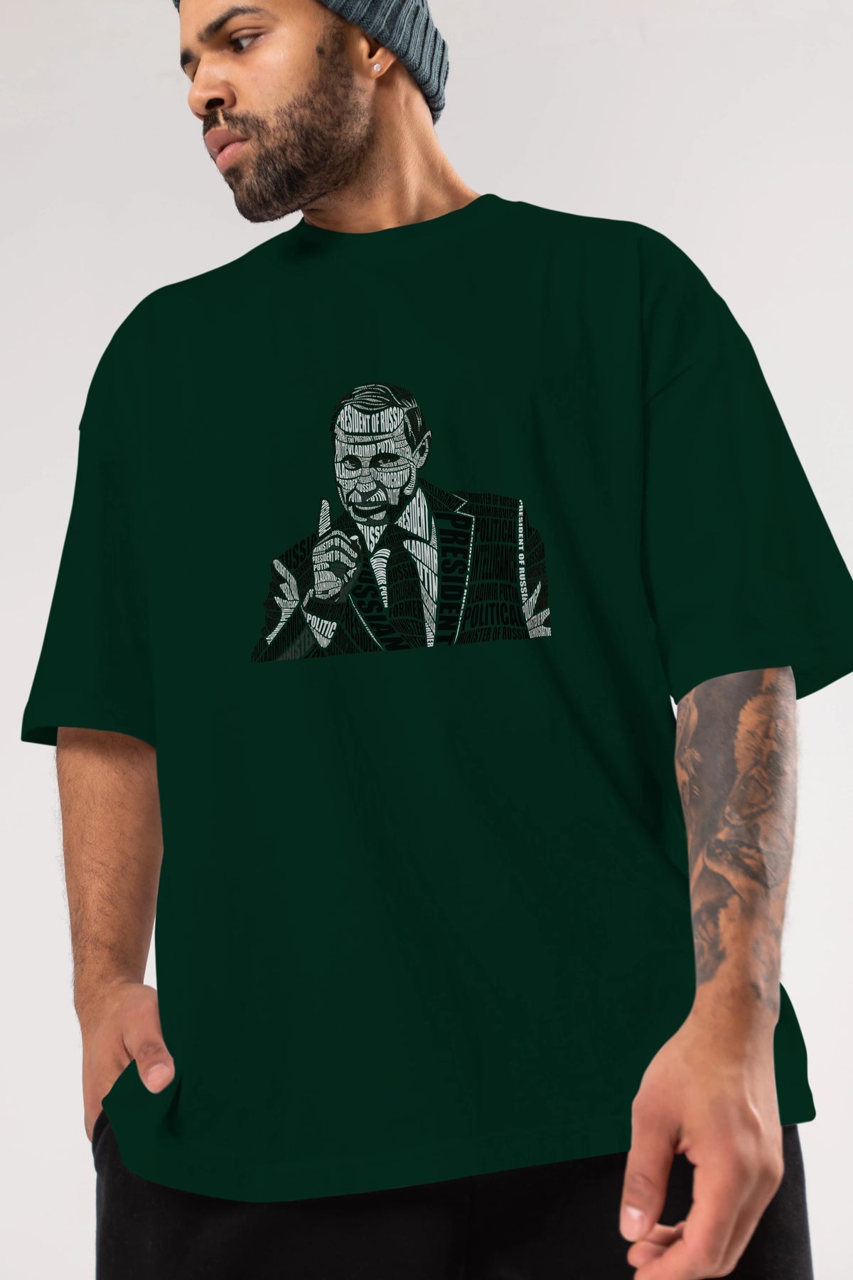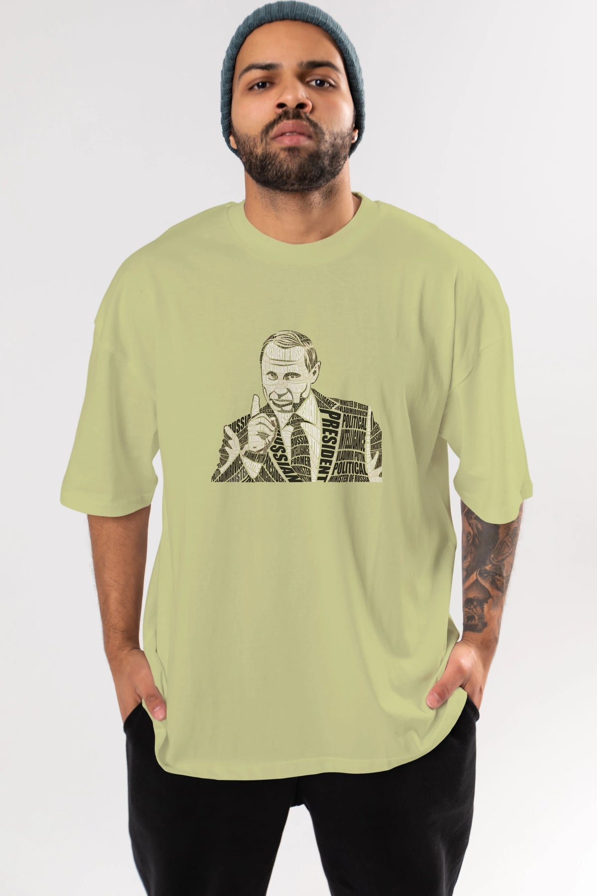 Putin Calligram Ön Baskılı Oversize t-shirt %100 pamuk Erkek Kadın Unisex