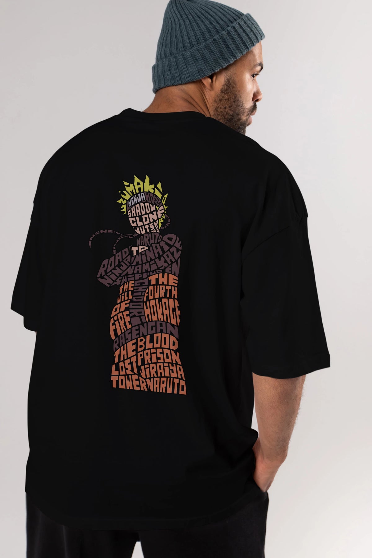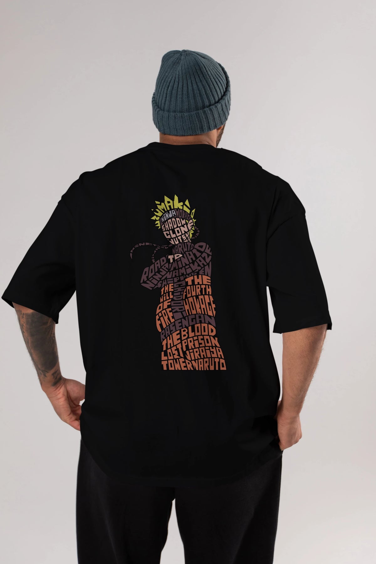 Rasengan Arka Baskılı Oversize t-shirt %100 pamuk Erkek Kadın Unisex