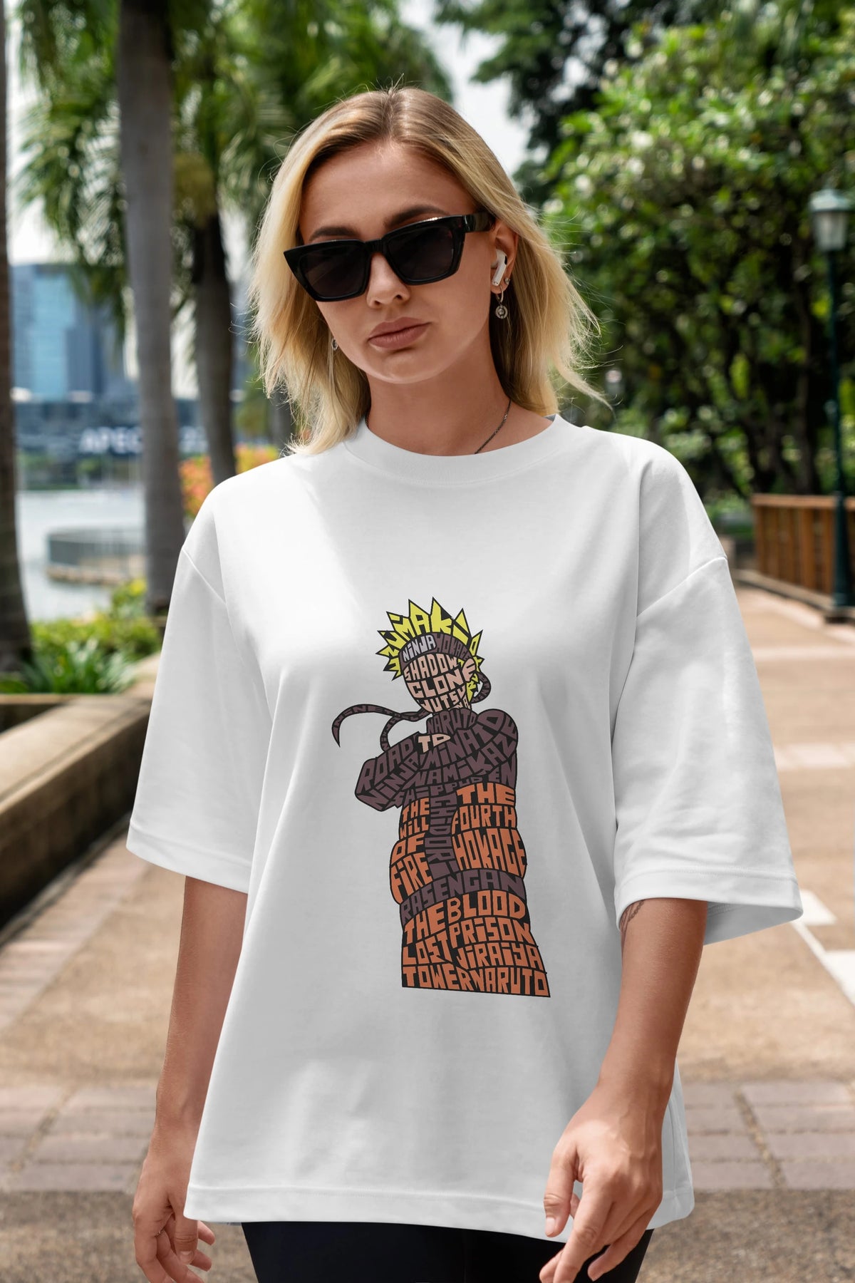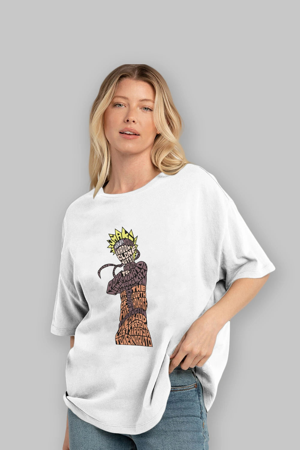 Hem erkekler hem de kadınlar için uygun, taze, modern bir baskıya sahip baskılı oversize t-shirt.