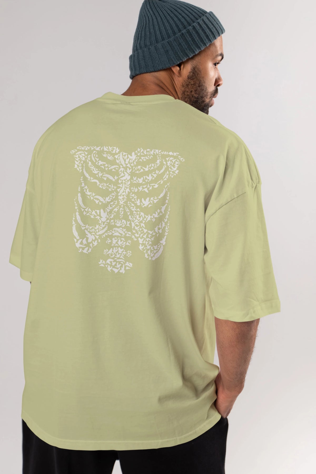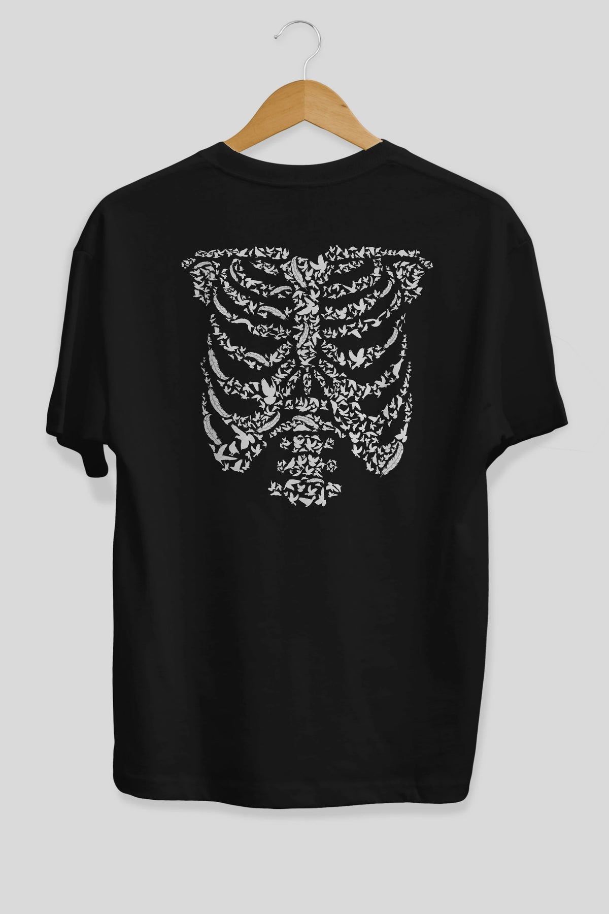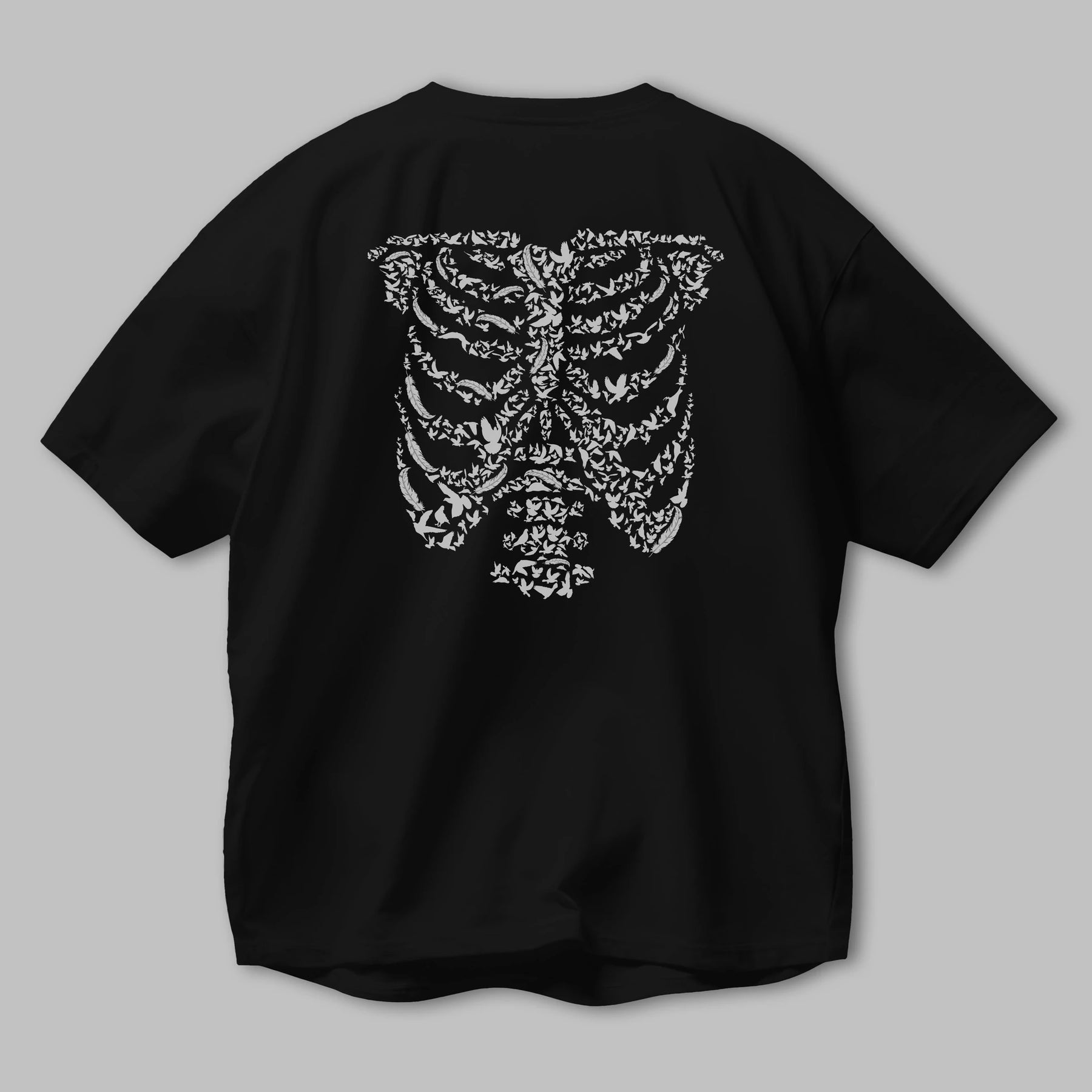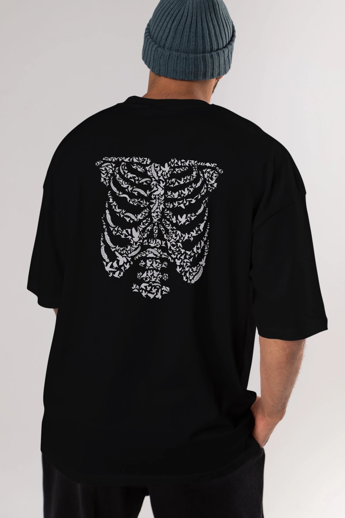 Ribcage Bird Arka Baskılı Oversize t-shirt %100 pamuk Erkek Kadın Unisex