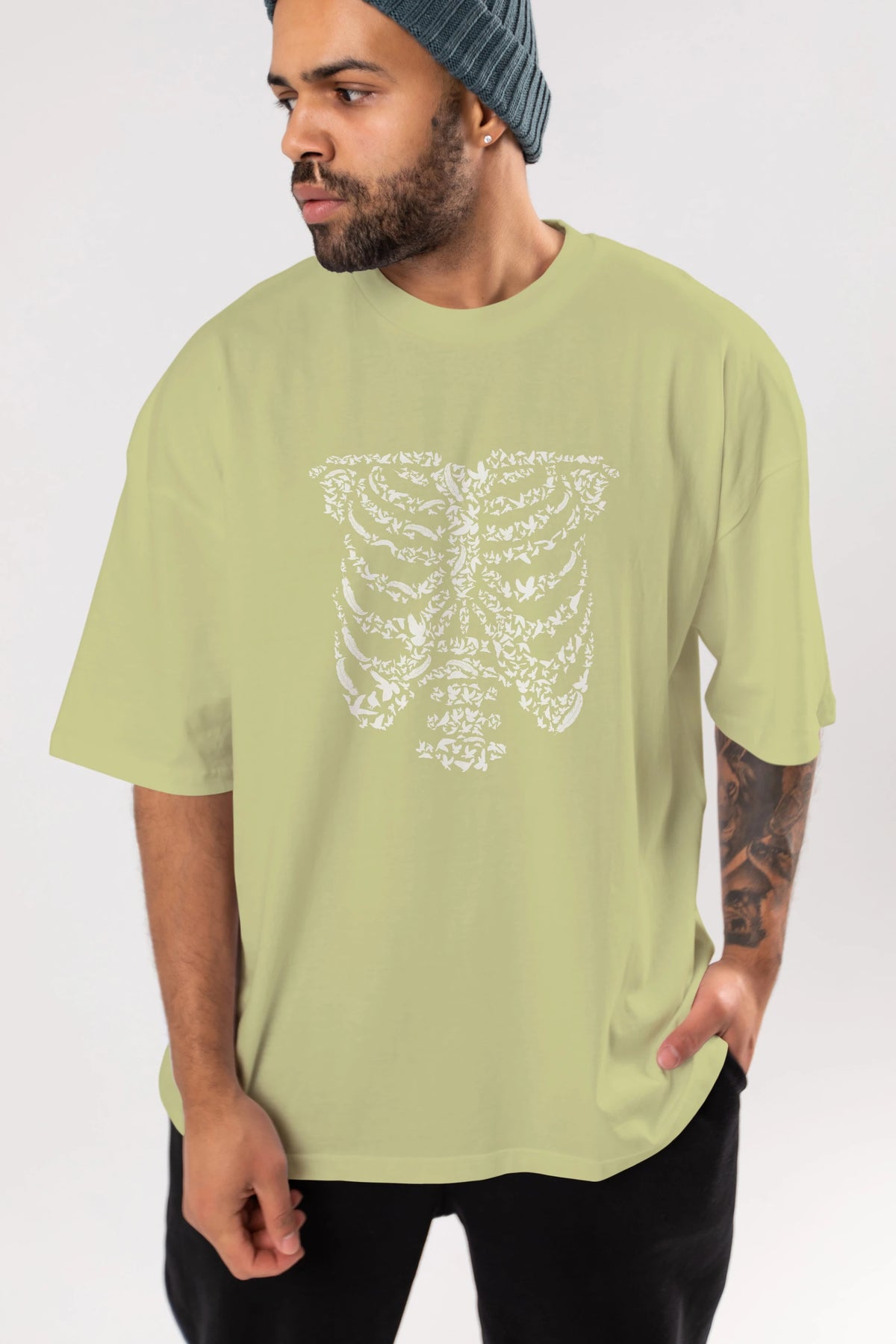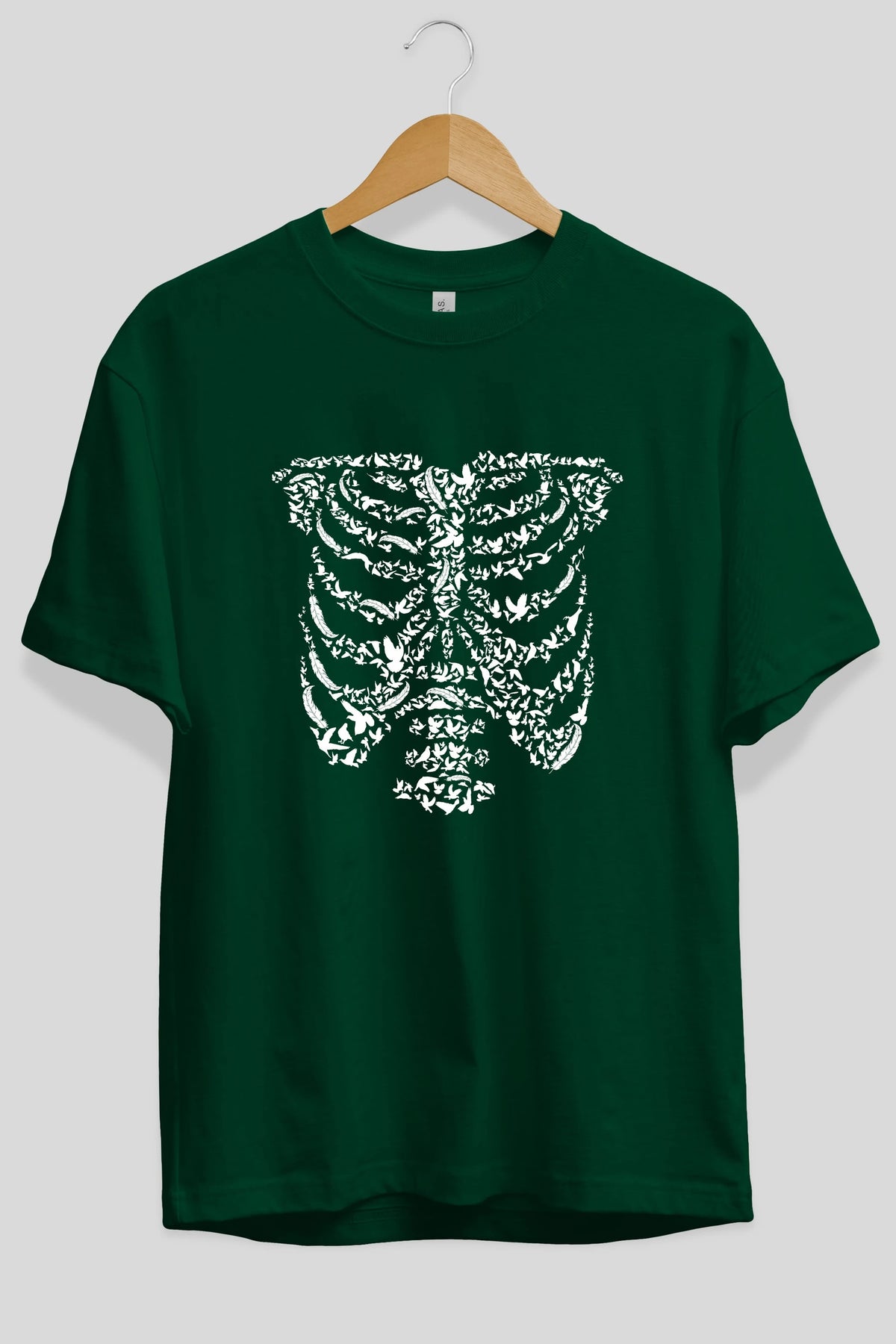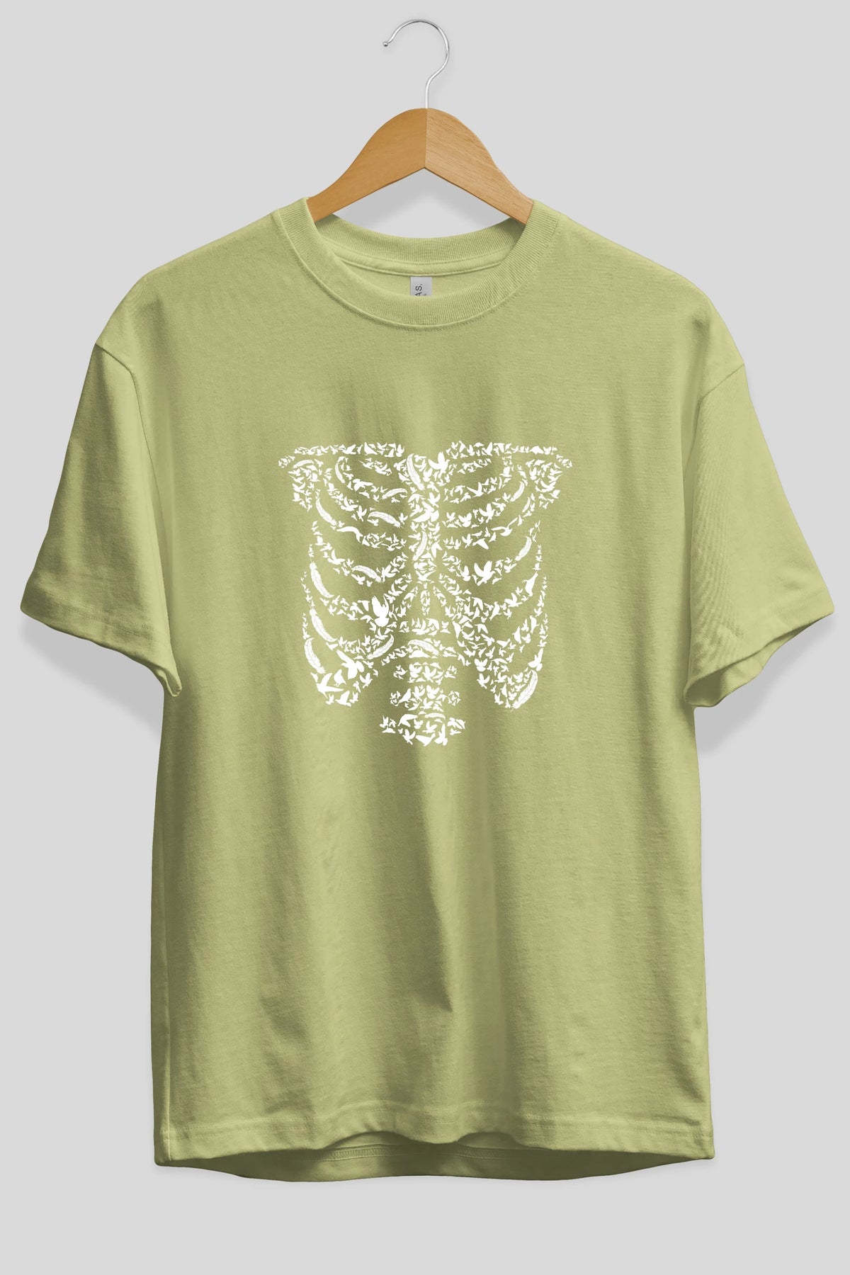 Ribcage Bird Ön Baskılı Oversize t-shirt %100 pamuk Erkek Kadın Unisex