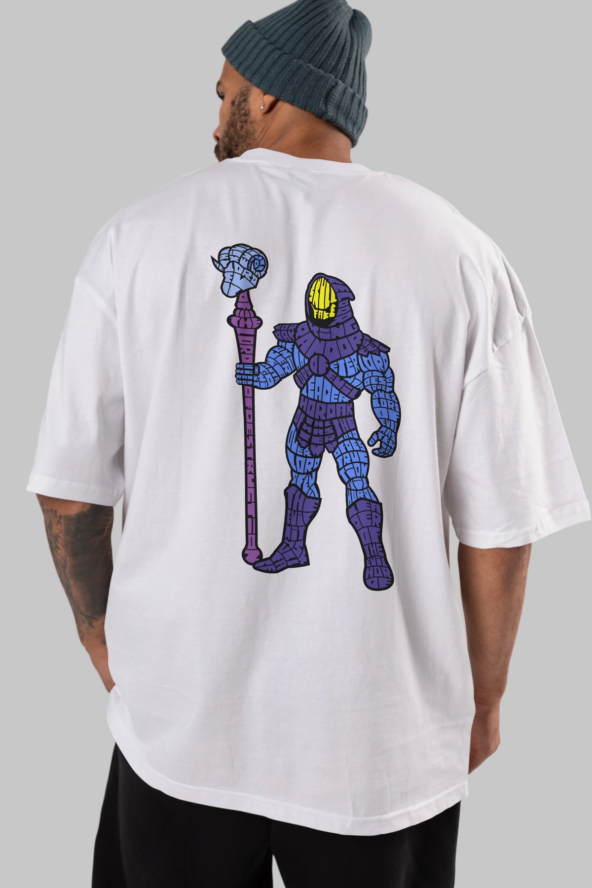 Skull Face Arka Baskılı Oversize t-shirt %100 pamuk Erkek Kadın Unisex