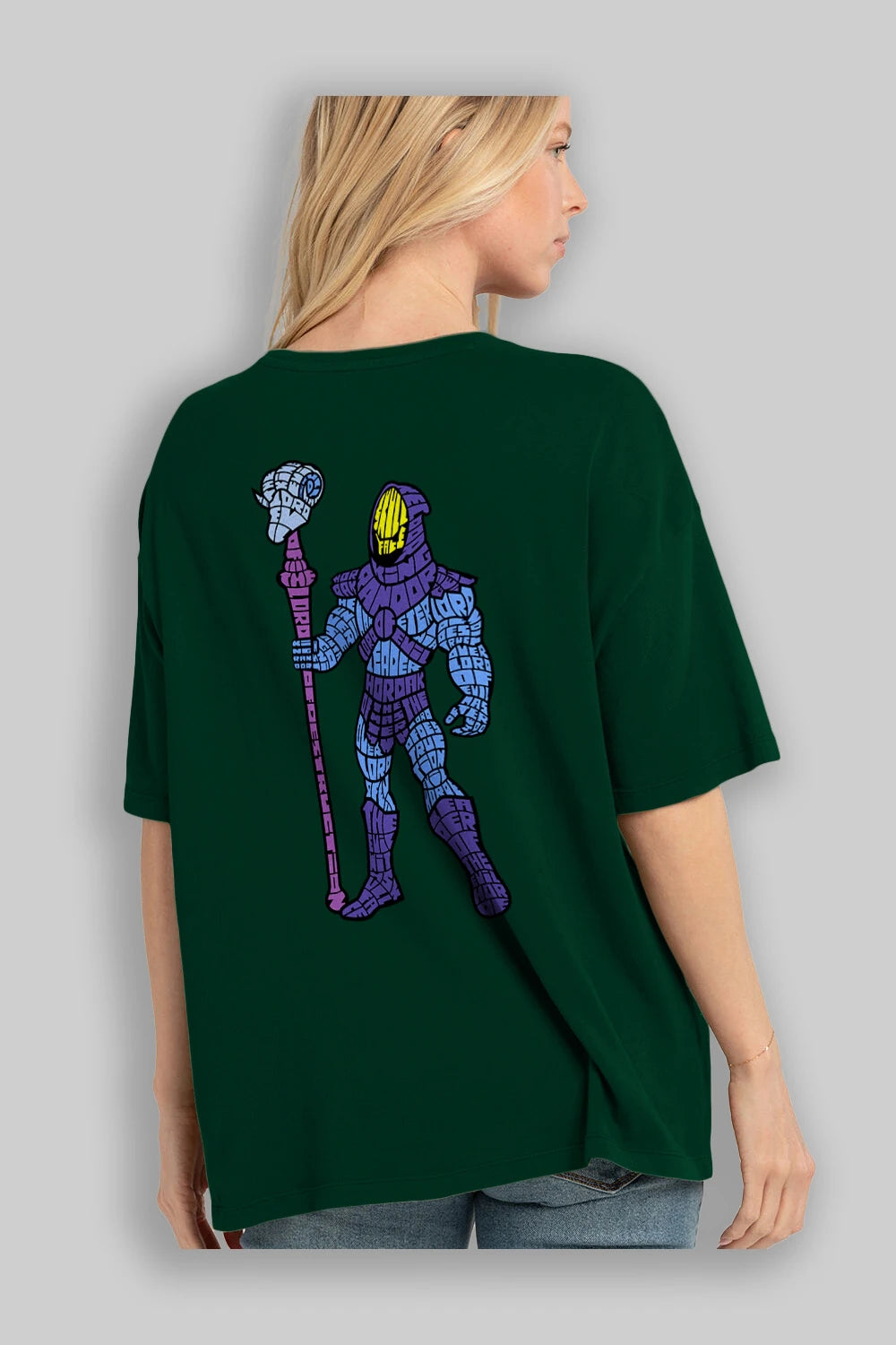 Hem erkekler hem de kadınlar için uygun, taze, modern bir baskıya sahip baskılı oversize t-shirt.