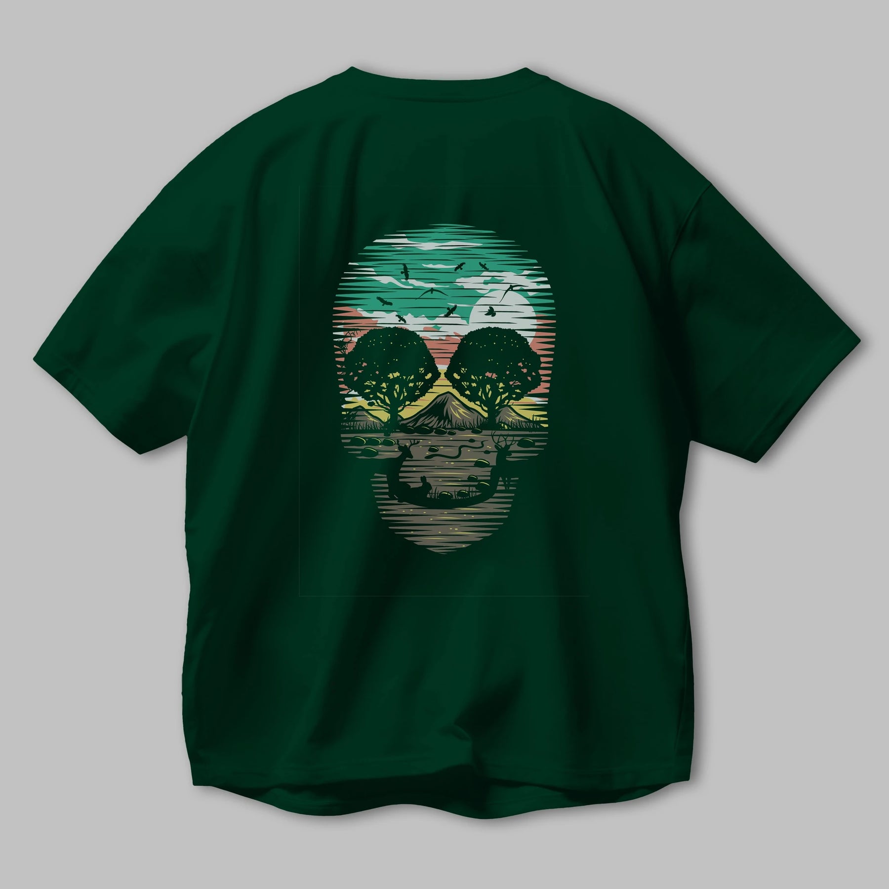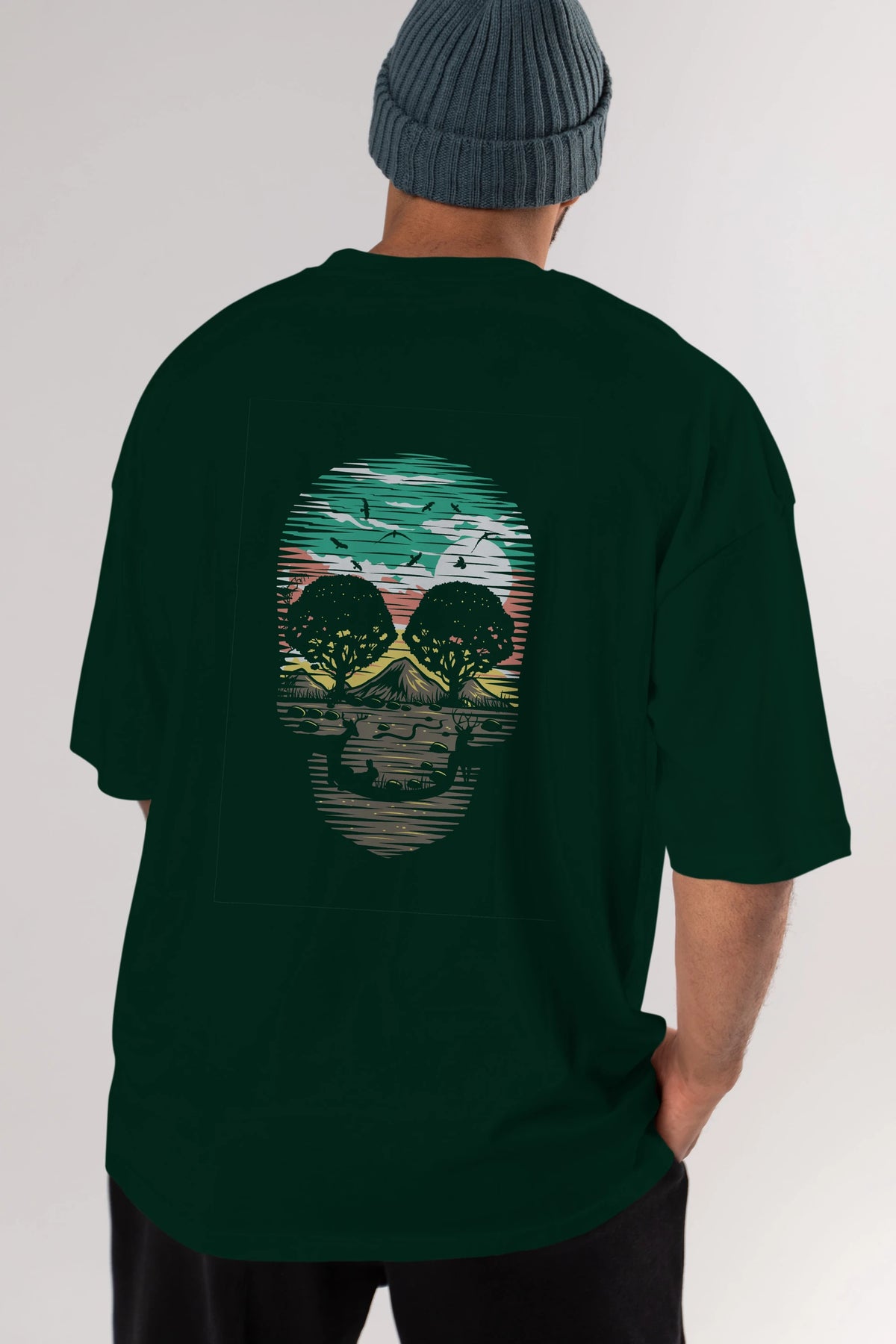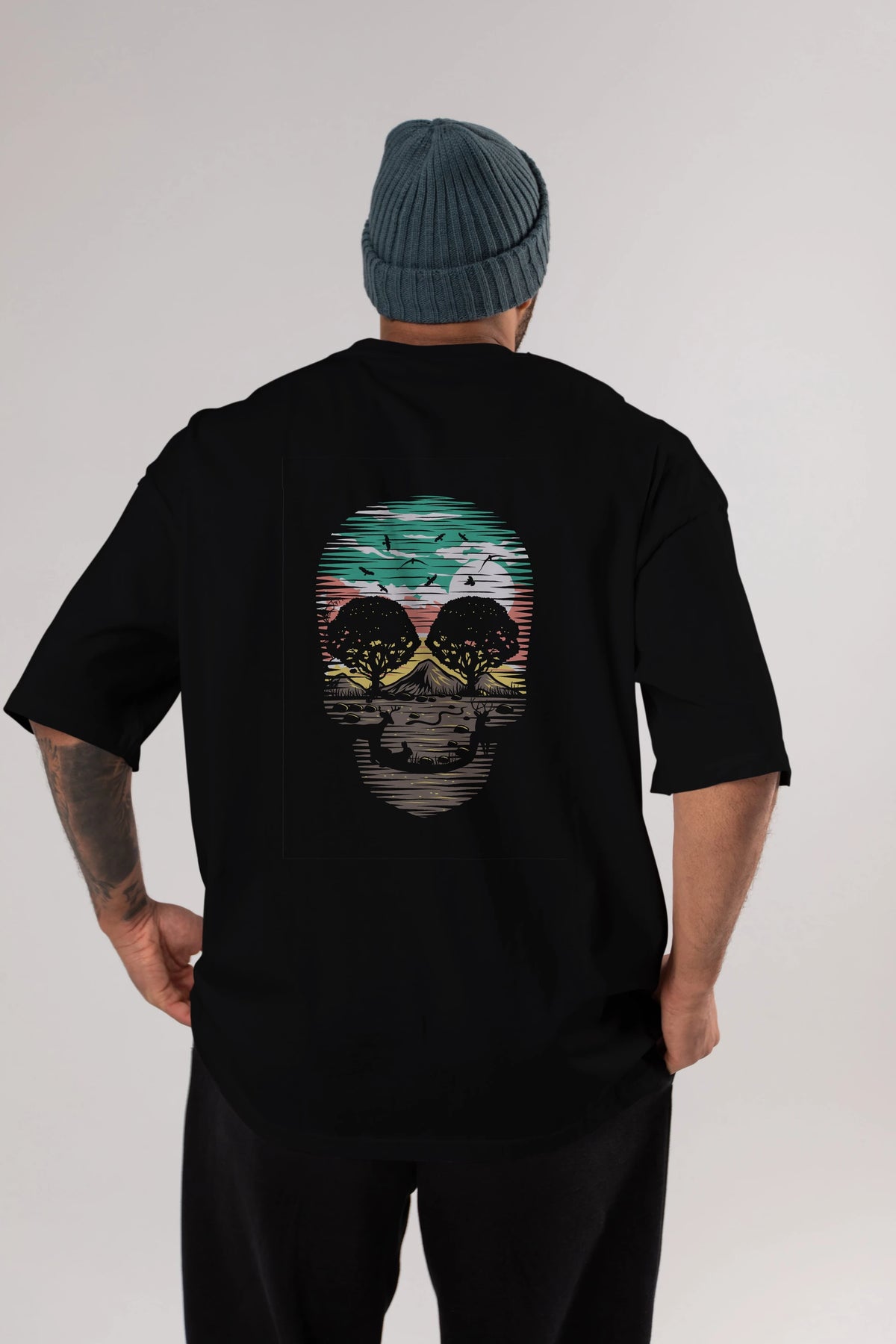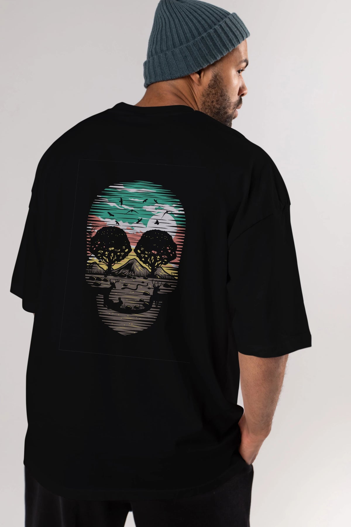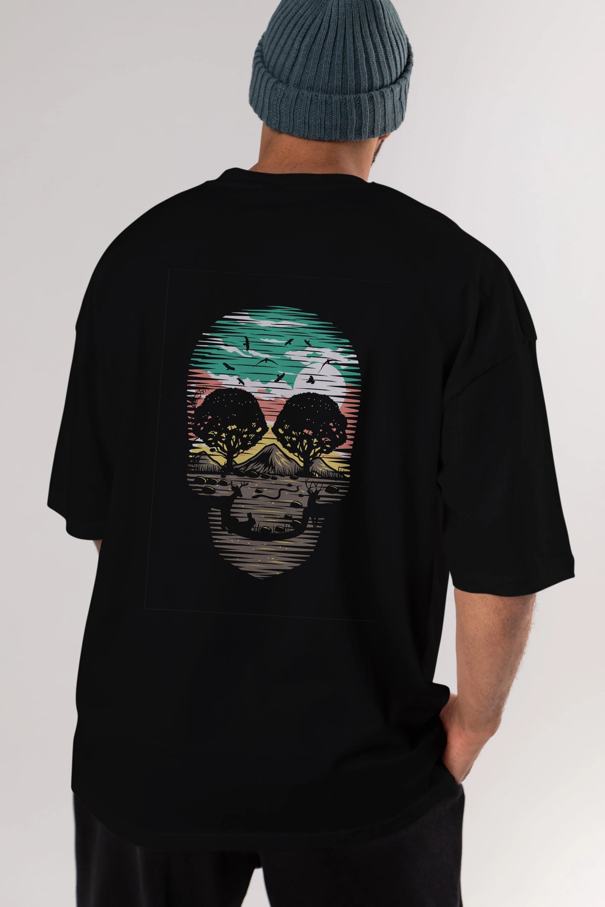 Skull Nature Arka Baskılı Oversize t-shirt %100 pamuk Erkek Kadın Unisex
