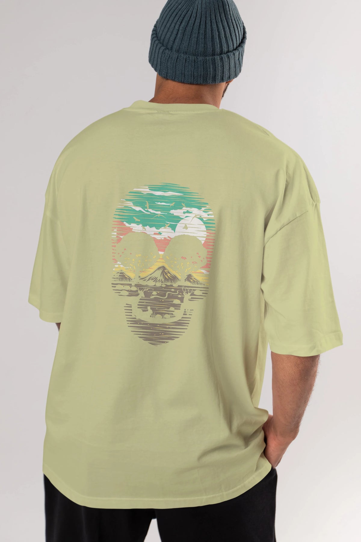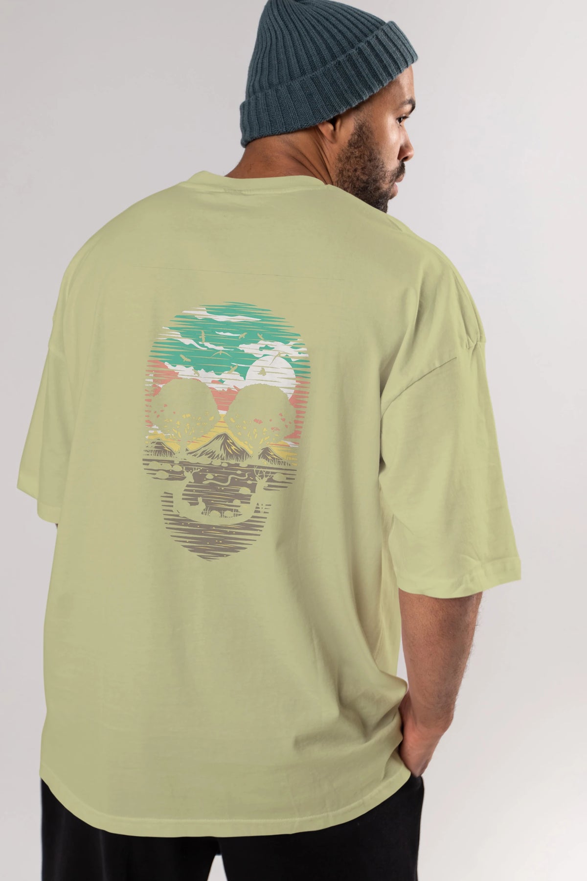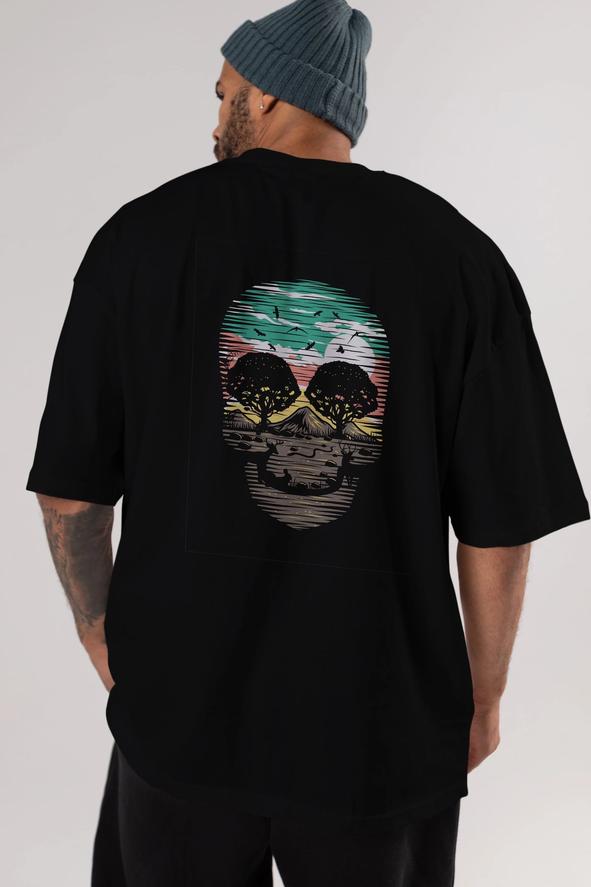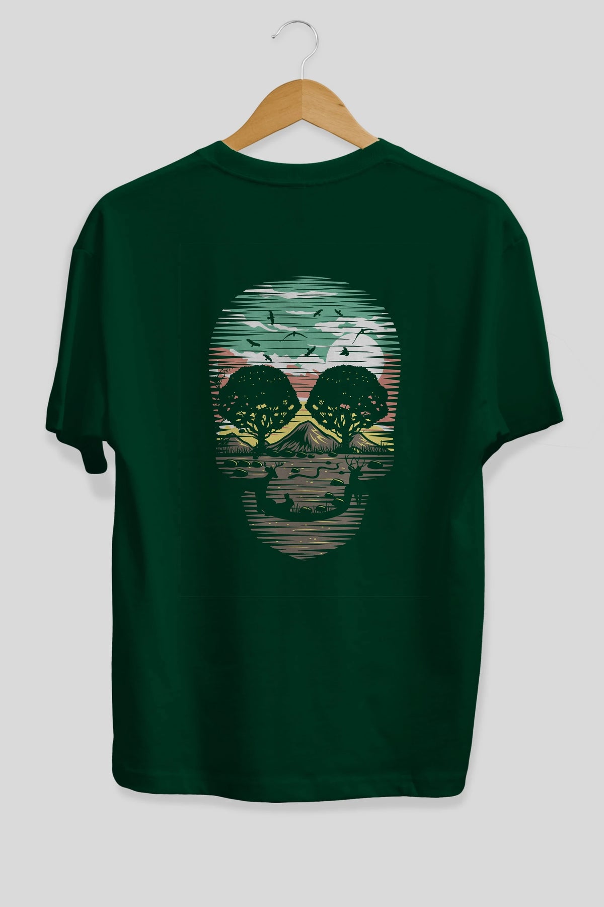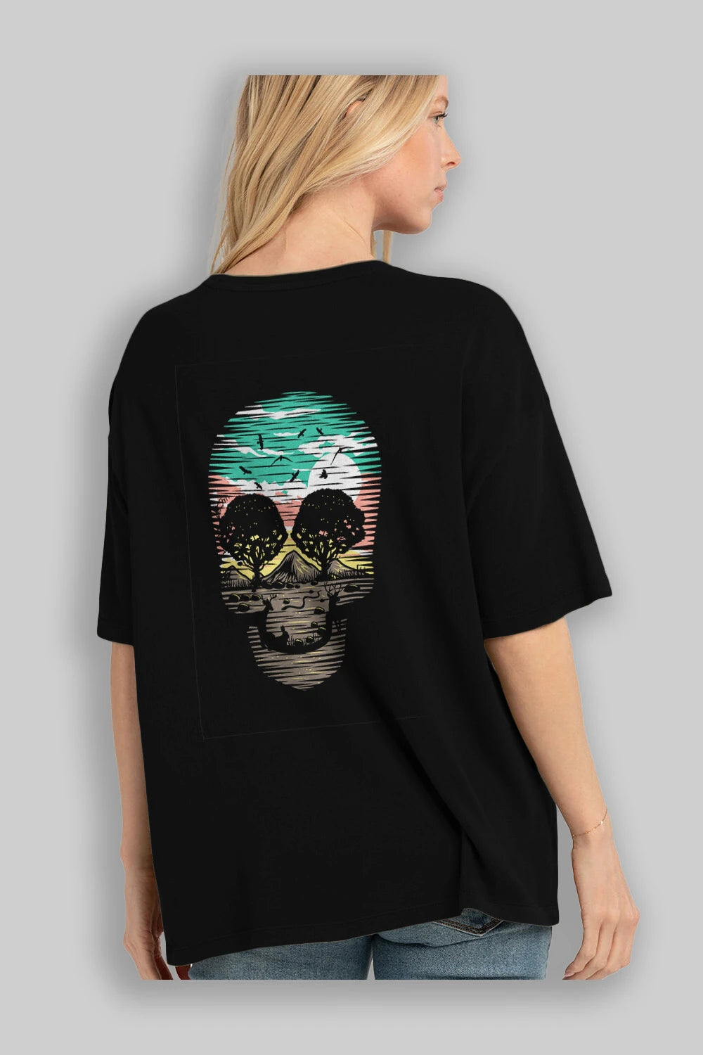 Skull Nature Arka Baskılı Oversize t-shirt %100 pamuk Erkek Kadın Unisex