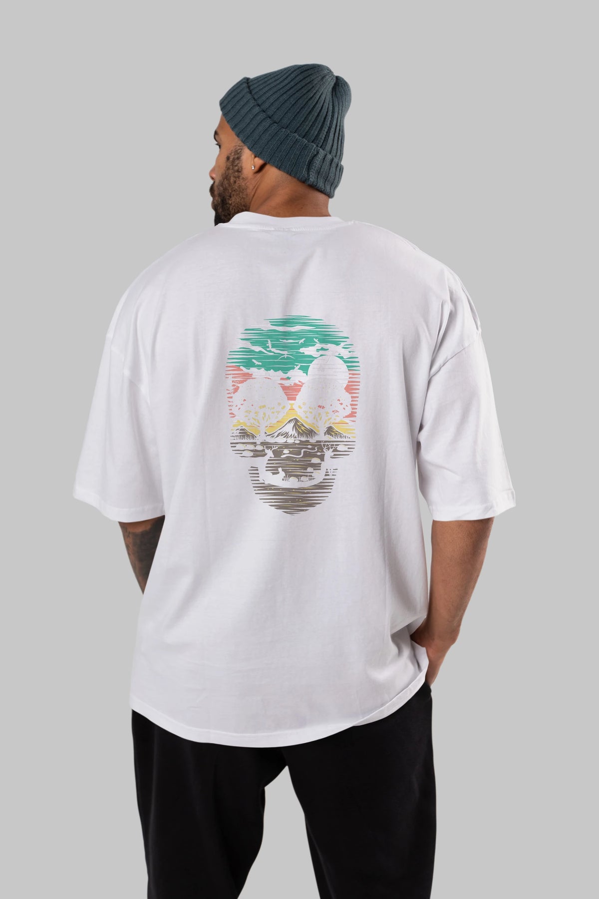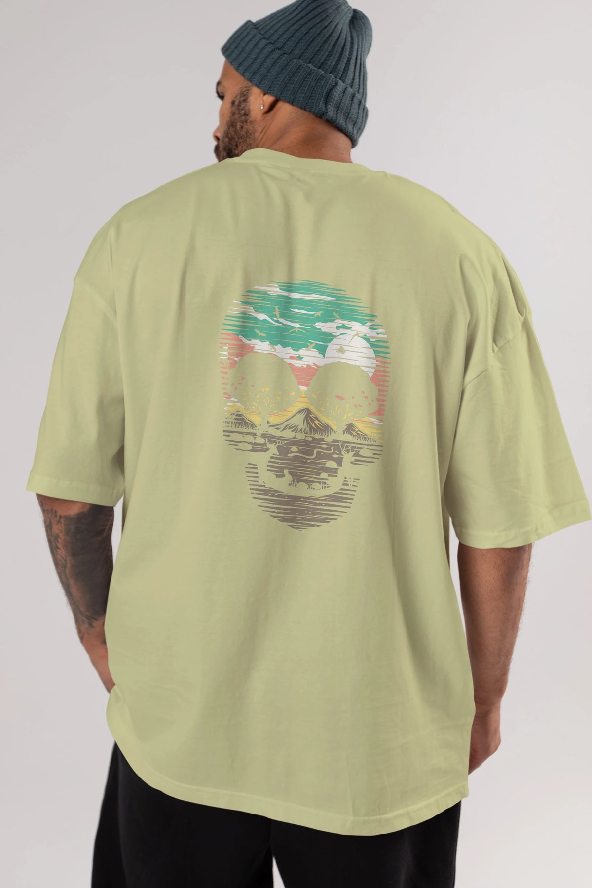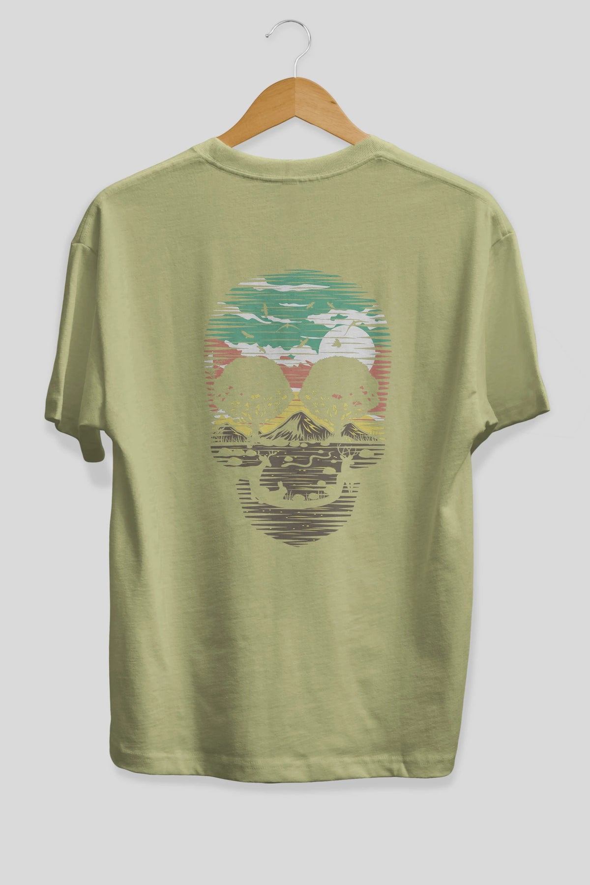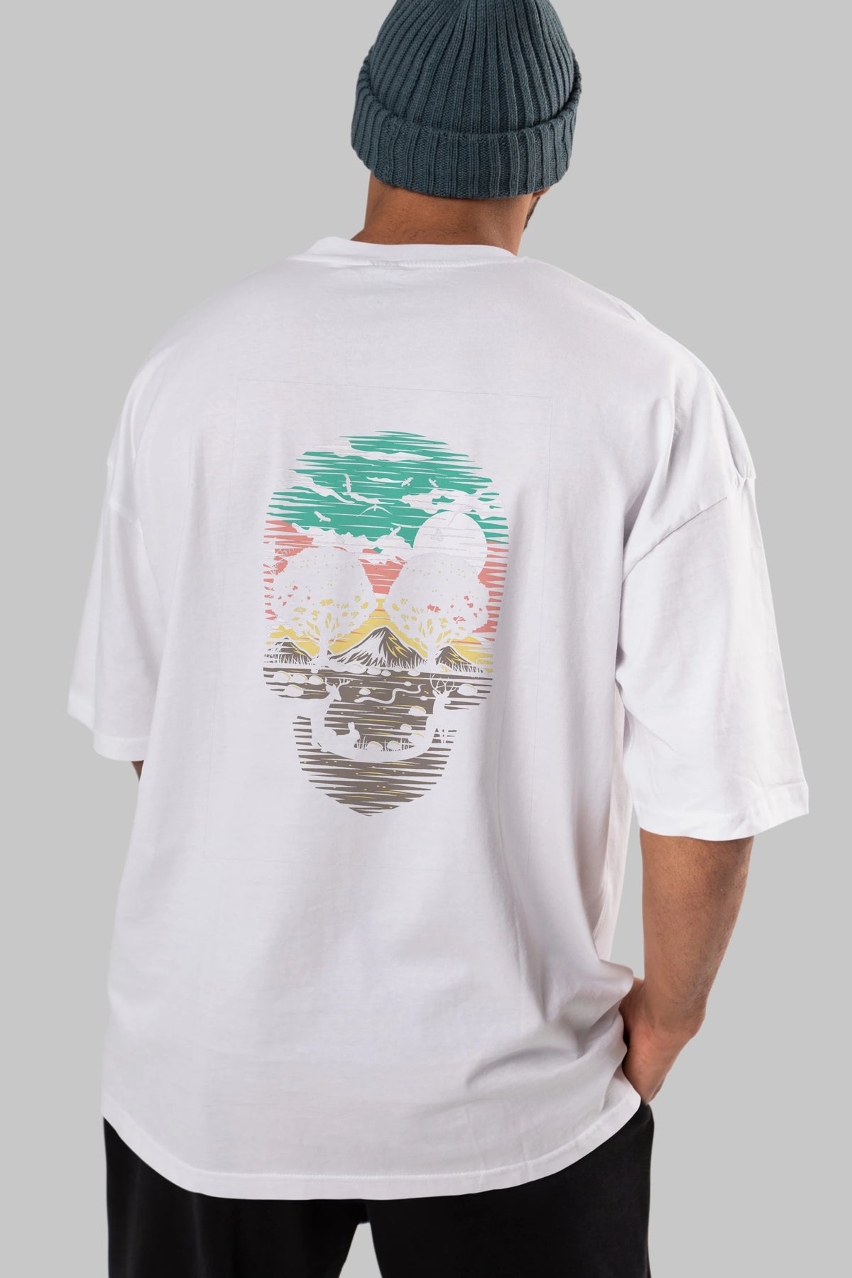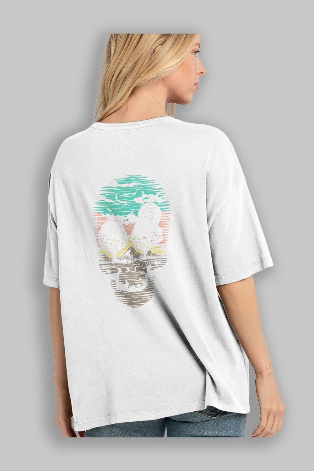 Skull Nature Arka Baskılı Oversize t-shirt %100 pamuk Erkek Kadın Unisex